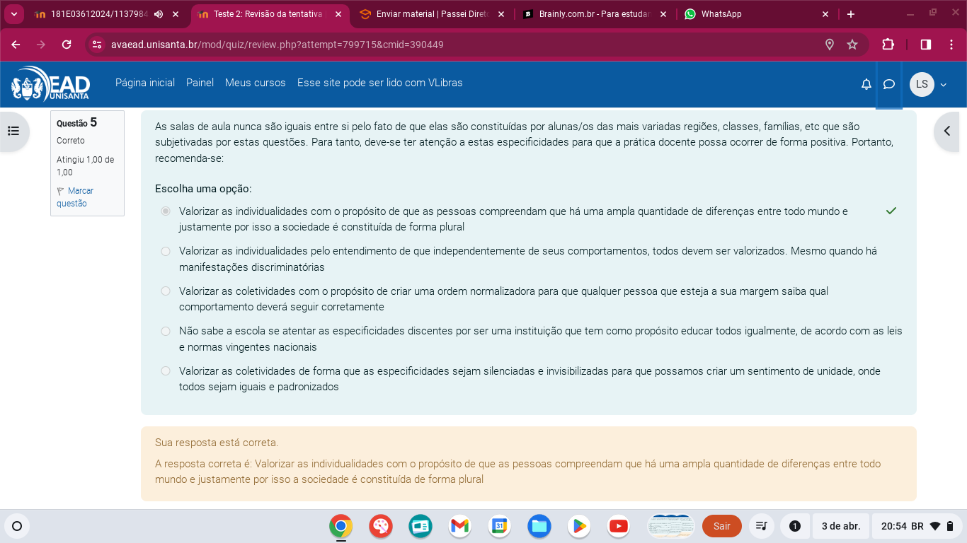 TESTE 1 2 FUNDAMENTOS SOCIOLÓGICOS E ANTROPOLÓGICOS DA EDUCAÇÃO - 2024 1 EAD