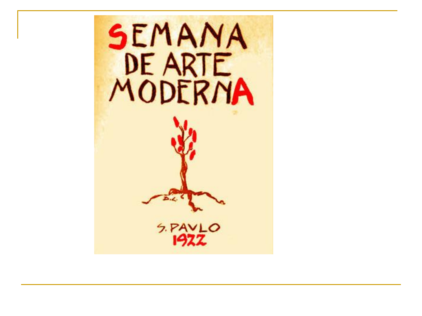 ANTECEDENTES DA SEMANA DE ARTE MODERNA Até o início do século XX, a escola artística tida como oficial no Brasil era o Parnasianismo. Caracterizado pelo rigor formal, pela proposta da “arte pela arte” e pelo academicismo e elevada erudição, o Parnasianismo havia sido a tendência estética dominante até então, especialmente na poesia. Figurou em textos oficiais, como o Hino Nacional Brasileiro ANTECEDENTES DA SEMANA DE ARTE MODERNA As grandes reviravoltas da Revolução Industrial haviam instituído uma nova maneira de viver, modificando completamente as relações humanas. No continente europeu, contudo, vigorava outra proposta artística. Como a grande maioria das escolas estéticas, o Parnasianismo foi importado da Europa. ANTECEDENTES DA SEMANA DE ARTE MODERNA O início do séc. XX trouxe inúmeras mudanças ao modo de viver europeu; a arte precisava acompanhar essas mudanças. O advento da Primeira Guerra Mundial (1914-1918) e a destruição causada por ela também influenciaram social e filosoficamente os artistas do período. A luz elétrica e a rapidez dos automóveis e das produções fabris em larga escala transformaram a sociedade. ANTECEDENTES DA SEMANA DE ARTE MODERNA Vinham à tona as vanguardas artísticas e, com elas, a consolidação da modernidade no âmbito da arte. O Brasil começava a se modernizar. As primeiras indústrias começavam a se instalar na cidade de São Paulo. A produção de café do interior paulista gerava grande receita de exportação, transformando o estado em novo centro econômico brasileiro. ANTECEDENTES DA SEMANA DE ARTE MODERNA 1912 – CHEGADA DE OSWALD DE ANDRADE DA EUROPA Oswald de Andrade retorna de sua primeira viagem à Europa trazendo consigo as ideias Cubistas e Futuristas. Impressionado com esses movimentos, escreve, em versos livres, o poema "Passeio de um tuberculoso, pela cidade, de bonde". A obra foi tão mal recebida pelo público que o autor a jogou fora. A ida de Oswald à Europa foi muito importante, pois conheceu a técnica do verso livre proposta por Paul Fort. Sentindo a necessidade de remodelar as artes brasileiras, ainda muito influenciadas pelo academicismo, Oswald afirmou: "Estamos atrasados cinquenta anos em cultura, chafurdados ainda em pleno Parnasianismo." http://www.mundocultural.com.br/literatura1/modernismo/brasil/1_fase/oswald_andrade.html http://images.google.com.br/imgres?imgurl=http://www.brasilescola.com/imagens/literatura/oswaldodeandadre.JPG&imgrefurl=http://www.brasilescola.com/literatura/oswald-de-andrade.htm&h=360&w=200&sz=13&hl=pt-BR&start=3&um=1&tbnid=P4O_u_9YvA3CbM:&tbnh=121&tbnw=67&prev=/images%3Fq%3Doswald%2Bde%2Bandrade%26um%3D1%26hl%3Dpt-BR%26sa%3DN Revista paulista editada em São Paulo de 1911 até 1918. Tinha como principal articulador Oswald de Andrade e Emílio de Menezes. Revista de cunho literário, esportivo, sociedade paulista, crítico e com ideias pré-modernistas. Muito bem impressa e redigida. Esta é a capa do nº59 de 21 de Setembro de 1912, com uma crítica feroz ao governo do Presidente Hermes da Fonseca (1910-1914), que instituiu o Estado de Sítio no Brasil. ◼ Ao mesmo tempo, Oswald de Andrade alerta para a valorização das raízes nacionais, que devem ser o ponto de partida para os artistas brasileiros. ◼ Cria movimentos, como o Pau- Brasil, escreve para os jornais expondo suas ideias renovadores de grupos de artistas que começam a se unir em torno de uma nova proposta estética. PUBLICAÇÃO DA REVISTA “ORPHEU”, QUE MARCA O INÍCIO DO MODERNISMO EM PORTUGAL. O ESTOPIM PARA A REALIZAÇÃO DA SEMANA DE 22 EM SÃO PAULO Anita Malfatti 1889–1964) nasceu com atrofia no braço e na mão direita. Aprende pintura nas aulas da mãe. Em 1910 chega a Berlim, ano marcante na história da Arte Moderna alemã. Em 1917 promove sua segunda exposição individual. A princípio bem aceita, encontra a crítica e a reprovação de Monteiro Lobato, em artigo do jornal “O Estado de São Paulo” de 20 de dezembo de 1917: “Paranóia ou Mistificação?”. A exposição de Anita Malfatti ◼ Em 1917, depois de Estudar na Europa e nos Estados Unidos, Anita Malfatti retorna ao Brasil e realiza uma mostra de seus quadros em São Paulo. ◼ Com uma técnica de vanguarda, a sua pintura surpreende o público, acostumado com o realismo acadêmico, trivial e sem ousadia e pictórico. Anita Malfatti ◼ Em geral, as reações são favoráveis até que Monteiro Lobato, crítico de artes de O Estado de São Paulo, escreve um artigo feroz intitulado Paranoia ou mistificação, no qual acusa toda a Arte moderna Paranoia ou mistificação Monteiro Lobato – crítico de arte de O Estado de São Paulo “Há duas espécies de artistas. Uma composta dos que veem normalmente as coisas (...). A outra espécie é formada pelos que veem anormalmente a natureza e interpretam-na à luz de teorias efêmeras, sob a sugestão estrábica de escolas rebeldes, surgidas cá e lá como furúnculos da cultura excessiva. (...) Embora eles se deem como novos, precursores de uma arte a vir, nada é mais velho do que a arte anormal ou teratológica: nasceu com a paranoia e a mistificação. (...) Essas considerações são provocadas pela exposição da srª. Malfatti onde se notam acentuadíssimas tendências para uma atitude estética forçada no sentido das extravagâncias de Picasso e companhia.” Principais características ▪ A Semana de Arte Moderna foi realizada entre 11 e 18 de fevereiro de 1922 no Teatro Municipal de São Paulo. SEMANA DE ARTE MODERNA A Semana de Arte Moderna nasceu no contexto da República Velha, controlada pelas oligarquias cafeeiras e pela política do café com leite. Os artistas da Semana de 22, em sua maioria, eram descendentes dessa oligarquia, o que facilitou a realização do evento, que teve o apoio do governador de São Paulo. https://www.educamaisbrasil.com.br/enem/historia/republica-velha Uma cidade na medida certa para o eventoana de Arte Moderna no BrasilSão Pa