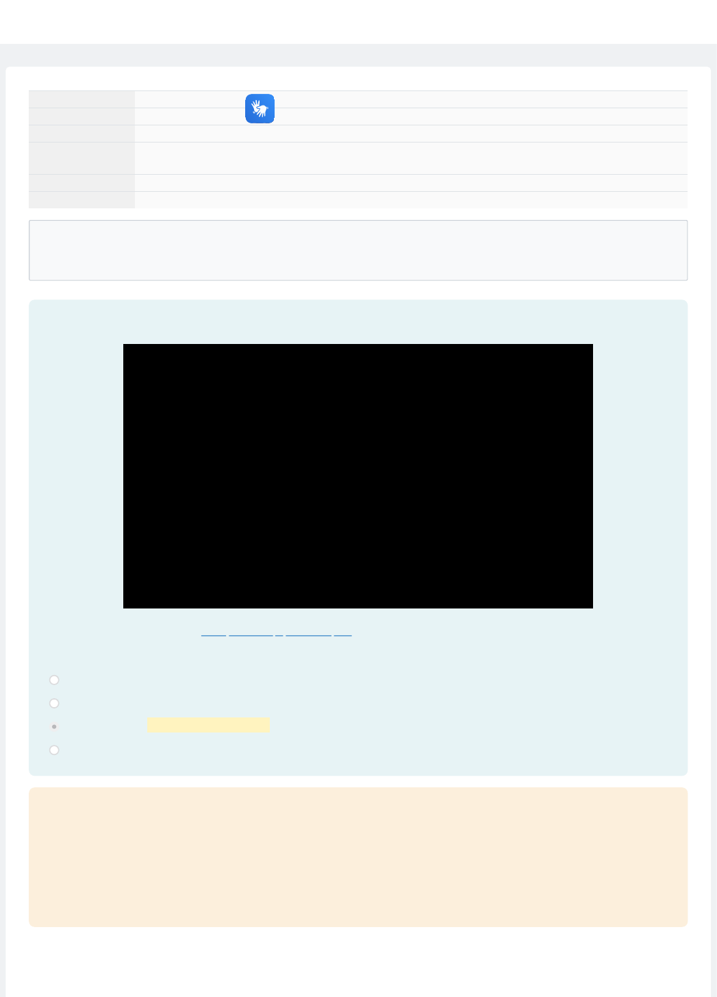 Iniciado em quinta-feira, 4 abr. 2024, 22:01 Estado Finalizada Concluída em quinta-feira, 4 abr. 2024, 22:06 Tempo empregado 5 minutos 9 segundos Notas 10,00/10,00 Avaliar 15,00 de um máximo de 15,00(100%) Questão 1 Correto Atingiu 1,00 de 1,00 Assista ao vídeo e assinale a alternativa em que os sinais de comer, beber e acordar são realizados. Fonte: Instituto Federal de São Paulo Caso não consiga visualizar o vídeo (formato .mp4, tamanho 2,5MB), clique com o botão direito do mouse e selecione "Salvar link como...". Escolha uma opção: Alternativa A Alternativa B Alternativa C Comer, beber e acordar. Alternativa D Sua resposta está correta. Alternativa a: Comer, ver e voltar. Alternativa b: Comer, vender e acordar. Alternativa d: Ouvir, beber e acordar. A resposta é: Alternativa c: Comer, beber e acordar. A resposta correta é: Alternativa C 05/04/2024, 21:57 Página 1 de 10 Questão 2 Correto Atingiu 1,00 de 1,00 Assista ao vídeo e assinale a alternativa em que os sinais de chorar, rezar e casar são realizados. Fonte: Instituto Federal de São Paulo Caso não consiga visualizar o vídeo (formato .mp4, tamanho 3,9MB), clique com o botão direito do mouse e selecione "Salvar link como...". Escolha uma opção: Alternativa A Alternativa B Chorar, rezar e casar. Alternativa C Alternativa D Sua resposta está correta. Alternativa a: Chorar, rezar e explicar. Alternativa c: Chorar, rezar e ler. Alternativa d: Chorar, ter e casar. A resposta é: Alternativa b: Chorar, rezar e casar. A resposta correta é: Alternativa B 05/04/2024, 21:57 Página 2 de 10 Questão 3 Correto Atingiu 1,00 de 1,00 Assista ao vídeo e assinale a alternativa em que o sinal de correr é realizado. Fonte: Instituto Federal de São Paulo Caso não consiga visualizar o vídeo (formato .mp4, tamanho 2,7MB), clique com o botão direito do mouse e selecione "Salvar link como...". Escolha uma opção: Alternativa A Alternativa B Correr Alternativa C Alternativa D Sua resposta está correta. Alternativa a: Andar. Alternativa c: Andar de bicicleta. Alternativa d: Acordar. A resposta é: Alternativa b: Correr. A resposta correta é: Alternativa B 05/04/2024, 21:57 Página 3 de 10 Questão 4 Correto Atingiu 1,00 de 1,00 Assista ao vídeo e assinale a alternativa em que os sinais de ter/não ter são realizados. Fonte: Instituto Federal de São Paulo Caso não consiga visualizar o vídeo (formato .mp4, tamanho 3,7MB), clique com o botão direito do mouse e selecione "Salvar link como...". Escolha uma opção: Alternativa A Ter/não ter. Alternativa B Alternativa C Alternativa D Sua resposta está correta. Alternativa b: Ver/não ver. Alternativa c: Poder/não poder. Alternativa d: Querer/não querer. A resposta é: Alternativa a: Ter/não ter. A resposta correta é: Alternativa A 05/04/2024, 21:57 Página 4 de 10 Questão 5 Correto Atingiu 1,00 de 1,00 Assista ao vídeo e assinale a alternativa em que os sinais de querer/não querer são realizados. Fonte: Instituto Federal de São Paulo Caso não consiga visualizar o vídeo (formato .mp4, tamanho 3,7MB), clique com o botão direito do mouse e selecione "Salvar link como...". Escolha uma opção: Alternativa A Alternativa B Alternativa C Alternativa D Querer/não querer. Sua resposta está correta. Alternativa a: Ter/não ter. Alternativa b: Poder/não poder. Alternativa c: Ver/não ver. A resposta é: Alternativa d: Querer/não querer. A resposta correta é: Alternativa D 05/04/2024, 21:57 Página 5 de 10 Questão 6 Correto Atingiu 1,00 de 1,00 Assista ao vídeo e assinale a alternativa em que o sinal de professor é realizado. Fonte: Instituto Federal de São Paulo Caso não consiga visualizar o vídeo (formato .mp4, tamanho 3,7MB), clique com o botão direito do mouse e selecione "Salvar link como...". Escolha uma opção: Alternativa A Alternativa B Alternativa C Professor Alternativa D Sua resposta está correta. Alternativa a: Pedreiro. Alternativa b: Vendedor. Alternativa d: Policial. A resposta é: Alternativa c: Professor. A resposta correta é: Alternativa C 05/04/2024, 21:57 Página 6 de 10 Questão 7 Correto Atingiu 1,00 de 1,00 Assista ao vídeo e assinale a alternativa em que o sinal de advogado é realizado. Fonte: Instituto Federal de São Paulo Caso não consiga visualizar o vídeo (formato .mp4, tamanho 2,7MB), clique com o botão direito do mouse e selecione "Salvar link como...". Escolha uma opção: Alternativa A Alternativa B Alternativa C Alternativa D Advogado Sua resposta está correta. Alternativa a: Intérprete. Alternativa b: Enfermeiro. Alternativa c: Bombeiro. A resposta é: Alternativa d: Advogado. A resposta correta é: Alternativa D 05/04/2024, 21:57 Página 7 de 10 Questão 8 Correto Atingiu 1,00 de 1,00 Assista ao vídeo e assinale a alternativa em que o sinal de engenheiro é realizado. Fonte: Instituto Federal de São Paulo Caso não consiga visualizar o vídeo (formato .mp4, tamanho 2,7MB), clique com o botão direito do mouse e selecione "Salvar link como...". Escolha uma opção: Alternativa A Alternativa B Alternativa C Engenheiro Alternativa D Sua resposta está correta. Alternativa a: Advogado. Alternativa b: Pintor. Alternativa d: Manicure. A resposta é: Alternativa c: Engenheiro. A resposta correta é: Alternativa C 05/04/2024, 21:57 Página 8 de 10 Questão 9 Correto Atingiu 1,00 de 1,00 Assista ao vídeo e assinale a alternativa em que o sinal de eletricista é realizado. Fonte: Instituto Federal de São Paulo Caso não consiga visualizar o vídeo (formato .mp4, tamanho 2,7MB), clique com o botão direito do mouse e selecione "Salvar link como...". Escolha uma opção: Alternativa A Eletricista Alternativa B Alternativa C Alternativa D Sua resposta está correta. Alternativa b: Cozinheiro. Alternativa c: Empregada. Alternativa d: Advogado. A resposta é: Alternativa a: Eletricista. A resposta correta é: Alternativa A 05/04/2024, 21:57 Página 9 de 10 Questão 10 Correto Atingiu 1,00 de 1,00 Assista ao vídeo e assinale