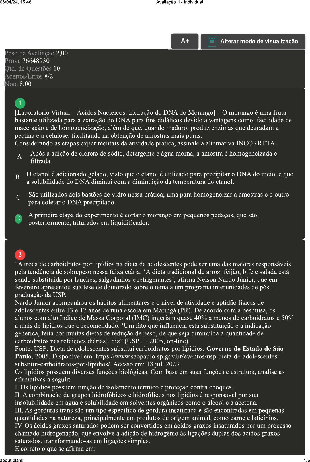 Avaliação METABOLISMO E SISTEMAS ENERGÉTICOS BÁSICOS