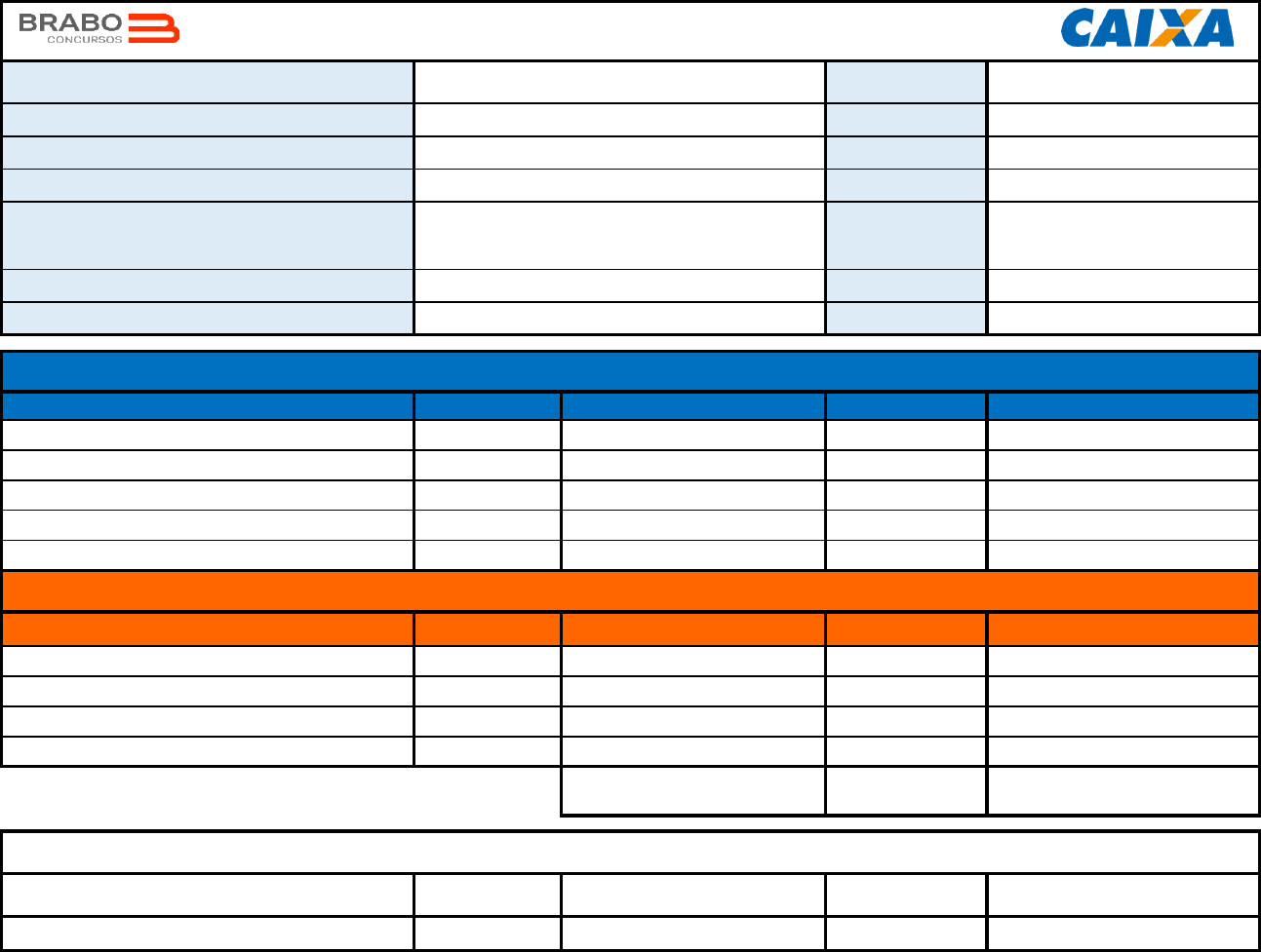 Cargo Inscrições 29/02 A 25/03 Data da Prova Salário 6 MIL Prazo até a Prova Vagas AC 1179 Duração da Prova Vagas PCD 99 Taxa de Inscrição Vagas Negros/ Indigena 322 Escolaridade Total 2000 Carga Horária Banca CESGRANRIO Matérias Questões Peso Pontos Percenutal da prova Português 5 1 5 8% Língua Inglesa 5 1 5 8% Matemática Financeira 5 1 5 8% Probabilidade e estatistica 5 1 5 8% Ética e compliance 5 1 5 8% Matérias Questões Peso Pontos Percenutal da prova Conhecimentos bancários 15 1 15 25% Tecnologia da Informação 5 1 5 8% Comportamentos digitais 5 1 5 8% Atendimento bancário 10 1 10 17% Total 60 CLASSIFICATÓRIO E ELIMINATÓRIO Questões Pontos Peso Total TOTAL DE PONTOS PROVA REDAÇÃO 1 100 1 ELIMINATÓRIO PONTUAÇÃO FINAL TÉCNICO BANCÁRIO NOVO Conhecimentos Básicos TÉCNICO BANCÁRIO NOVO 26/05/2024 3 meses 5 horas 50,00 30 horas semanais Nível Médio Conhecimentos Específicos Matéria Começo Final Data obs Revisão 1 Revisão 2 Questões Português Matemática Financeira Lingua Inglesa Conhecimentos Bancários Probabilidade e Estatistica Ética e Compliance Redação Conhecimentos Bancários Comportamentos Digitais Atendimento Bancário Português Matemática Financeira Lingua Inglesa Conhecimentos Bancários Tecnologia da Informação Probabilidade e Estatistica Ética e Compliance Português Comportamentos Digitais Tecnologia da Informação Atendimento Bancário Conhecimentos Bancários Redação CIRCUITO LOOP CAIXA Revisão do Ciclo Questões Resolvidas