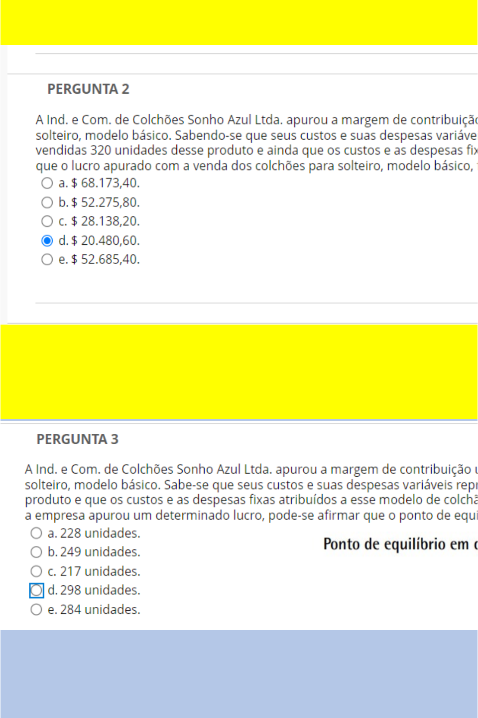 Planilha1 MARGEM DE CONTRIBUÇÃO MC = Preço de venda unitário – Custos e despesas variáveis 198,72*320=63.590,40 MARGEM DE CONTRIBUIÇÃO 198.72 CUSTOS E DESPESAS VÁRIAVEIS 25% RESPOSTA 217 320 UNIDADES CUSTOS E DESPESAS FIXAS 43,109.80 QTD 1,500 VENDA 1500*700 1,050,000 DESPESA DIRETAS 120+60+50 230 CUSTOS E DESPESAS FIXAS 656,400 DESPESA FINANCEIRAS 30,000 MARGEM DE CONTRIBUÇÃO 700 0 120 60 50 70 MC = Preço de venda unitário – Custos e despesas variáveis 300 400 656,400 / 400 1641 MARGEM DE CONTRIBUÇÃO 700 0 120 60 50 70 MC = Preço de venda unitário – Custos e despesas variáveis 300 400 656,400 / 400 1641 DESPESA VARIAVEIS 300 * 1500 R$ 450,000.00 VENDAS 1,050,000 CUSTOS E DESPESAS FIXAS 656,400 RESPOSTA -R$ 656,400.00 MARGEM DE CONTRIBUIÇÃO R$ 600,000.00 TOTAL R$ 1,706,400.00 MARGEM DE CONTRIBUÇÃO MC = Preço de venda unitário – Custos e despesas variáveis 700 - 230 = 470 470 * 1500 = R$ 705,000.00 modulo 3 700 ---------------- 3.5 199,700 MARGEM DE CONTRIBUÇÃO 1000-300 700 MC = Preço de venda unitário – Custos e despesas variáveis mc= 10 - 5 = 5 pt= 1,500 ------------ 300 5 equivalência de produção custo/unidade e a porcentagem da unidade semi acabada Margem de contribuição = Preço de venda – Custos e despesas variáveis