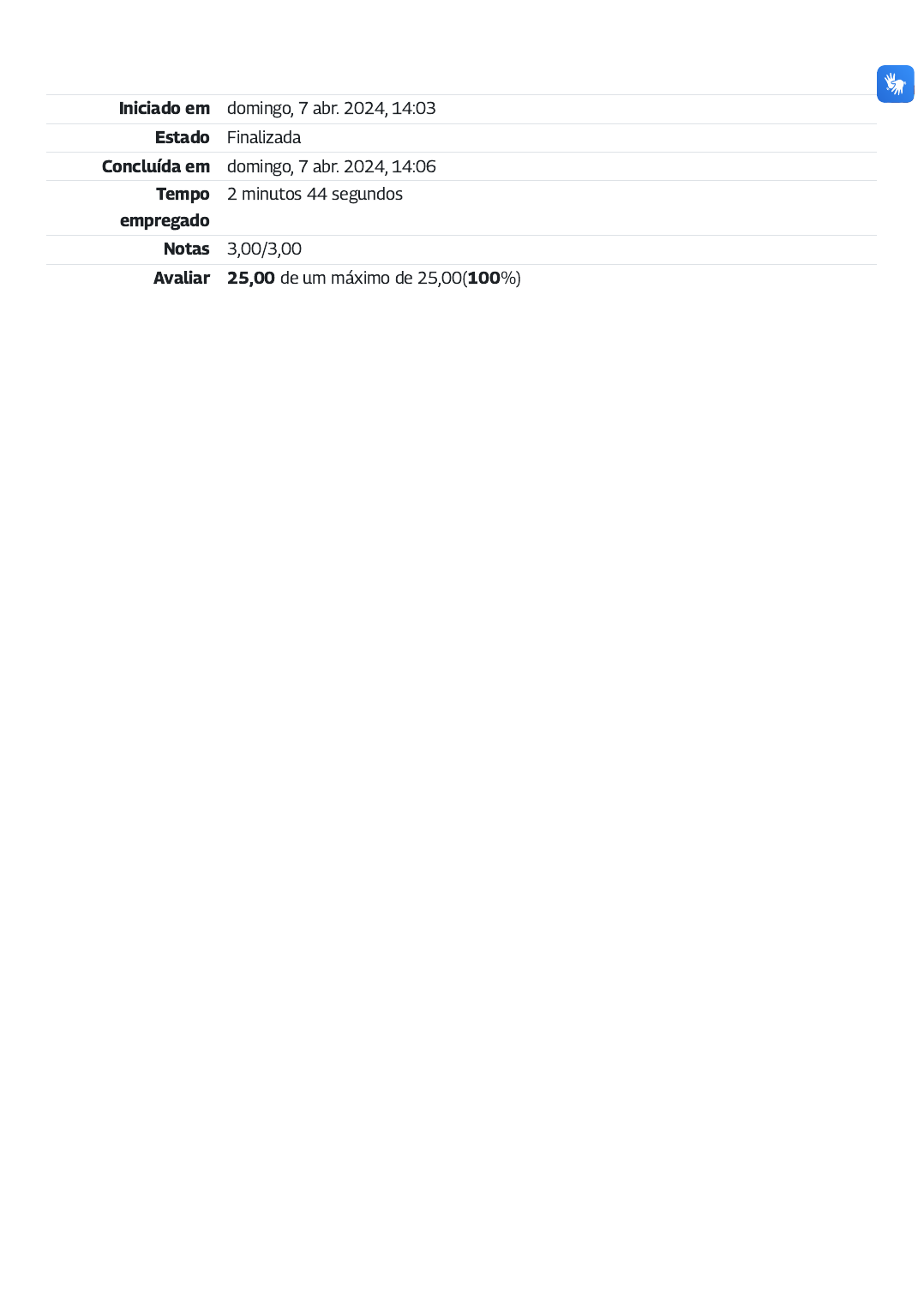 Iniciado em domingo, 7 abr. 2024, 14:03 Estado Finalizada Concluída em domingo, 7 abr. 2024, 14:06 Tempo empregado 2 minutos 44 segundos Notas 3,00/3,00 Avaliar 25,00 de um máximo de 25,00(100%) Questão 1 Correto Atingiu 1,00 de 1,00 Sobre as mudanças promovidas pela EC 103/2019 podemos considerar que é correto a�rmar que: a. Mesmo depois da EC 103/2019, ainda é possível se aposentar com 35 anos de contribuição para homens e 30 anos para mulheres sem idade mínima no âmbito do RGPS. b. A reforma de 2019 extinguiu a aposentadoria por tempo de contribuição sem regra de transição. c. A EC 103/2019 não preservou o direito à aposentadoria com tempo mínimo de contribuição de 15 anos das pessoas que já tinham direito de se aposentar antes da reforma. d. A EC 103/2019 extinguiu de forma obrigatória a aposentadoria por tempo de contribuição apenas para os �liados depois da reforma, havendo quatro possíveis regras de transição para aqueles �liados antes da reforma. e. O fator previdenciário ainda é aplicado para todas as regras de transição. Sua resposta está correta. Alternativa “d” - A EC 103/2019 extinguiu de forma obrigatória a aposentadoria por tempo de contribuição apenas para os �liados depois da reforma, havendo quatro possíveis regras de transição para aqueles �liados antes da reforma. a. Agora, mesmo com as regras de transição, não é possível se aposentar pelo RGPS com 35/30 anos de contribuição sem alcançar uma idade mínima. b. Existem quatro formas diferentes de transição para quem deseja se aposentar por tempo de contribuição. c. Os direitos adquiridos foram mantidos e protegidos. e. O fator previdenciário deixou de ser aplicado, exceto para quem já tinha 33/28 anos de contribuição até a data da reforma, que ainda possui uma regra especí�ca de transição com o fator previdenciário. A resposta correta é: A EC 103/2019 extinguiu de forma obrigatória a aposentadoria por tempo de contribuição apenas para os �liados depois da reforma, havendo quatro possíveis regras de transição para aqueles �liados antes da reforma. Questão 2 Correto Atingiu 1,00 de 1,00 Sobre as regras de transição da aposentadoria por tempo de contribuição, podemos a�rmar que: a. Uma das regras de transição do RGPS está no artigo 15 da EC 103/2019, que garante o acesso pela soma de idade + tempo de contribuição, que se iniciou em 86 pontos para mulheres e 96 para homens, em 2019, subindo um ponto por ano até 100/105 pontos. b. Outra regra de transição da aposentadoria por tempo de contribuição do RGPS garante acesso com 35/30 anos de contribuição mais uma idade mínima inicial de 61 anos para homens e 56 anos para mulheres, mas que sobe gradualmente até chegar a 65/62 anos conforme artigo 16 da EC 103/2019. c. Outra possível regra de transição, �cou regulamentada no artigo 17 da EC 103/2019 e aplica-se exclusivamente aos segurados do RGPS que até a data de entrada em vigor da EC 103 tivessem mais de 28 anos de contribuição, se for mulher, e 33 anos de contribuição, se homem, mas que exige cumprimento de prazo adicional correspondente a 50% do tempo que, na data de entrada em vigor da EC 103, faltava para atingir 35/30 anos de contribuição. d. Uma quarta regra de transição para a aposentadoria por tempo de contribuição, foi estabelecida no artigo 20 da EC 103/2019, garantindo o direito à aposentadoria quando o segurado atendesse, cumulativamente, os requisitos de idade (60/57 anos), tempo de contribuição (35/30 anos) e um “pedágio” de 100% do tempo que faltava na data de entrada em vigor da EC 103. e. Todas as alternativas estão corretas. Sua resposta está correta. Alternativa “e” – Todas as alternativas estão corretas. Todas as alternativas estão descrevendo, de forma detalhada, as quatro regras de transição para a aposentadoria por tempo de contribuição do RGPS para aqueles que já estavam �liados antes da EC 103/2019. Que são: 1 – Soma da idade mais tempo de contribuição (86/96 pontos em 2019, aumentando até 100/105); 2 – Para o tempo de contribuição de 35/30 mais a idade mínima inicial (61 anos para homens, 56 para mulheres, aumentando até 65/62 anos); 3 - Para segurados com mais de 28 anos de contribuição (mulheres) ou 33 anos de contribuição (homens), exige-se 50% do tempo restante até 35/30 anos; 4 – Para a idade de 60/57 anos mais o tempo de contribuição (35/30 anos) mais o "pedágio" de 100% do tempo faltante na data da EC 103. A resposta correta é: Todas as alternativas estão corretas. Questão 3 Correto Atingiu 1,00 de 1,00 Referente à EC 103/2019, é incorreto a�rmar que: a. A EC 103/2019 estabeleceu idade mínima de 65 anos para homens e 62 anos para mulheres com regras de transição, mas manteve tratamento diferenciado para determinados grupos como professores, trabalhadores rurais, pessoas com de�ciência e trabalhadores expostos a agentes nocivos. b. A EC 103/2019 não alterou as regras do benefício não contributivo do Benefício de Prestação Continuada - BPC/LOAS, previsto na Lei Orgânica da Assistência Social. c. Houve alteração na idade de aposentadoria dos trabalhadores rurais. d. Houve alteração da regra de cálculo dos benefícios. e. A nova regra permanente para os professores é uma idade de aposentadoria de 60 anos para homens e 57 anos para mulheres (5 anos a menos que a regra geral). Sua resposta está correta. Alternativa “c” – As regras de idade de aposentadoria para os trabalhadores rurais permaneceram as mesmas. A EC 103/2019 não alterou as regras de previdência rural e não alterou a idade de aposentadoria dos trabalhadores rurais de 60 anos para homens e 55 anos para mulheres. a. Agora a idade geral de aposentadoria é de 65 anos para homens e 62 anos para mulheres, mas existem regras de transição e tratamentos diferenciados para grupos especí�cos como professores, trabalhadores rurais, pessoas 