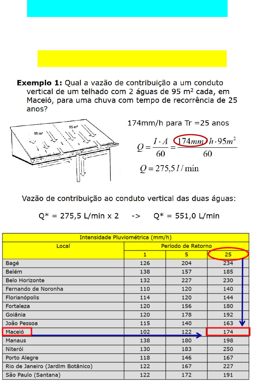 Águas Pluviais – Dimensionamento Cálculo da Vazão de contribuição