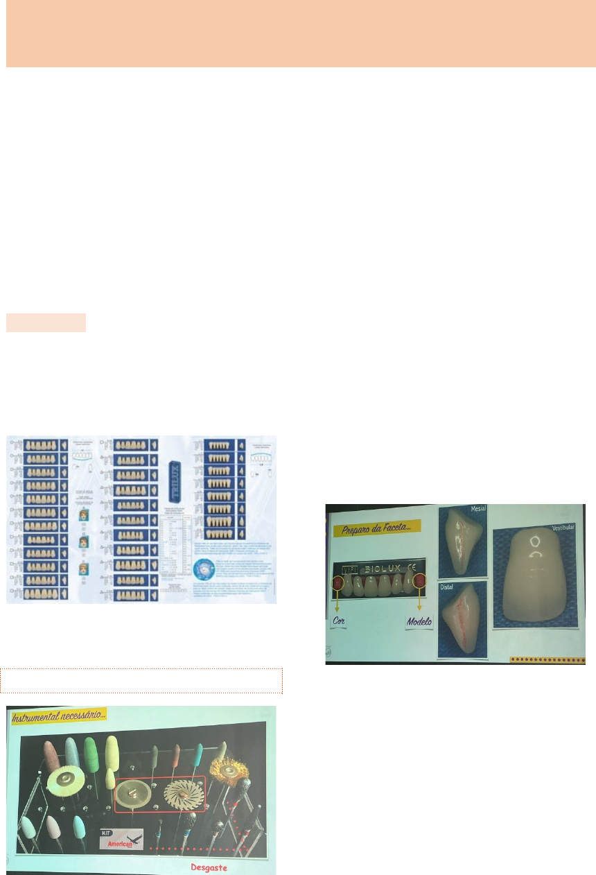 Técnicas de confecção das restaurações provisórias Técnica da faceta · · Dentes de estoque · Formato variado, opções de cor, textura superficial · Excelente estética · Diferença de cor entre os terços · Melhor acabamento e polimento · Indicação · Região anterior Carta molde: ajuda na seleção dos dentes, com as opções de dentes, selecionando o dente pelo arco superior (na prótese total). Para a prótese fixa temos 3 formas básicas: triangular, retangular e ovoide. Escala de cores são diferentes para resina composta e resina acrílica. Instrumental necessário · Sequência técnica · Avaliar medidas do dente homologo · Selecionar a cor com escala vita e converter para a cor para as cores de RA · Avaliar o formato do dente homologo – sempre medir 0,5 a mais – avaliar o perímetro oclusal. · Preparo da faceta · Verificar a cor e o modelo · Existe uma saliência nas proximais, dividindo o dente em lingual e vestibular. É a referência do quanto podemos desgastar o dente de estoque para transformar em faceta. · Marcar com lápis vermelho · Remover a face palatina e as proximais até a marcação · Testar a faceta e fazer o ajuste cervico-incisal · fazer o desgaste na porção cervical para preparar as características estéticas do terço incisal. · Ajustar o alinhamento vestibular e verificar o espaço interno para o material · Escolha do material · Resina acrílica ativada quimicamente (RAAQ) Monômero (liquido) · Metacrilato metila · Iniciador – amina terciaria · Inibidor – hidroquinona Desvantagens: volátil, odor característico, potencial alergênico Polímero (pó) · Microesferas – polimetacrilato metila · Iniciador – peroxido de benzoila · Óxidos metálicos - pigmentos · Fibras · O que vamos usar · Polímero · Monômero · Potes dappen de vidro ou silicone · Pincel redondo e achatado pelo de marta n 0 e 1 · Gaze · Pincel chato n0 – pode ser baratinho · Vaselina · Lapiseira com grafite vermelho – grafite comum preto mancha a RA, mudando a cor do provisório · Esfera n8 · Tronco cônica 702 · Pinça mosquito reta · Sequência técnica Isolar o preparo, os dentes adjacentes e o tecido gengival. · Técnica de Nealon ou do ‘’pincel’’ 1. Umedecer o pincel do monômero 2. Encostar o pincel no polímero fazendo movimentos circulares 3. Agregar o pó até formar uma perola/bolinha 4. Umedecer a parte interna da faceta com monômero e acrescentar as perolas até o completo preenchimento 5. Aguardar a perda do brilho superficial 6. Posicionar e alinhas a faceta 7. Acrescentar RA nas faces palatinas e proximais. 8. Movimentar no sentido do longo eixo do dente, para que ele possa sair do preparo. Lembrar: Exotermia Monômero residual Contração de polimerização (7%) 9. Demarcar o contorno do término cervical e desgastar os excessos externos 10. Aliviar internamente apenas o terço cervical. 11. Testar coroa provisória · Adaptação cervical · Perfil de emergência · .. · .. Reembasamento Melhorar a adaptação do preparo com o provisório criando espaço 12. Isolar novamente a área 13. Aplicar as perolas de RA em todo o perímetro do término cervical 14. Aguardar a perda do brilho superficial 15. Posicionar a coroa provisória e pressioná-la para a RA ESCOAR para o interior do sulco gengival 16. Reforçar a união coroa RA para minimizar fraturas de bordo. 17. Demarcar o contorno do termino cervical 18. Refinar a adaptação, o contorno e a estética. 19. Ajustar os contatos proximais · Ajuste oclusal Papel articular fino 12um Papel articular fino 19um · Ajustar a oclusão em MIH · Ajustar guia anterior 20. Verificar a espessura da restauração provisória com espessimetro · Acabamento Borrachas abrasivas – acabamento Disco de pelo de cabra – polimento · Cimentação provisória Isolar externamente · Hidróxido de cálcio · Oxido de zinco sem eugenol (NE) Técnica de manipulação 21. Isolar o campo operatório e secar o preparo 22. inserir o cimento provisório cervical da restauração 23. ... 24. Remover os excessos de cimento das faces livres 25. Remover os excessos de cimento das faces proximais · Tecnica da moldagem previa com alginato É preciso ter: · Forma anatômica preservada · Estética limitada · Cor única · Porosidades · Maior alteração de cor O que vamos precisar Cuba, espátula, moldeira parcial... Sequencia image1.jpeg image2.jpeg image3.jpeg