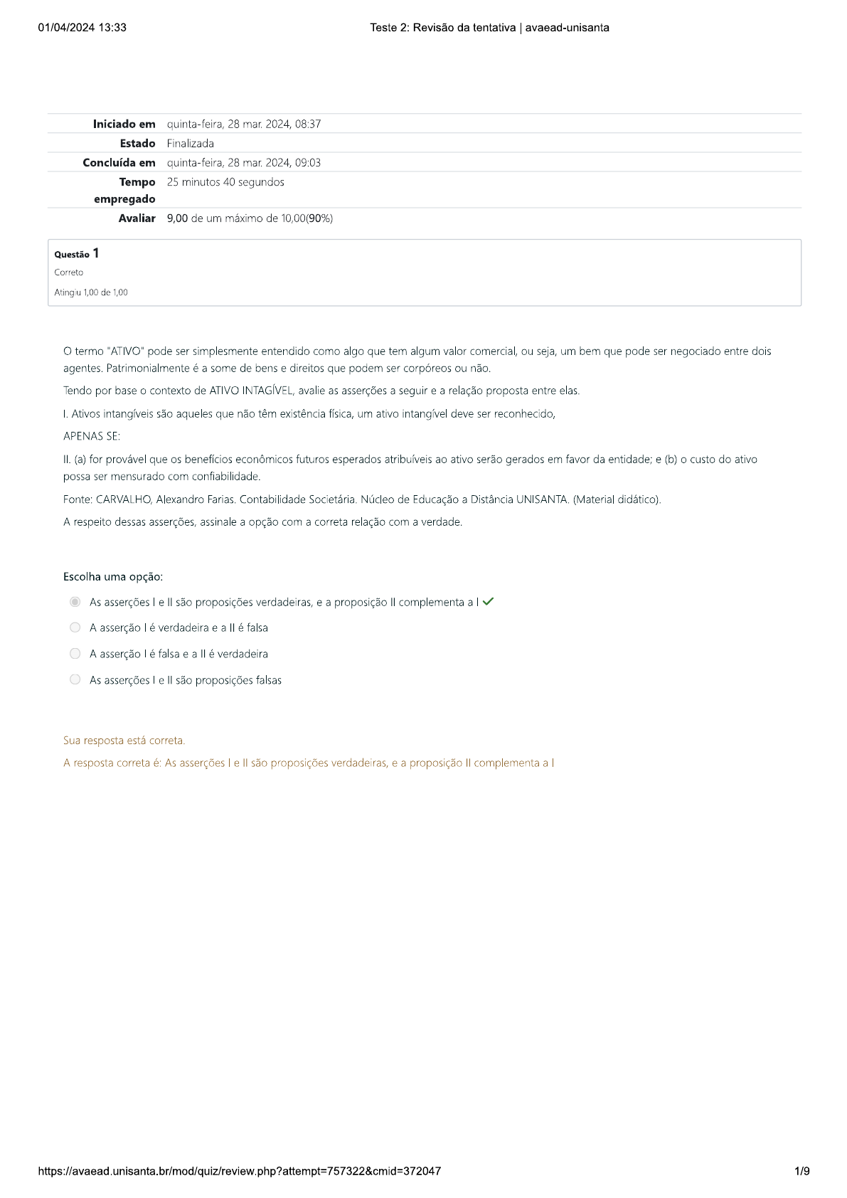 0:00:27 Questão 2/10 - Aquisições e Reestruturações Empresariais Para correta classificação dos investimento como coligada, O CPC 18 (R2) traz parâmet