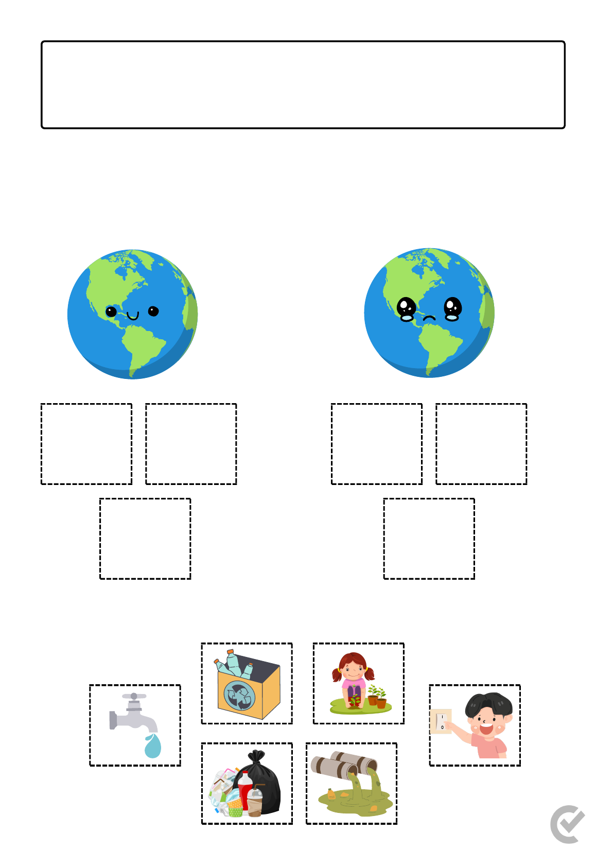 Nome: ______________________________________________________ Turma: ___________ RECORTE E COLE AS COISAS QUE FAZEM BEM PARA O NOSSSO PLANETA E AS COISAS QUE FAZEM MAL. Escola: ______________________________________________________ Data: ___/___/___