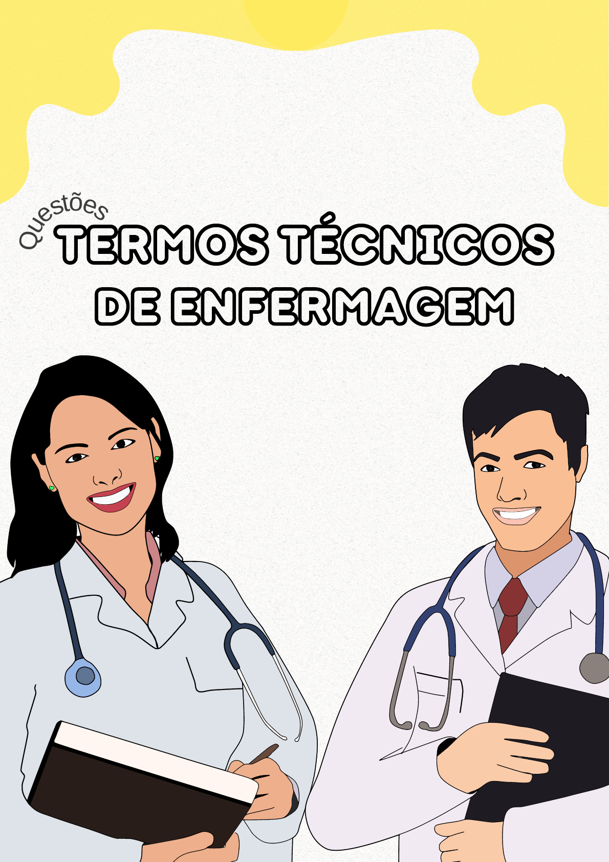 TERMOS TÉCNICOSTERMOS TÉCNICOSQ ue stões DE ENFERMAGEMDE ENFERMAGEM Licenciado para - P edrita souza - 06843090419 - P rotegido por E duzz.com 1 Qual o termo técnico para ausência de menstruação? 2 QUESTÕES DE ENFERMAGEM Termos Técnicos 3 A) Anoperineal. B) Dismenorreia. C) Amenorreia. D) Bursite. O que significa Blefarite? A) Inflamação do baço. B) Inflamação das pálpebras. C) Inflamação no fígado. D) Inflamação da mandíbula. Qual o termo técnico para dor na faringe? A) Fastígio. B) Omalgia. C) Mialgia. D) Faringodinia. 4 Sobre as terminologias do sistema respiratório; Relacione a Coluna 1 à Coluna 2 a respeito de termos técnicos utilizados na prática de Enfermagem. Apneia ( ) Movimentos respiratórios acelerados. Dispneia ( ) Acúmulo de sangue na cavidade pleural. Taquipneia ( ) Ausência de respiração. Hemotórax ( ) Dificuldade respiratória. Cianose ( ) Coloração azulada por falta de oxigênio. Bradipneia ( ) Respiração lenta. 1. 2. 3. 4. 5. 6. A ordem correta de preenchimento dos parênteses, de cima para baixo, é: A) 3-4-2-1-6-5. B) 3-1-6-4-2-5. C) 3-4-1-2-5-6. D) 3-6-5-2-1-4. 5 O termo técnico Epigastralgia refere-se: A) Dor no epigástrio. B) Dor no pulmão. C) Dor no nariz. D) Dor de dente. @foco_enfe Licenciado para - P edrita souza - 06843090419 - P rotegido por E duzz.com 6 Homem, 75 anos, com dor intestinal. Qual terminologia de Enfermagem deve ser usada para descrever este sintoma? QUESTÕES DE ENFERMAGEM Termos Técnicos 7 A) Episiotomia. B) Filaxia. C) Enteralgia. D) Epistaxe. A) Dificuldade de falar. B) Dificuldade de urinar. C) Dificuldade de escrever. D) Dificuldade de deglutir. O que significa Disfagia? 8 9 O termo técnico Afonia, refere-se: Mulher, 35 anos, com dor no seio. Qual terminologia de Enfermagem deve ser usada para descrever este sintoma? A) Diplegia. B) Mastalgia. C) Gastralgia. D) Omalgia. A) Perda da força muscular. B) Perda de um membro. C) Perda ou diminuição da voz por causas locais. D) Perda do coração. Paciente, sexo feminino, em uma consulta na Unidade Básica de Saúde relata dor no coração. Qual terminologia de Enfermagem deve ser usada para descrever este sintoma? 10 A) Cardiomegalia. B) Cardiofungo. C) Cardialgia. D) Cardiopulmonar. 11 A sigla usada para registro da frequência cardíaca é: A) FP. B) FC. C) FE. D) FD. @foco_enfe Licenciado para - P edrita souza - 06843090419 - P rotegido por E duzz.com 12 O que significa Flebite? QUESTÕES DE ENFERMAGEM Termos Técnicos 13 A) Bactérias na bile. B) Corpo estranho. C) Fungo na bile. D) Inflamação de uma veia. Sobre as Terminologias do pré-natal; Relacione a coluna 1 à coluna 2 a respeito de termos técnicos utilizados na prática de Enfermagem. 1.DPP ( ) Gestação, Parto, Aborto. 2.DUM ( ) Idade Gestacional 3.GPA ( ) Data provável do parto 4.IG ( ) Data da última menstruação A ordem correta de preenchimento dos parênteses, de cima para baixo, é: a) 3-4-1-2. b) 3-4-2-1. c) 4-3-2-1. d) 4-3-1-2. 14 O que significa Pneumotórax? A) Presença de fungo na cavidade pleural. B) Presença de sangue na cavidade pleural. C) Presença de água na cavidade pleural. D) Presença de ar na cavidade pleural. 15 O banho de chuveiro é também conhecido como banho de: A) Ablução. B) No leito. C) Aspersão. D) Bumersão. 16 Qual o significado da sigla SSVV? A) Sinais saudáveis. B) Sinais vitais. C) Sinais e sintomas. D) Sonda vesical. @foco_enfe Licenciado para - P edrita souza - 06843090419 - P rotegido por E duzz.com 17 Assinale a alternativa que apresenta o termo técnico que corresponde à frequência cardíaca abaixo do normal. QUESTÕES DE ENFERMAGEM Termos Técnicos 18 A) Bradicardia. B) Bradupneta. C) Hipotensão. D) Dispneia. 1.Polifagia ( ) Salivação excessiva 2.Hipóxia ( ) Dor muscular 3.Prurido ( ) Fome excessiva 4.Hemotórax ( ) Coceira intensa 5.Mialgia ( ) Sangue na urina 6.Hematúria ( ) Acúmulo de sangue na cavidade pleural 7.Sialorreia ( ) Primeira menstruação 8.Menarca ( ) Baixa concentração de oxigênio A ordem correta de preenchimento dos parênteses, de cima para baixo, é: A) 7-1-2-3-4-5-6-8 B) 7-1-6-2-4-5-3-8 C) 7-5-3-2-4-6-1-8 D) 7-5-1-3-6-4-8-2 Qual o termo técnico para edema generalizado? A) Intravenoso. B) Mialgia. C) Anasarca. D) Prurido. 19 Sobre as Terminologias; Relacione a coluna 1 à coluna 2 a respeito de termos técnicos utilizados na prática de Enfermagem. 20 Qual o termo técnico para presença de pus na urina? A) Hematúria. B) Piúria. C) Oligúria. D) Disúria. @foco_enfe Licenciado para - P edrita souza - 06843090419 - P rotegido por E duzz.com GABARITO Termos Técnicos 1- C 11-B 2- B 12-D 3- D 13-A 4- C 14-D 5- A 15-C 6- C 16-B 7- D 17-A 8- B 18-C 9- C 19-D 10- C 20-B @foco_enfe Licenciado para - P edrita souza - 06843090419 - P rotegido por E duzz.com Licenciado para - P edrita souza - 06843090419 - P rotegido por E duzz.com