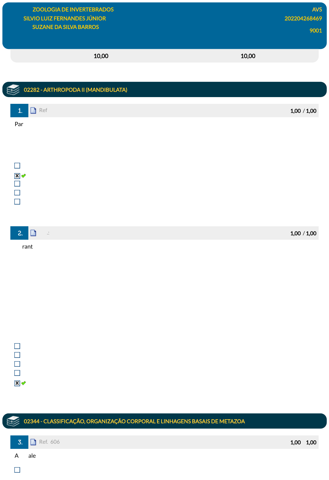 Disciplina: ZOOLOGIA DE INVERTEBRADOS AVS