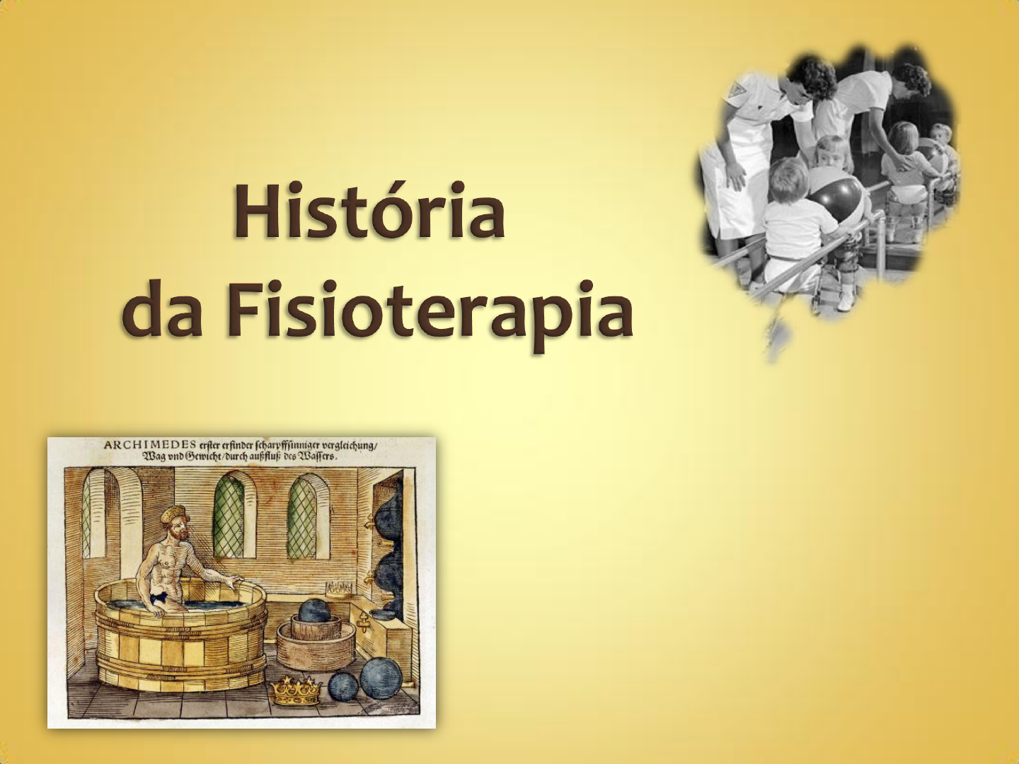Curso de Fisioterapia 6° semestre on line Prof. Renata Brito Faculdade IBES Antiguidade Idade Média Renascimento Industrialização Grandes Guerras Forte preocupação com as pessoas que apresentavam “diferenças incômodas” (doenças). Os médicos na Antigüidade conheciam os agentes físicos e os empregavam em terapia. Utilizavam a eletroterapia, sob forma de choques com peixe elétrico, no tratamento de certas doenças. O uso da ginástica estava unicamente nas mãos dos sacerdotes e que somente eram empregadas com fins terapêuticos, ou seja, os movimentos do organismo humano, quando estudados, racionalizados e planejados, eram utilizados no tratamento das disfunções orgânicas já estabelecidas, já instaladas. A Cinesioterapia deu um salto importante já na Grécia antiga, em razão dos Jogos Olímpicos. Na Idade Média as “diferenças incômodas” são consideradas como algo a ser “exorcizado”. Não havia nenhuma condição de educação, saúde e conforto. Houve uma interrupção no avanço dos estudos e da atuação na área da saúde. O corpo humano foi considerado algo como “inferior” e as camadas mais privilegiadas (nobreza e o clero) desenvolveram uma atividade física dirigida para um objetivo determinado - aumento da potência física. As ordens religiosas eram inimigas do corpo, pois valorizavam a alma e o espírito. Volta a preocupação com o Corpo Saudável. Retomada dos estudos relativos ao cuidados com o corpo e revitalização do culto ao físico. Entre a Idade Média e o Renascimento, após a estagnação houve uma retomada não somente dirigida ao tratamento, mas também uma preocupação com a manutenção das condições normais. Entre 1779-1849 Don Francisco y Ondeano Amorós, dividiu a ginástica em quatro pontos, o terceiro ponto era a cinesioterapia (atuação terapêutica através de exercícios). Na Alemanha em 1847 foi definida uma educação física com objetivos preventivos e corretivos. Em 1864 a Sociedade Médica de Berlim, definiu ginástica para pessoas sãs e ginástica para enfermos. Mercurialis apresentou princípios definidos para a ginástica médica que compreendiam: 1-) exercícios para conservar um estado saudável já existente; 2-) regularidade no exercício; 3-) exercícios para indivíduos enfermos cujo estado pode exacerbar-se; 4-) exercícios individuais especiais para convalescentes; 5-) exercícios para pessoas com ocupações sedentárias. “direcionamento puramente curativo” Houve o desenvolvimento das cidades, bem como surgiram condições sanitárias precárias, jornadas de trabalho estafantes, e condições alimentares insatisfatórias que provocaram a proliferação de novas doenças. O surgimento de novas patologias e epidemias exigiram da medicina um desenvolvimento nos estudos. A atenção ao "tratamento" faz surgir a idéia de atendimento hospitalar. Mais tarde, ainda no século XIX, surgem as especializações médicas. A Fisioterapia parece ter seguido a mesma direção dividindo-se em diferentes especialidades. Surge a preocupação das classes dominantes para não perder ou diminuir a sua fonte de riqueza e bem estar gerados pela força de trabalho das classes baixas. O exercício físico e as outras maneiras de atuar caracterizam a Fisioterapia no século XX. A fisioterapia como profissão nasceu em meados do século XX, devido às duas guerras mundiais. I Guerra Mundial (1914 a 1918) II Guerra Mundial (1939 a 1945) As guerras causaram um grande número de lesões e ferimentos graves que necessitavam de uma abordagem de reabilitação para reinserir as pessoas afetadas novamente em uma vida ativa. Inicialmente executada por voluntários nos campos de batalha, a fisioterapia acompanhou as grandes mudanças e transformações do século XX . Surgem as escolas de cinesioterapia, para tratar ou reabilitar os lesados, ou mutilados que necessitavam readquirir um mínimo de condições para retornar a uma atividade social integrada e produtiva. Exercícios de alongamento no membro inferior esquerdo. Segunda Guerra Mundial (1939 a 1945) – indivíduos com seqüelas físicas - Industrialização - novos equipamentos - Assistência “curativa”, “recuperadora” e “reabilitadora”. “produziram um grande contingente de pessoas que precisavam de tratamento para se recuperar ou reabilitar e readquirir um mínimo de condições para voltar a uma atividade social integrada e produtiva”. O surgimento da Fisioterapia no Brasil no eixo Rio - São Paulo foi influenciada pela vinda da família Real ao Brasil. Napoleão Bonaparte acabou por contribuir indiretamente com o desenvolvimento dos primeiros serviços organizados de Fisioterapia no Brasil, ao invadir Portugal e fazer com que a família real portuguesa desembarcasse no país em 1808. O surgimento das primeiras escolas de ensino médico destacam-se como a grandiosa obra dos portugueses no país, em particular os avanços obtidos na cidade do Rio de Janeiro. No século XIX, os recursos fisioterápicos faziam parte da terapêutica médica, e assim há registros da criação, no período compreendido entre 1879 e 1883, do serviço de eletricidade médica da USP, e também do serviço de hidroterapia no Rio de Janeiro, existente até os dias de hoje, sob denominação de "Casa das Duchas". II Guerra Mundial Industrialização Técnico em fisioterapia > fisioterapista > fisioterapeuta (1959) 1879 - 1883 - Serviço de Eletricidade Médica e Hidroterapia do RJ 1884 - 1° Serviço de Fisioterapia da América do Sul – Hospital de Misericórdia do RJ (Dr. Artur Silva) 1919 – Departamento de Eletricidade Médica (hoje, USP) – Dr. Raphael Penteado de Barros - Médicos de Reabilitação – Faculdade de medicina da USP 1929 – Dr. Waldo Rolim de Moraes – Serviço de Fisioterapia do Instituto Radium Arnaldo Vieira de Carvalho 1929 até 1969 – Profissão exercida sem regulamentação (Recursos fisioterapêuticos eram exercidos sob prescrição médica) 