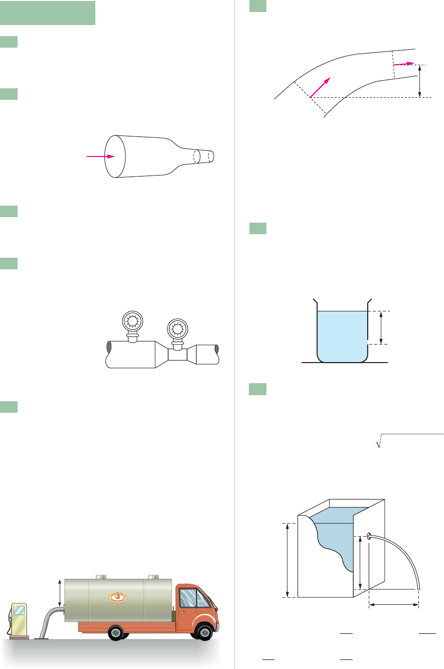 SIMULADÃO 55 HIDRODINÂMICA 307 Por um tubo de 10 cm de diâmetro interno pas- sam 80 � de água em 4 s. Qual a velocidade de es- coamento da água? 308 Por um tubo de 0,4 m de diâmetro passam 200 � de água por segundo. O tubo sofre um estreitamento e passa a ter 0,3 m de diâmetro. De- termine a veloci- dade da água nas duas partes do tubo. Considere � 3. 309 Um tubo A tem 10 cm de diâmetro. Qual o diâ- metro de um tubo B para que a velocidade do fluido seja o dobro da velocidade do fluido no tubo A? 310 Dois manômetros, A e B, são colocados num tubo horizontal, de seções variáveis, por onde circu- la água à velocidade de 1,2 m/s e 1,5 m/s, respecti- vamente. O manômetro coloca- do em A registra 24 N/ cm2. Calcule a pressão registrada pelo manô- metro em B. (Dado: dágua � 1 g/cm3.) 311 (UFPA) Em 5 minutos, um carro-tanque descarre- ga 5 000 � de gasolina, através de um mangote cuja seção transversal tem área igual a 0,00267 m2. (Vide figura.) Pergunta-se: a) Qual a vazão volumétrica média desse escoamen- to, em litros por segundo? b) Considerando os dados indicados na figura e g � 10 m/s2, qual a vazão volumétrica, em litros por segundo, no início do processo de descarga do com- bustível? c) O valor obtido no item b deve ser maior, menor ou igual ao do item a? 312 O tubo da figura tem 50 cm de diâmetro na seção A e 40 cm na seção B. A pressão em A é 2 � 105 N/m2. a) H c) 3 4 H e) 15 16 H b) 1 2 H d) 7 8 H 314 (Unipa-MG) Uma lata cheia de água até uma altura H tem um furo situado a uma altura Y de sua base, como mostra o desenho. Sabe-se da hidrodinâmica que a velocidade de dis- paro da água é dada por v g H Y� � � �2 ( ) . Sen- do X o alcance horizontal do jato de água, é correto afirmar que o maior alcance será obtido quando Y for igual a: O óleo transmitido por este tubo tem massa especí- fica igual a 0,8 g/cm3 e sua vazão é de 70 �/s. Con- sidere � 3,14. a) Calcule vA e vB. b) Calcule a pressão no ponto B. 313 A figura mostra a água contida num reservató- rio de grande seção transversal. Cinco metros abai- xo da superfície livre existe um pequeno orifício de área igual a 3 cm2. Admitindo g � 10 m/s2, calcule a vazão através desse orifício, em litros por segundo. água A B 3 m A B vB vA 5 m y y y 3 m ---- Hidrodinâmica