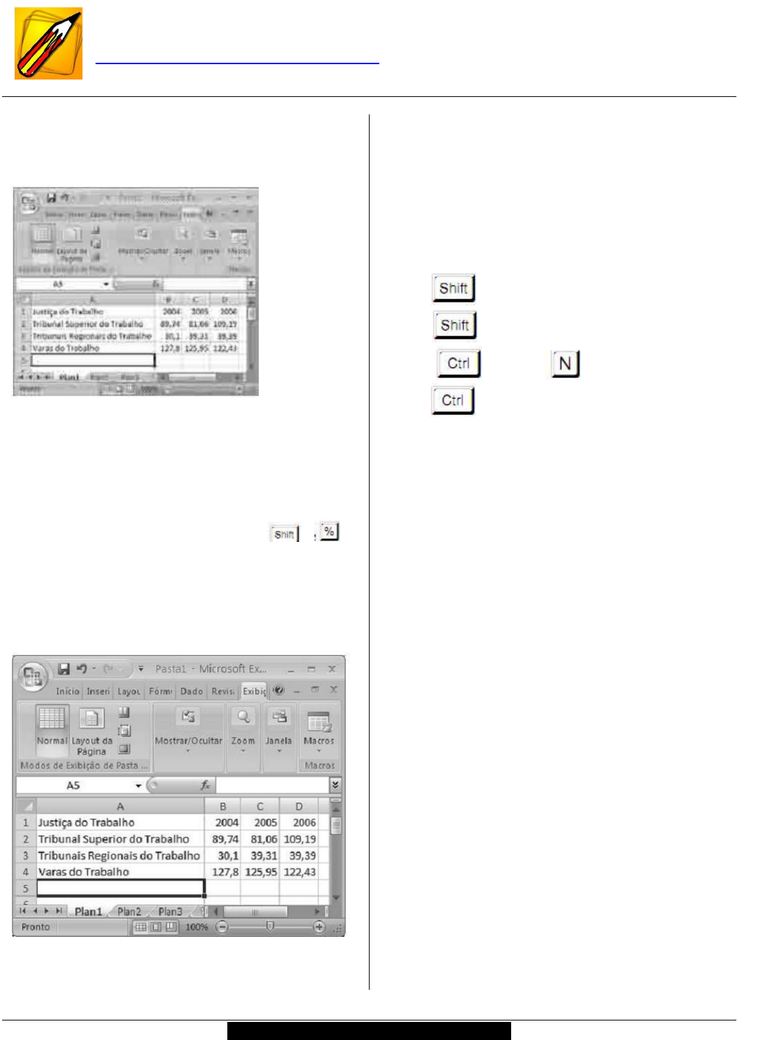 Microsoft Excel 2007 com uma planilha em