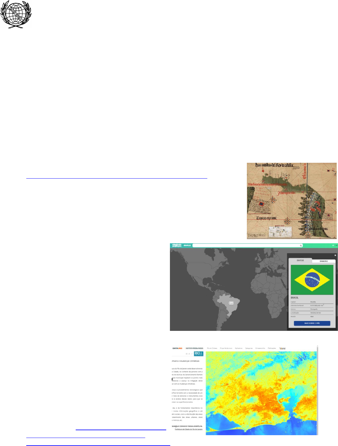 Colégio Pedro II -Campus Humaitá II Depto de Geografia - Coordenadora: Carolina Vilela Profs: Fernanda Amante e José Carlos- 1º Ano do Ensino Médio - Data: ___/___/____ Nome: ____________________________________________________________ Turma: ______ A REPRESENTAÇÃO DO ESPAÇO GEOGRÁFICO: A CARTOGRAFIA Existem diversas formas de se representar o espaço geográfico, seja por meio de desenhos artísticos, técnicos, fotografias, maquetes, mapas, entre outros. A ciência responsável pela representação gráfica do espaço geográfico, tendo como produto final o mapa, é a Cartografia. Os mapas são representações da realidade, ilustram de forma reduzida uma determinada área da Terra ou do espaço geográfico. Mais do que simplesmente um desenho ou uma imagem, os mapas são uma forma de comunicação, uma maneira que as pessoas têm de expressarem e compartilharem informações. Daí podemos identificar a importância e a grande diversidade de usos que os mapas possuem, para além da localização geográfica. Os mapas podem inclusive, ser um instrumento de poder. A seguir alguns exemplos da importância e das diferentes possibilidades de usos dos mapas: • Mapas históricos do Brasil, que são verdadeiras obras de arte: https://www.historia-brasil.com/mapas/mapas-historicos.htm • O site Países do IBGE (Instituto Brasileiro de Geografia e Estatística), agrega dados de várias fontes oficiais sobre os países do mundo. Divididos em seis temas (Economia, Indicadores Sociais, Meio Ambiente, População, Redes e Saúde), os dados são apresentados de forma sucinta e direta, permitindo a comparação entre os índices das diversas nações, basta clicar no mapa do país desejado. • O Rio Visto do Espaço: Ilhas de Calor Urbano e Mudanças Climáticas - Nesse site você vai conhecer o trabalho que a Prefeitura do Rio de Janeiro está desenvolvendo para estudar as Ilhas de Calor Urbano na Cidade em parceria com a NASA, Agência Espacial Norte Americana. Através de técnicas de Sensoriamento Remoto e imagens de satélite os técnicos da administração municipal mapeiam os pontos mais quentes do município e seu entorno, possibilitando o avanço na mitigação deste fenômeno climático que só tende a se intensificar com as mudanças climáticas. Acesse em: https://www.data.rio/app/o-rio- visto-do-espa%C3%A7o-ilhas-de-calor- urbano-e-mudan%C3%A7as-clim%C3%A1ticas https://www.historia-brasil.com/mapas/mapas-historicos.htm https://www.data.rio/app/o-rio-visto-do-espa%C3%A7o-ilhas-de-calor-urbano-e-mudan%C3%A7as-clim%C3%A1ticas https://www.data.rio/app/o-rio-visto-do-espa%C3%A7o-ilhas-de-calor-urbano-e-mudan%C3%A7as-clim%C3%A1ticas https://www.data.rio/app/o-rio-visto-do-espa%C3%A7o-ilhas-de-calor-urbano-e-mudan%C3%A7as-clim%C3%A1ticas • Descubra mais sobre o seu bairro e também o da escola, podendo marcar pontos de importância e interesse para a cidade, acessando o site: http://apps.data.rio/armazenzinho/passeio-pelo-bairro/ • O documentário "Todo mapa tem um discurso", nasceu do Projeto Wikimapa que mapeou algumas comunidades do Rio de Janeiro e São Paulo, que são excluídas dos mapas oficiais da cidade. O projeto de mapeamento dessas comunidades, apresenta à sociedade as populações invisíveis, destacando o mapeamento como mais um instrumento de inclusão social. Você pode assistir o documentário, acessando o link abaixo: 2014 / Documentário Direção: Francine Albernaz, Thaís Inácio https://vimeo.com/93081871 • A Universidade Johns Hopkins, em Maryland, nos Estados Unidos, é a principal referência no mundo quando o assunto é contabilização dos casos do novo coronavírus. A universidade disponibiliza em seu site um mapa mundi que atualiza, em tempo real, os novos casos confirmados da covid-19. Você pode visualizar a situação de cada país separadamente, também, acessando: https://gisanddata.maps.arcgis.com/apps/opsdashboard/index.html#/bda7594740fd40299423467b48e9 ecf6 • A Microsoft também lançou um mapa online que acompanha em tempo real o surto do novo coronavírus, conhecido oficialmente como Sars-Cov-2 ou covid-19, decretado pela Organização Mundial da Saúde como pandemia no dia 11 de m arço. Você consegue acessar o mapa em tempo real em: https://www.bing.com/covid http://apps.data.rio/armazenzinho/passeio-pelo-bairro/ http://www.adorocinema.com/filmes/todos-filmes/notas-espectadores/genero-13007/ http://www.adorocinema.com/personalidades/personalidade-875365/ http://www.adorocinema.com/personalidades/personalidade-870491/ https://vimeo.com/93081871 https://gisanddata.maps.arcgis.com/apps/opsdashboard/index.html#/bda7594740fd40299423467b48e9ecf6 https://gisanddata.maps.arcgis.com/apps/opsdashboard/index.html#/bda7594740fd40299423467b48e9ecf6 https://www.bing.com/covid Agora escreva outros dois usos dos mapas e sua importância. ________________________________________________________________________________ ________________________________________________________________________________ ________________________________________________________________________________ ________________________________________________________________________________ ________________________________________________________________________________ MAPA MENTAL: O TRAJETO CASA-ESCOLA A atividade consiste em despertar o OLHAR GEOGRÁFICO para o meio que nos cerca. Para isso você irá ilustrar o caminho realizado entre a sua casa e a escola, “GEOGRAFANDO” esse trajeto, ou seja, identificando o conjunto de objetos e de ações que fazem parte do seu dia-a-dia em um mapa de sua autoria. PLANEJAMENTO: - Observe atentamente a área a ser ocupada pelo seu mapa. Ele deve ser construído no tamanho exato da folha de papel comum. Note que para isso você deverá usar os processos de seleção e generalização de elementos, que estão relacionados ao entendimento de ESCALA, um dos elementos do mapa. Dependendo da escala de análise conseguiremos observar mais ou meno