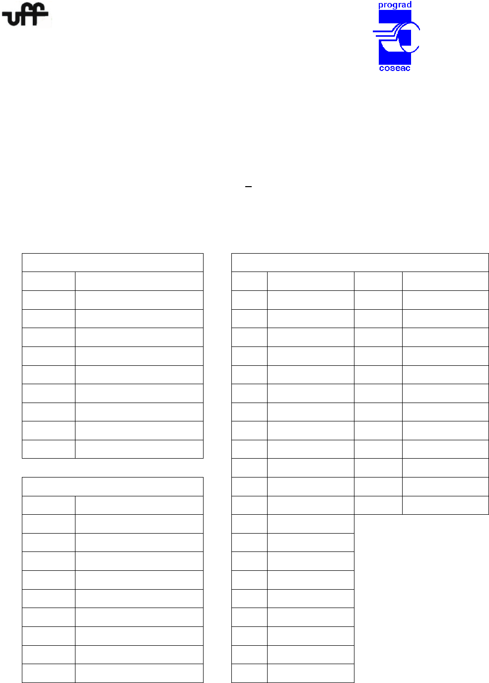 UNIVERSIDADE FEDERAL FLUMINENSE PROGEPE – PRÓ-REITORIA DE GESTÃO DE PESSOAS CPTA – COORDENAÇÃO DE PESSOAL TÉCNICO-ADMINISTRATIVO PROGRAD – PRÓ-REITORIA DE GRADUAÇÃO COSEAC – COORDENAÇÃO DE SELEÇÃO ACADÊMICA GABARITO APÓS RECURSOS CONCURSO PÚBLICO PARA TÉCNICO-ADMINISTRATIVO Edital no 190/2022 Cargo: ASSISTENTE SOCIAL Parte I: Língua Portuguesa Parte III: Conhecimentos Específicos 01 B 21 D 43 E 02 D 22 A 44 D 03 E 23 C 45 E 04 A 24 B 46 C 05 A 25 B 47 D 06 D 26 A 48 C 07 E 27 D 49 E 08 A 28 A 50 C 09 C 29 A 51 E 10 ANULADA 30 A 52 E 31 B 53 A Parte II: N.B. Administração Pública 32 C 54 C 11 C 33 B 55 A 12 C 34 E 13 C 35 A 14 E 36 D 15 A 37 B 16 B 38 C 17 D 39 C 18 E 40 B 19 E 41 E 20 D 42 E Questão 10 - ANULADA Prof. NÉLITON VENTURA Coordenador Acadêmico da COSEAC