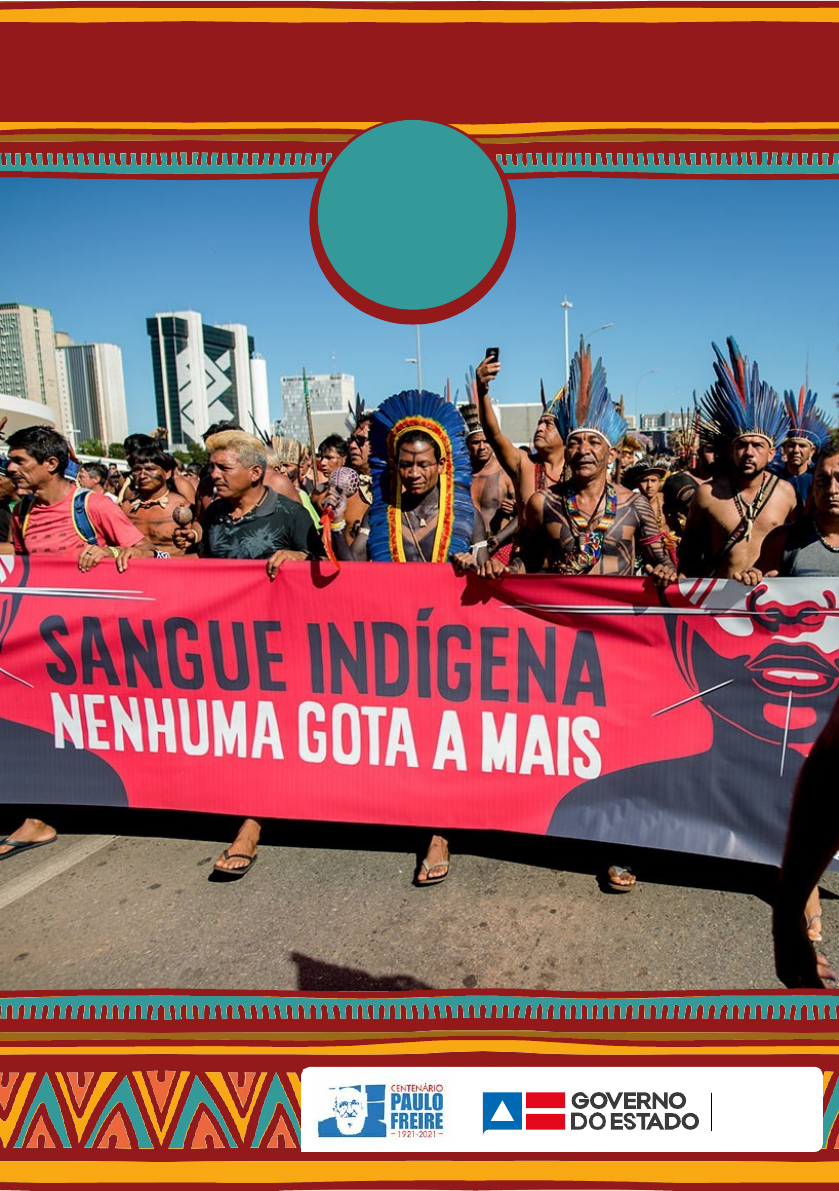 Caderno de Apoio à Aprendizagem AFRO-INDÍGENA BRASILEIRA 1ª SÉRIE TRILHA 6 SECRETARIA DA EDUCAÇÃO EXPEDIENTE Governo da Bahia Rui Costa | Governador João Leão | Vice-Governador Jerônimo Rodrigues | Secretário da Educação Danilo Melo Souza | Subsecretário Manoel Vicente Calazans | Superintendente de Políticas para a Educação Básica Coordenação Geral Iara Martins Icó Sousa Poliana Nascimento dos Reis Coordenação de Educação do Campo/Quilombola Poliana Nascimento dos Reis Coordenações das Etapas Poliana Nascimento dos Reis Cassia Margarete Amaro dos Santos Daniela Silva Ferreira Equipe de Elaboração Adenilza dos Santos Macedo / Adenilza Kiriri | Coordenadora da Educação Escolar Indígena da Bahia Admilson Silva Amaral (Katu Tupinambá) Carlos Eduardo Carvalho de Santana Francisco Cruz Nascimento Jeane Borges dos Santos Lucia Santana dos Santos da Silva Mille Caroline Rodrigues Fernandes (Makyesi) Rosemária Joazeiro Pinto de Sousa Colaboradores(as) Adriana Mendonça dos Santos Bruno Alves Moura Ito Cassia Margarete Amaro dos Santos Daniela Silva Ferreira Fernanda Pessoa do Amaral Gilberto Cardoso Alemeida Poliana Nascimento dos Reis Revisão, projeto gráfico e diagramação Marjorie Amy Yamada Foto da capa Manifestação durante o 15º Acampamento Terra Livre, em Brasília. Foto por Christian Braga | MNI, abril de 2019. EPÍGRAFE Como todo mito, o da democracia racial oculta algo para além daquilo que mostra. Numa primeira apro- ximação, constatamos que exerce sua violência simbólica de maneira especial sobre a mulher negra. Lélia Gonzalez À Comunidade Escolar, É com grande satisfação que disponibilizamos para a Rede Estadual de Ensino da Bahia os Cadernos de Apoio à Aprendizagem, um material pedagógico produzido a muitas mãos, destinado a apoiar educadores e estudantes no momento de retomada das atividades letivas. A sua elaboração envolveu professores(as) voluntários(as) e participação dos movimentos sociais, além de técnicos e gestores da Superintendência de Políticas para a Educação Básica – SUPED, responsável pela coordenação do trabalho. Destaca-se, em especial, a intensa interlocução entre diferentes modalidades, na perspectiva de produzir um material atento à acessibilidade e que contemple diferentes modalidades. Os Cadernos foram concebidos como materiais de suporte para o planejamento pedagógico e para o restabelecimento das rotinas escolares. Sua elaboração partiu da análise crítica sobre quais seriam, nesse momento específico, as aprendizagens significativas para os estudantes, e quais as competências e habilidades a serem desenvolvidas por eles e elas ao longo desse ano letivo tão atípico. A partir daí, foram construídos os organizadores curriculares, que promovem uma aproximação entre a experiência docente em sala de aula e os objetos de conhecimentos que compõem o Documento Curricular Referencial da Bahia da Educação Infantil e Ensino Funda- mental (DCRB) e a Base Nacional Comum Curricular (BNCC). A organização didática foi feita sob a forma de “Trilhas de Apren- dizagem” associadas aos objetos de conhecimento. Essa estrutura visa a organizar e a acompanhar o processo de construção da apren- dizagem pelo estudante, propondo interações e conferindo auto- nomia aos diferentes sujeitos. Cada trilha tem objetivos específicos e sua abordagem foi pensada especialmente para o público estudantil, apresentando uma linguagem que busca despertar a curiosidade e instigar a pesquisa, tornando o aprendizado mais eficaz, agradável, contextualizado e significativo. Por fim, esperamos que esse material seja utilizado pelos educa- dores no planejamento pedagógico para o retorno às atividades letivas, como forma de conciliar os tempos e espaços de aprendi- zagem, e que sirva de inspiração para a produção de novas trilhas, em diferentes linguagens (áudio, vídeo, imagens, redes). Neste sentido, convidamos todos os educadores e educadoras da Rede Pública Estadual a produzirem e (re)elaborarem, a partir dos Cadernos de Apoio, suas Trilhas Autorais, abordando os contextos e necessidades territoriais e locais de cada realidade deste “país” chamado Bahia. Abraços fraternos! JERÔNIMO RODRIGUES Secretário de Educação do Estado da Bahia APRESENTAÇÃO Aquilombar-se na contemporaneidade, em tempos de retro- cessos políticos, feminicídios, ecogenoetnocídio, homofobia, transfobia, machismo, sexismo, racismo, intolerância religiosa, entre outras mazelas sociais, é um dos desafios mais urgentes na história da humanidade. Vivemos os tempos mais difíceis que a história já pôde contar. Todavia, buscamos no conceito epistemológico de kilombo uma união de forças capazes de nos manter vivos e vivas, tal como nossos(as) ancestrais fizeram ao recriar nos kilombos, nos terreiros de religiões de matrizes africanas e nas diversas etnias indígenas, espalhados por todo o território brasileiro, a compreensão de coletividade como estratégia de luta e reexistência para que hoje pudéssemos ter acesso à herança cultural, política, filosófica, religiosa e pedagógica deixada por nossos(as) antepassados(as). As Trilhas afro-indígenas brasi- leiras são uma revisão histórica da ancestralidade indígena e negra do Brasil. Visto que nosso país possui a maior diáspora africana e que há 305 etnias indígenas no Brasil e 22 na Bahia, precisamos revisar a nossa história de vida, a nossa ancestra- lidade pelas vias da diversidade, pela quebra dos referenciais brancos de uma história única, pela necessidade de fazermos a descolonização nos currículos da escolas na educação e pela releitura dos nossos legados ancestrais que os livros didáticos não contemplam. Esta trilha é simples, mas é a proposta de um estudo das epis- temes tradicionais que quebram a verticalidade do poder, é a posição contra-hegemônica de educadoras e educadores que fazem do respeito à cultura afroindígena n