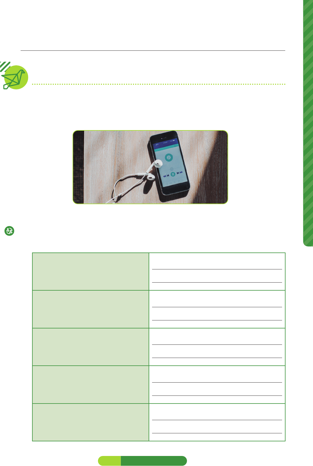 LÍNGUA PORTUGUESA39 4. Qual é o meio de comunicação mais utilizado pelas pessoas da sua família? PRATICANDO Como você viu, o rádio é um dos meios de comunicação mais utilizados pelos brasilei- ros para se informar. Vamos ouvir uma notícia veiculada por uma rádio. Ca th er in e Fa lls C om m er cia l/M om en t/G et ty Im ag es Atualmente, é muito comum ouvir rádio via internet ou em aparelhos portáteis, como celulares. 1. Após ouvir a notícia veiculada por uma rádio, escrevam as suas percepções sobre cada um dos itens da tabela. Tipos de informações apresenta- das no programa. Tipo de música de abertura do jornal. Postura dos apresentadores. Entonação de voz dos apresenta- dores para anunciar as manchetes. Recursos sonoros. EFAI_REG_CE_LP_4ANO_2BI_LA.indb 39EFAI_REG_CE_LP_4ANO_2BI_LA.indb 39 17/12/2021 04:1417/12/2021 04:14 4o ANO40 2. Com base no jornal radiofônico ouvido, relacione as colunas. a. Qual é o nome do jornal? ( ) As manchetes. b. O que marca o início do jornal? ( ) Os apresentadores âncoras reforçam o nome do jornal, apresentam-se e informam o horário e a data. c. Quais são as primeiras informações anunciadas por um dos âncoras? ( ) A função é apresentar o programa. Devem ser simpáticos aos ouvintes, sendo responsá- veis por anunciar as manchetes e as notícias. d. Ainda na abertura, os âncoras se alteram anunciando o quê? ( ) A função é marcar começo, fim ou mudança de quadro nos programas. Pode ser também uma marca de identidade do programa. e. Após as manchetes ouvimos o quê? ( ) A voz do Brasil. f. Qual é a função dos âncoras? ( ) Servem para atrair a atenção do ouvinte, resumindo as principais notícias do dia. g. Qual é a função da vinheta? ( ) As vinhetas. h. Para que servem as manchetes? ( ) Informações de lugar e hora. Hoje, é possível produzir, pela internet, programas de notícias similares aos das rádios tradicionais. m ixe tto /E +/ Ge tty Im ag es EFAI_REG_CE_LP_4ANO_2BI_LA.indb 40EFAI_REG_CE_LP_4ANO_2BI_LA.indb 40 17/12/2021 04:1417/12/2021 04:14 LÍNGUA PORTUGUESA41 RETOMANDO Agora é a sua vez! 1. Dentre os elementos que compõem um jornal radiofônico, descritos a seguir, sele- cione dois considerados indispensáveis para a apresentação da notícia. ( ) As manchetes. ( ) Um apresentador com boa entonação e articulação das palavras. ( ) A vinheta e recursos sonoros. ( ) As notícias. ( ) O repórter e as entrevistas. ( ) A interação com a audiência. 2. Justifique sua resposta. 3. Que diferenças você observa entre o modo como você fala e o dos apresentadores de uma programação de rádio? Dê exemplos. EFAI_REG_CE_LP_4ANO_2BI_LA.indb 41EFAI_REG_CE_LP_4ANO_2BI_LA.indb 41 17/12/2021 04:1417/12/2021 04:14