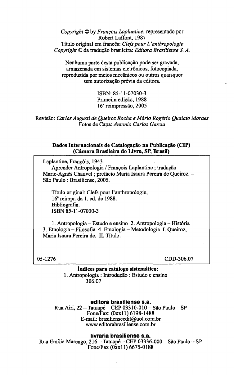 Copyright © by François Laplantine, representado por Robert Laffont, 1987 Titulo original em francês: Clefs pour L 'anthropologie Copyright © da tradução brasileira: Editora Brasiliense S. A. Nenhuma parte desta publicação pode ser gravada, armazenada em sistemas eletrônicos, fotocopiada, reproduzida por meios mecânicos ou outros quaisquer sem autorização prévia da editora. ISBN: 85-11-07030-3 Primeira edição, 1988 168 reimpressão, 2005 Revisão: Carlos Augusti de Queiroz Rocha e Mário Rogério Quaiato Moraes Fotos de Capa: Antonio Carlos Garcia Dados Internacionais de Catalogaçio na Publicaçio (CIP) (Câmara Brasileira do Livro, SP, Brasil) Laplantine, Franç6is, 1943- Aprender Antropologia / François Laplantine ; tradução Marie-Agnes Chauvel ; prefácio Maria Isaura Pereira de Queiroz. São Paulo: Brasiliense, 2005. Titulo original: Clefs pour l'anthropologie, 168 reimpr. da 1. ed. de 1988. Bibliografia. ISBN 85-11-07030-3 I. Antropologia - Estudo e ensino 2. Antropologia - Hist6ria 3. Etnologia - Filosofia 4. Etnologia - Metodologia r. Queiroz, Maria Isaura Pereira de. n. Titulo. 05-1276 CDD-306.07 Índices para catálogo sistemático: I. Antropologia: Introdução : Estudo e ensino 306.07 editora brasiliense s.a. Rua Airi, 22 - Tatuapé - CEP 03310-010 - São Paulo - SP FoneIFax: (Oxxll) 6198-1488 E-mail: brasilienseedit@uol.com.br www.editorabrasiliense.com.br livraria brasiliense s.a. Rua Emilia Marengo, 216 - Tatuapé - CEP 03336-000 - São Paulo - SP FonelFax (Oxxll) 6675-0188 INTRODUÇÃO o CAMPO E A ABORDAGEM ANTROPOLóGICOS o homem nunca parou de interrogar-se sobre si mesmo. Em todas as sociedades existiram homens que observavam homens. Houve até alguns que eram teóricos e forjaram, como diz Lévi-Strauss, modelos elaborados "em casa". A reflexão do homem sobre o homem e sua sociedade, e a elaboração de um saber são, portanto, tão antigos quanto a humanidade, e se deram tanto na Ásia como na África, na América, na Oceania ou na Europa. Mas o projeto de fundar uma ciência do homem - uma antropologia - é, ao contrário, muito recente. De fato, apenas no final do século XVIII é que começa a se constituir um saber cientí fico (ou pretensamente científico) que toma o homem como objeto de conhecimento, e não mais a natureza; apenas nessa época é que o espírito científico pensa, pela primeira vez, em aplicar ao próprio homem os métodos até então utilizados na área física ou da biologia. Isso constitui um evento considerável na história do pensamento do homem sobre o homem. Um evento do qual talvez ainda hoje não estejamos medindo todas as conse- 14 o CAMPO E A ABORDAGEM ANTROPOLóGICOS APRENDER ANTROPOLOGIA 15 qüências. Esse pensamento tinha sido até então mitológico, artístico, teológico, filosófico, mas nunca científico no que dizia respeito ao homem em si. Trata-se, desta vez, de fazer passar este último do estauto de sujeito do conhecimento ao de objeto da ciência. Finalmente, a antropologia, ou mais precisamente, o projeto antropológico que se esboça nessa época muito tardia na História - não podia existir o con ceito de homem enquanto regiões da humanidade permane ciam inexploradas - surge" em uma região muito pequena do mundo: a Europa. Isso trará, evidentemente, como vere mos mais adiante, conseqüências importantes. Para que esse projeto alcance suas primeiras realiza ções, para que o novo saber comece a adquirir um início de legitimidade entre outras disciplinas científicas, será pre ciso esperar a segunda metade do século XIX, durante o qual a antropologia se atribui objetos empíricos autônomos: as sociedades então ditas "primitivas", ou seja, exteriores às áreas de civilização européias ou norte-americanas. A ciên cia. ao menos tal como é concebida na época, supõe uma dualidade radical entre o observador e seu objeto. Enquanto que a separação (sem a qual não há experimentação possí vel) entre o. sujeito observante e o objeto observado é obtida na física (como na biologia, botânica, ou zoologia) pela natureza suficientemente diversa dos dois termos presentes, na história, pela distância no tempo que separa o historiador da sociedade estudada, ela consistirá na antropologia, nessa época - e por muito tempo - em uma distância definiti vamente geográfica. As sociedades estudadas pelos primeiros antropólogos são sociedades longínquas às quais são atribuí das as seguintes características: sociedades de dimensões res tritas; que tiveram poucos contatos com os grupos vizinhos; cuja tecnologia é pouco desenvolvida em relação à nossa; e nas quais há uma menor especialização das atividades e funções sociais. São também qualificadas de "simples"; em conseqüência. elas irão permitir a compreensão, como numa situação de laboratório, da organização "complexa" de nos sas próprias sociedades. * * * A antropologia acaba, portanto, de atribuir-se um obje to que lhe é próprio: o estudo das populações que não per tencem à civilização ocidental. Serão necessárias ainda algu mas décadas para elaborar fetramentas de investigação que permitam a coleta direta no campo das observações e infor mações. Mas logo após ter firmado seus próprios métodos de pesquisa - no início do século XX - a antropologia percebe que o objeto empírico que tinha escolhido (as so ciedades "primitivas") está desaparecendo; pois o próprio universo dos "selvagens" não é de forma alguma poupado pela evolução social. Ela se vê, portanto, confrontada a uma crise de identidade. Muito rapidamente, uma questão se co loca, a qual, como veremos neste livro, permanece desde seu nascimento: o fim do "selvagem" ou, como diz Paul Mercier (1966), será que a "morte do primitivo" há de causar a morte daqueles que haviam se dado como tarefa o seu estudo? A essa pergunta vários tipos de resposta pu deram e podem ainda ser dados. Detenhamo-nos em três deles. 1) O antropólo