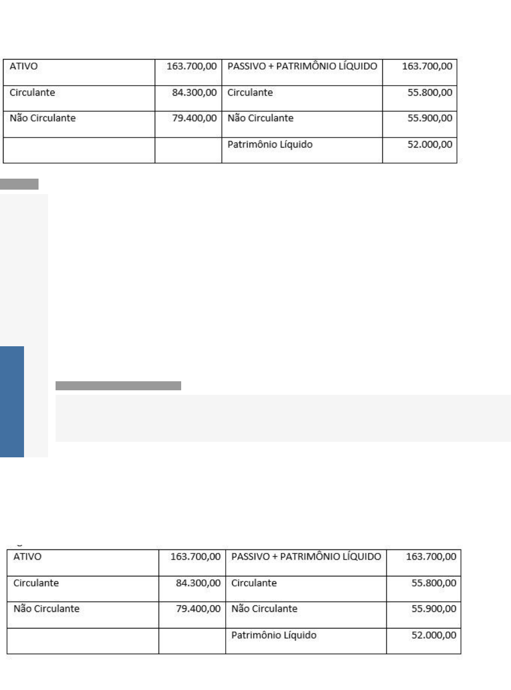 Questão 1/5 - Engenharia Econômica Determinada empresa apresentou em 31/12/2014 o seu Balanço Patrimonial com as informações a seguir: Nota: 20.0 A O capital circulante líquido corresponde ao valor de (R$27.400,00), pois é a diferença do Ativo Circulante e o Passivo Circulante mais o Não Circulante. B O índice de liquidez corrente corresponde a 2,93. C O capital circulante líquido corresponde ao valor de R$52.000,00, pois é o valor do capital próprio da empresa. D O índice de liquidez geral corresponde a 1,51 E O capital circulante líquido corresponde ao valor de R$28.500,00, que é a diferença entre o Ativo Circulante e o Passivo Circulante. Você assinalou essa alternativa (E) Você acertou! Capital Circulante Líquido: Ativo Circulante – Passivo Circulante Capital Circulante Líquido: 84.300 – 55.800 = 28.500,00 Questão 2/5 - Engenharia Econômica Determinada empresa apresentou em 31/12/2014 o seu Balanço Patrimonial com as informações a seguir: Calcule o quociente de capitais de terceiros sobre capitais próprios Nota: 20.0 A 1,87 B 2,14 Você assinalou essa alternativa (B) Você acertou! Quociente de capitais de terceiros sobre capitais próprios: Exigível Total / Patrimônio Líquido Quociente de capitais de terceiros sobre capitais próprios: 111.700 / 52.000 = 2,14 C 2,57 D 2,93 Questão 3/5 - Engenharia Econômica Determinada empresa apresentou em 31/12/2014 o seu Balanço Patrimonial com as informações a seguir: Calcule o quociente de participação de capitais de terceiros sobre os recursos totais: Nota: 20.0 A 68,23% Você assinalou essa alternativa (A) Você acertou! Endividamento Total com Terceiros: Exigível Total / (Exigível Total + Patrimônio Líquido) Endividamento Total com Terceiros: 111.700 / (111.700 + 52.000) Endividamento Total com Terceiros: 111.700 / 163.700 = 0,6823 ou 68,23% B 69 % C 70,12% D 71,37% Questão 4/5 - Engenharia Econômica Analise as informações abaixo do BALANÇO PATRIMONIAL e do DEMONSTRATIVO DE RESULTADOS da empresa Exemplo Ltda. Considerando os dados do BP e da DR, calcule para o ano de 2014: a) Ciclo Operacional b) Ciclo Financeiro Nota: 20.0 A 60,21 dias e 14,38 dias B 62,37 dias e 15,98 dias C 66,89 dias e 17,81 dias Você assinalou essa alternativa (C) Você acertou! D 71,45 dias e 19,52 dias Questão 5/5 - Engenharia Econômica Inflação é o aumento generalizado dos preços. A inflação precisa ser considerada em cálculos financeiros, para se apurar qual é a taxa de juros. Esta taxa, após excluídos os efeitos inflacionários é o ganho real proporcionado por determinada aplicação, após excluídos os efeitos da perda monetária pela inflação. Assinale a alternativa que apresenta o nome correto desta taxa: Nota: 20.0 A Taxa de juros real Você assinalou essa alternativa (A) Você acertou! Texto de Apoio da Aula 1 - Tema 2 - p.9 B Taxa de juros global C Taxa equivalente D Taxa de juros nominal E Taxa de juros efetiva image4.jpeg image5.jpeg image1.jpeg image2.jpeg image3.jpeg