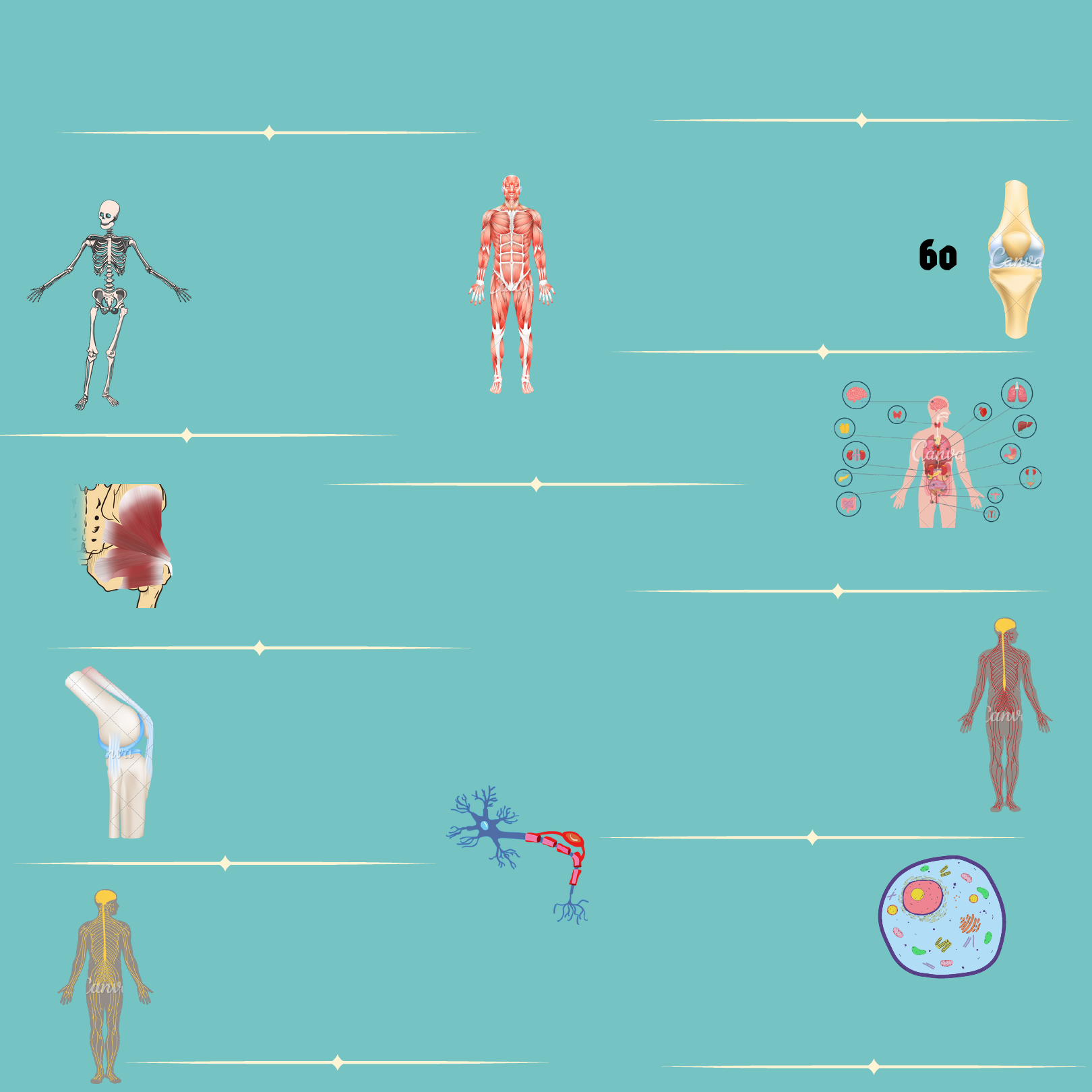 Articulações: 360 Corpo Humano Ossos: 206 Músculos: 650 Tendões: 4000 Ligamentos: 900 Órgãos: 80 Nervos: 43 pares e ramificações Vasos sanguíneos: 96, 5 mil km Neurônios: 86 bilhões Células: 37,2 trilhões @mari.studies.enf