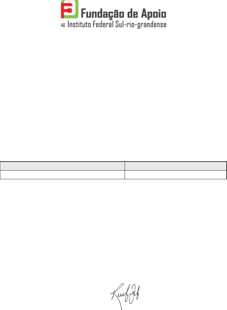 EDITAL FAIFSul Nº 21/2024 A FUNDAÇÃO ÊNNIO DE JESUS PINHEIRO AMARAL DE APOIO AO INSTITUTO FEDERAL DE EDUCAÇÃO, CIÊNCIA E TECNOLOGIA SUL-RIO- GRANDENSE torna pública o resultado preliminar do processo de seleção simplificada para provimento de vagas e formação de cadastro de reserva para seleção de profissional Articulador Comunitário – pessoa física, para atuarem no Projeto de extensão ESTAÇÃO CULTURAL JARDIM DAS FLORES na AÇÃO: promoção de oficinas relacionadas à produção artística voltada a crianças, adolescentes, jovens e mulheres residentes no bairro Jardim das Flores/ Camaquã (RS). Resultado Preliminar Candidato(a) Classificação Dandara Leandra Lima de Quevedo 1º lugar Pelotas, 18 de abril de 2024 Leandro Neutzling Barbosa Coordenador Osmar Renato Brito Furtado Presidente da FAIFSUL 2024-04-18T08:50:35-0300