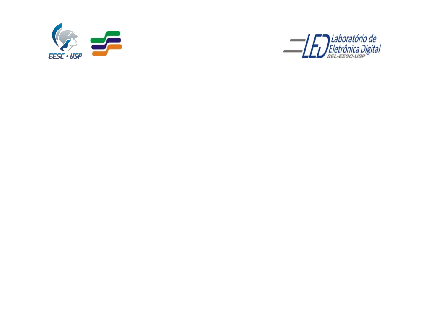 Escola de Engenharia de São Carlos Departamento de Engenharia Elétrica e de Computação SEL0323 – Laboratório de Sistemas Digitais II Profa. Luiza Maria Romeiro Codá luiza@sc.usp.br Aula 1 : Circuitos Astáveis e Monoestaveis Circuitos multivibradores Existem 2 tipos de multivibradores: astável : Não apresenta entrada e sua saída não apresenta sinal estável, oscila entre o nivel ‘0’ e ‘1’ através de uma frequência de projeto monoestável: A entrada tira o circito de seu estado único estado estável por um tempo determinado pelo produto de R e C. 2 2 Os circuitos digitais na maioria das vezes necessitam de um sinal de sincronismo. Esses sinais de sincronismo geralmente são sinais retangulares que são produzidos por circuitos osciladores digitais ou multivibrador astável, como eram conhecidos antigamente. saída T1 valores discretos nível lógico “1”(um) ou T2 nível lógico “0”(zero). astável Osciladores (multivibrador astável ): Oscilador com frequência determinada por descarga RC Oscilador com frequência determinada por cristal de quartzo 3 3 R e C determinam a frequência de operação que pode variar de hertz até aproximadamente 7 MHz alimentados com 12V devido ao limite de operação desses componentes Exemplos 1: Osciladores usando Inversores CMOS: R2 >> R1 , R2 aprox. 1MΩ Onde: C deve ser expresso em farads, R em ohms; frequência em hertz. Osciladores com frequência determinada por circuito RC: 4 4 Osciladores com frequência determinada por circuito RC: R2 >> R1 + Rx Onde: C deve ser expresso em farads, R em ohms; frequência em hertz. Potenciômetro para ajuste de frequência Exemplo 2 : oscilador utilizando inversores CMOS com ajuste de frequência 5 5 Osciladores com frequência determinada por circuito RC: Onde: C deve ser expresso em farads, R em ohms; frequência em hertz. Potenciômetro para ajuste de simetriaia Exemplo 3 : oscilador utilizando inversores CMOS com ajuste de simetria 6 6 Oscilador com frequência determinada por cristal de quartzo oscilador de cristal é um componente eletrônico que utiliza a ressonância de um cristal (quartzo) em vibração de um material piezoeletrônico para criar um sinal elétrico com uma frequência fixa dentro de limites estreitos; efeito piezoeléctrico é um fenómeno no qual a energia mecânica é convertida em energia eléctrica e vice-versa; 7 7 Oscilador com frequência determinada por cristal de quartzo (continuação) circuito elétrico equivalente a um cristal Onde: R é a resistência serie efetiva; L e C são a indutância e a capacitância do Cristal; Cp é a capacitância resultante dos termináis. 8 8 Oscilador com frequência determinada por cristal de quartzo (continuação) Circuito de ressonância paralela de um cristal Fa é a frequência de ressonância em paralelo CL é o modo de ressonância em paralelo Cp é 9 9 Oscilador com frequência determinada por cristal de quartzo (continuação) Exemplo 1 : Circuito Oscilador com cristal de quartzo utilizando circuito inversores CMOS. Exemplo 2 : Circuito Oscilador com cristal de quartzo utilizando circuito portas NOR CMOS. 10 10 Monoestáveis apresenta apenas um estado estável, no qual permanece Indefinidamente; Ao ser aplicada uma entrada sua saída pode sair do estado estável e permanecer no estado instável (ou quase estável) por um tempo Tm determinado pelo circuito, Monoestáveis não redisparável; Monoestáveis redisparável 11 11 Monoestável não redisparável não respondem ao disparo caso sua saída esteja no estado instável, Exemplo de circuito comercial 12 12 Monoestável redisparável respondem a qualquer tempo ao disparo, mesmo que sua saída esteja no estado instável. Exemplo de circuito comercial 13 13 Prática Nº 1 Controle de uma esteira industrial 50 ms > 50 ms Sinal A tamanho da peça Esteira Botão Sinal B Esteira com botão Esteira desligada 14 Prática Nº 1 Controle de uma esteira industrial 15 Sinal A: Gerar usando um oscilador variavel com duty cicle variável e frequência ajustável; Sinal B: Utilizar um PB cujo acionamento páre a esteira e um segundo acionamento reinicie o funcionamento da esteira; Sinal Esteira: Saída do circuito que é composto do sinal A combinado à saída de um monoestável 15 Acionamento de LEDs 16 Na configuração o LED acende quando o nível lógico na saída do Circuito Digital é nível zero ( configuração Anodo Comum); 16 Acionamento de Chaves 17 17 FIM 18 18 image1.png image2.png image3.jpg image4.png image5.png image6.png image7.png image8.png image9.png image10.png image11.png image12.png image13.png image14.png image15.png image16.jpg image17.jpg image18.jpg image19.png image20.png image21.png image22.png image23.png image24.png image25.png image26.png image27.png