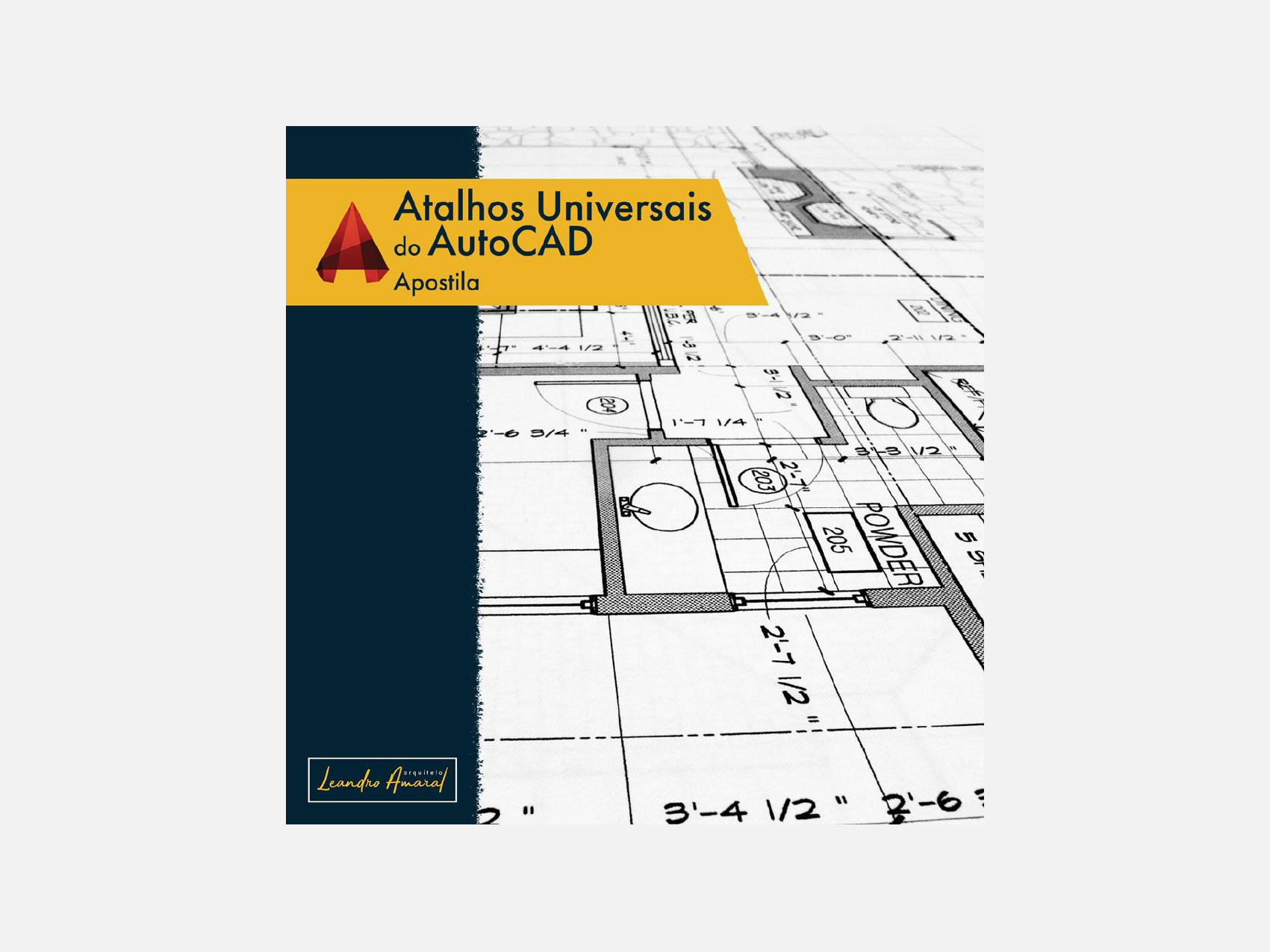 Apostila – Atalhos Universais do AutoCAD © 2021 – Versão 1.0 - Todos os direitos reservados. Acesse: www.arquitetoleandroamaral.com 1 ÍNDICE ÍNDICE ______________________________________________________________________________________________________________ 1 SOBRE MIM __________________________________________________________________________________________________________ 2 ATALHOS DO AUTOCAD ________________________________________________________________________________________________ 3 ATALHOS GERAIS ______________________________________________________________________________________________________________ 3 ATALHOS DE DESENHO __________________________________________________________________________________________________________ 6 ATALHOS DE MODIFICAÇÃO ______________________________________________________________________________________________________ 8 ATALHOS DE TEXTOS, COTAS E ESTILOS ____________________________________________________________________________________________ 10 ATALHOS DE MENSURAMENTO __________________________________________________________________________________________________ 11 ATALHOS DE PRANCHA E IMPRESSÃO _____________________________________________________________________________________________ 12 ATALHOS DE LIMPEZA DE DESENHO ______________________________________________________________________________________________ 13 É ISSO ______________________________________________________________________________________________________________ 14 Apostila – Atalhos Universais do AutoCAD © 2021 – Versão 1.0 - Todos os direitos reservados. Acesse: www.arquitetoleandroamaral.com 2 SOBRE MIM Sou Leandro Amaral, arquiteto e professor de cursos online, desde 2013 ensino meus alunos a despertarem seu potencial máximo na Arquitetura. Comecei na área dos projetos como desenhista em 2009, não tinha criatividade alguma, mal sabia usar os programas, já pensei em desistir, inclusive me disseram para desistir, pois segundo eles eu não “levava jeito”, mas eu tinha o sonho de viver e vencer nessa área da arquitetura. Me dediquei e o tempo passou. No primeiro ano de formado meu escritório pegou projetos em 6 estados brasileiros, bem no auge da crise econômica no Brasil (2016), comprovando que o sucesso de fato só depende de nós e que são os sonhos que nos movem. Assim como apresentar projetos de qualidade mudou a minha vida, acredito realmente que pode mudar outras e desse modo quero compartilhar isso com o maior número de pessoas possível. Por isso criei o Método – AutoCAD e Sketchup Dominado, um pacote de cursos online onde compilei toda a minha experiência nos mais de 57.217,16m² de projetos dos quais eu ajudei a desenhar, e este Método está ajudando milhares de alunos a aprenderem a desenhar seus próprios projetos sem precisar sair de casa. Apostila – Atalhos Universais do AutoCAD © 2021 – Versão 1.0 - Todos os direitos reservados. Acesse: www.arquitetoleandroamaral.com 3 ATALHOS DO AUTOCAD DICA -> É recomendado utilizar o AutoCAD na versão em inglês devido a facilidade de integração com a maioria dos escritórios brasileiros, porém se for utilizar em Português não tem nenhum problema, fique à vontade para escolher. DICA -> Se for usar o AutoCAD em português, use os atalhos em vermelho abaixo, digitando primeiro o _ (underline) antes de digitar o atalho (ex: _a para criar arcos, _el para desenhar elipses). DICA -> A maioria dos atalhos possuem sub-atalhos que também são ativados através de texto. DICA -> A tecla ENTER, ESPAÇO e BOTÃO DIREITO DO MOUSE ativam os atalhos abaixo. ATALHOS GERAIS Veja o Vídeo 06 do Módulo 01 do nosso treinamento e entenda na prática como utilizar cada atalho abaixo. LAYER, LA -> Entra na tela de edição das layers (camadas) do projeto. Permite alterar a cor das linhas na tela de desenho, estilo da linha, espessura, e muito mais. LAYOFF -> Desliga as layers selecionadas. Facilita ocultar rapidamente uma ou mais layers ao mesmo tempo. LAYON -> Liga as layers desligadas. F2 -> Exibe o histórico da linha de comandos. F3 -> Permite ligar e desligar o object snap. Apostila – Atalhos Universais do AutoCAD © 2021 – Versão 1.0 - Todos os direitos reservados. Acesse: www.arquitetoleandroamaral.com 4 O object snap funciona como imã na hora de manipular o desenho, esse imã pode ser o meio do objeto, pontas, etc. F7 -> Ativa e desativa a grade. F8 -> Ativa e desativa o ortho, ótimo para manipulação em linha reta. F12 -> Ativa e desativa a janela dinâmica do cursor. REINIT -> Carrega os novos atalhos criados. O AutoCAD permite colocar qualquer atalho em qualquer função, sinta-se livre para deixar como quiser. SH -> Acessa a Linha de Comandos do Autocad. OPTIONS, OP -> Personaliza as configurações do programa. Você pode alterar o formato de salvamento automático do AutoCAD, cores da tela de desenho e impressão, tamanho do cursor, template padrão, tempo de salvamento automático, impressora padrão, configurações do vídeo, e muito mais. OSNAP, OS -> Define os tipos de snap (imã). PAN, P -> Move a vista na viewport atual. Também pode ser usado clicando na bolinha do mouse e arrastando-o. UNITS, UN -> Controla os formatos de exibição de coordenadas e ângulos e a precisão. ZOOM, Z -> Aumenta ou diminui o zoom dos objetos na viewport atual. Também pode ser usado girando a bolinha do mouse para cima ou para baixo. Apostila – Atalhos Universais do AutoCAD © 2021 – Versão 1.0 - Todos os direitos reservados. Acesse: www.arquitetoleandroamaral.com 5 REGEN, RE -> Força uma regeneração da tela, mostrando as curvas de arcos e círculos como realmente devem aparentar. Normalmente os desenhos do AutoCAD ficam facetados devido a configuração de placa de vídeo, o atalho corrige isso. CTRL + P -> Abre a tela de impressão. CTRL + S -> Salva o projeto. CTRL + N -> Cria um projeto novo. CTRL + Z -> Desfaz as alterações feitas. CTRL + Y -> Refaz as alte
