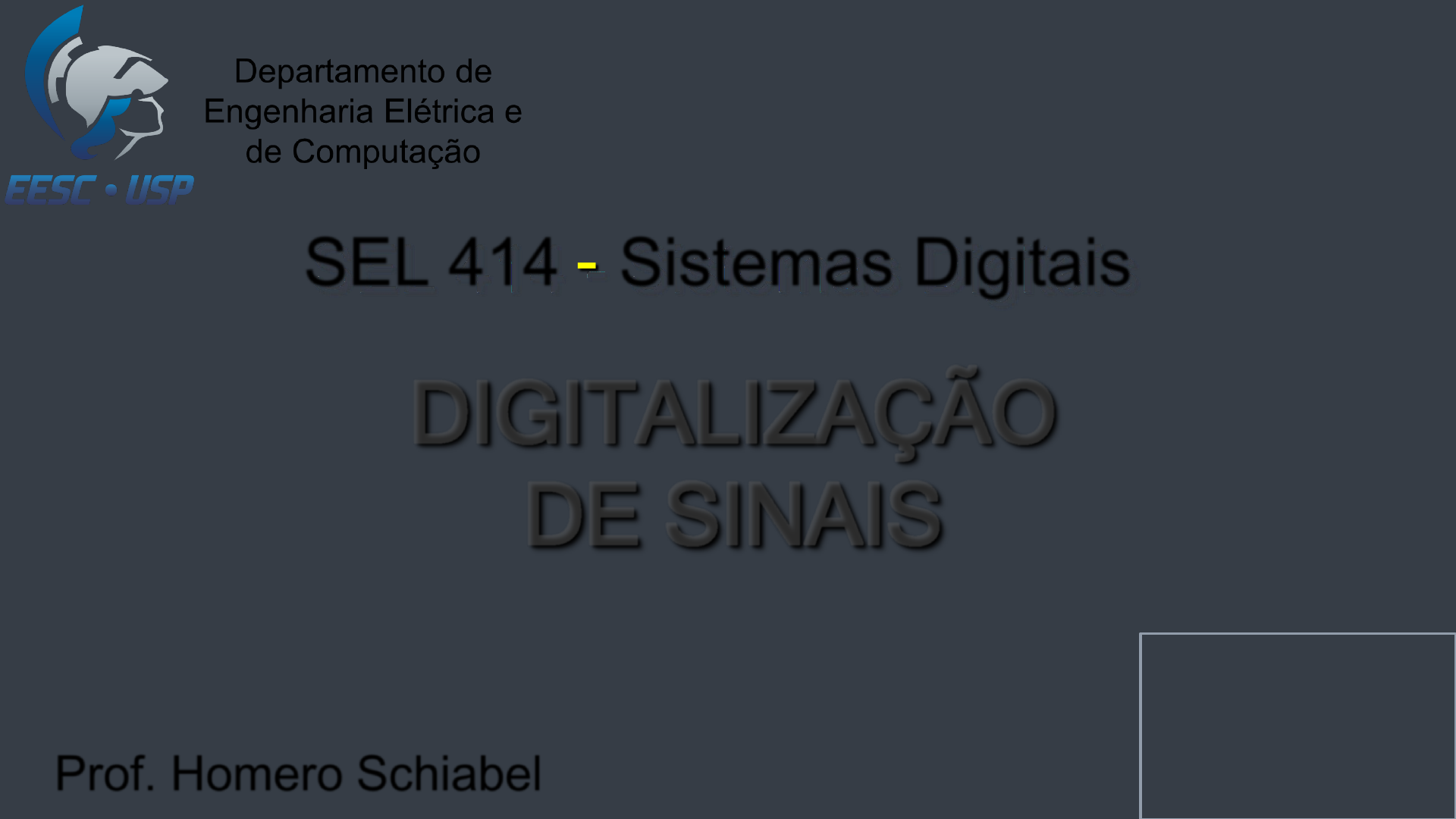 DIGITALIZAÇÃO DE SINAIS SEL 414 - Sistemas Digitais Prof. Homero Schiabel Departamento de Engenharia Elétrica e de Computação ANÁLISE DE ERROS EM CONVERSORES D/A-A/D SEL414 - Análise de erros em conversores Saída analógica 1. Erro de Off-set Entrada binária ideal com erro Saída binária Entrada analógica ideal com erro e - + V 0 V Saída Entrada ideal com erro erro Fundo de escala 2. Erro de Ganho SEL414 - Análise de erros em conversores Saída analógica Entrada binária ideal real Saída binária Entrada analógica ideal desvio máximo Saída binária Entrada analógica ideal LINEARIDADE INTEGRAL LINEARIDADE DIFERENCIAL CONVERSOR D/A CONVERSOR A/D 3. Erro de Linearidade SEL414 - Análise de erros em conversores Saída analógica Entrada binária ideal Não monotônico Saída binária Entrada analógica ideal Não monotônico 4. Perda de monotonicidade SEL414 - Análise de erros em conversores Saída binária Entrada analógica Perda de código 0111 1000 0000 0111 1000 1111 5. Erro de chaveamento (glitch) 6. Perda de código SEL414 - Análise de erros em conversores TEORIA DA AMOSTRAGEM Velocidade de conversão depende: SEL414 - Teoria da Amostragem V t tA V Em algum ponto do intervalo tA: da variação temporal do sinal analógico da precisão V = palavra binária gerada pelo conversor 1. INTRODUÇÃO 1. INTRODUÇÃO V t tA amostragem retenção tE tA tempo de abertura tE tempo de estabilização Sinal de entrada Sinal amostrado e retido Banda limite V V = erro máximo de conversão V = tA (dV/dt) Valor desejável SEL414 - Teoria da Amostragem Vi OSCILADOR Vo- + AMP. NÃO INVERSOR CHAVE ANALÓGICA C 2. AMOSTRADOR- RETENTOR (SAMPLE-HOLD) SEL414 - Teoria da Amostragem “SE UM SINAL CONTÍNUO, DE BANDA LIMITADA, TEM COMPONENTE ESPECTRAL DE FREQUÊNCIA MAIS ELEVADA IGUAL A FM, ENTÃO O SINAL ORIGINAL PODE SER RECUPERADO SEM DISTORÇÃO SE A FREQUÊNCIA DE AMOSTRAGEM FOR MAIOR OU IGUAL A 2 FM” 3. TEOREMA DA AMOSTRAGEM SEL414 - Teoria da Amostragem V t Pulsos de amostragem Sinal original Sinal amostrado e retido Aplicação do Teorema da Amostragem fAMOST >> 2 fSINAL SEL414 - Teoria da Amostragem V t Pulsos de amostragem Sinal original Sinal amostrado e retido fAMOST 2 fSINAL Perda de informação por subamostragem SEL414 - Teoria da Amostragem V t Pulsos de amostragem Sinal original Sinal amostrado e retido fAMOST < 2 fSINAL Perda de informação por subamostragem SEL414 - Teoria da Amostragem SEL414 - Teoria da Amostragem Apostila – p. 62: Final FIM