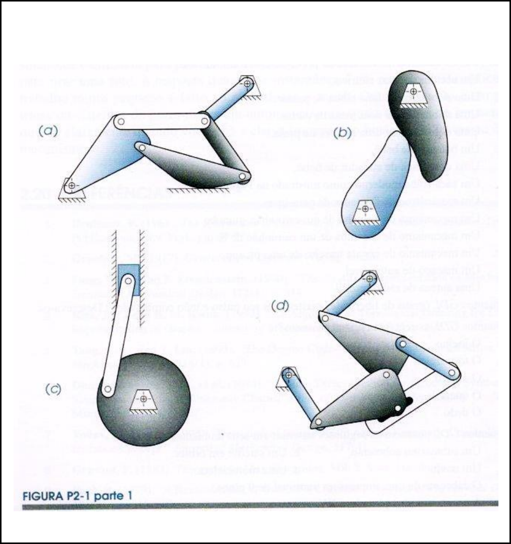 1 EXERCÍCIO 1: Calcule a mobilidade dos sistemas da Figura P2-1 parte 1 e parte 2. Em quais juntas você colocaria os atuadores? 2 Resp.: a) M = 0 e) M = 1 b) M = 1 f) M = 1 c) M = 1 g) M = 1 d) M = 3 h) M = 1 3 EXERCÍCIO 2: No mecanismo abaixo, deseja-se que o braço da grua atue na faixa 0o ≤ θ ≤ 90o. Determine: a) Os deslocamentos mínimo e máximo necessários do atuador; b) O almoxarifado da empresa tem um atuador com deslocamento mínimo de 450 mm e deslocamento máximo de 800 mm. É possível utilizar este atuador? Se não for possível utilizar este atuador, qual deveria ser a distância L0 para que se pudesse utilizar o atuador disponível? Resp.: a) Smin = 422 mm e Smax = 708,6 mm b) Não é possível utilizar. Para utilizar, 404,8 mm < L0 < 452,4 mm EXERCÍCIO 3: Determine as equações de posição e velocidade do mecanismo abaixo. 4 EXERCÍCIO 4: Determine a distância mínima que o veículo deve parar para que o portão não o atinja ao abrir e fechar. Resp.: 0,66 m EXERCÍCIO 5: Para o mecanismo da Figura P2-15, qual é o stroke (distância percorrida entre máximo e mínimo) da serra? Resp.: stroke = 157 mm 5 EXERCÍCIO 6: O mecanismo da figura abaixo tem O2A = 20 mm, AB = 50 mm, AC = 34 mm e o desnível entre O2 e B é de 10 mm. O ângulo da manivela O2A na posição mostrada é 34o e o ângulo BAC = 40o. Encontre ω3 (velocidade angular do corpo 3), a velocidade de A, a velocidade de B e a velocidade de C na posição mostrada para uma velocidade angular em O2 de 15 rad/s. Resp.: 3 = 25,1o XB = 61,8 mm 3 = 5,49 rad/s VA = -0,168 i + 0,249 j m/s VB = -0,284 m/s VC = -0,120 i + 0,068 j m/s