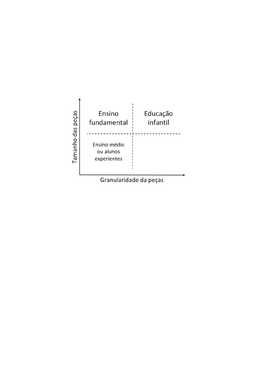 José Pacheco de Almeida Prado; Gustavo Morceli | 47 primeiro quadrante em quatro regiões e distribuir as três etapas da edu- cação básica como mostra a Figura 10. Assim, os kits com montagens mais complexas (peças pequenas com baixa granularidade) são mais adequados aos estudantes do ensino médio e os kits com montagens mais simples são adequados aos estudantes dos anos iniciais. Figura 10: Representação em um plano cartesiano dos tipos de peças estruturais Fonte: AUTORES Devemos considerar também que um kit de robótica educacional, de- pendendo de seus elementos estruturais, inevitavelmente favorece alguns tipos de montagens e dificulta outros, impondo assim um viés implícito nos tipos de construções que podem feitas durante uma atividade. Por exemplo, os kits LEGO MindStorms e ALPHA Mecatrônica são projetados para favorecer a construção de robôs móveis que interagem com o meio ambiente. Já o kit da empresa alemã Fischertechnik (Figura 11), favorece a criação de dispositivos mecatrônicos fixos com partes móveis e contro- ladas, por exemplo: uma roda gigante, um guindaste etc. 48 | Robótica e Processos Formativos Figura 11: Guindaste criado como Kit Fischertechnik Fonte: ARQUIVO DOS AUTORES É claro que é possível montar um robô móvel com o kit da Fischer- technik ou uma roda gigante com o Kit ALPHA Mecatrônica, mas o esforço na montagem neste caso é maior do que se fosse ao contrário. Sensores Os sensores permitem que o robô perceba o mundo a sua volta. Se- gundo a definição de de Maja J. Mataric (Mataric, 2014), podemos afirmar que, se um dispositivo mecatrônico não tiver sensores, ele não será consi- derado um robô. Historicamente falando os primeiros sensores adotados nos kits de robótica educacional foram os de contato e os de intensidade luminosa. Isso aconteceu porque esses sensores são simples do ponto de vista eletrônico, de baixo custo, fáceis de serem processados pelas unida- des de controle e simples de serem compreendidos pelos estudantes. Do ponto de vista pedagógico, os sensores ampliam as possibilidades de cria- ção e tornam os projetos muito mais interessantes e interativos para os estudantes. Robótica educacional: do conceito de robótica aplicada à concepção dos kits Gustavo Morceli 8F Sensores