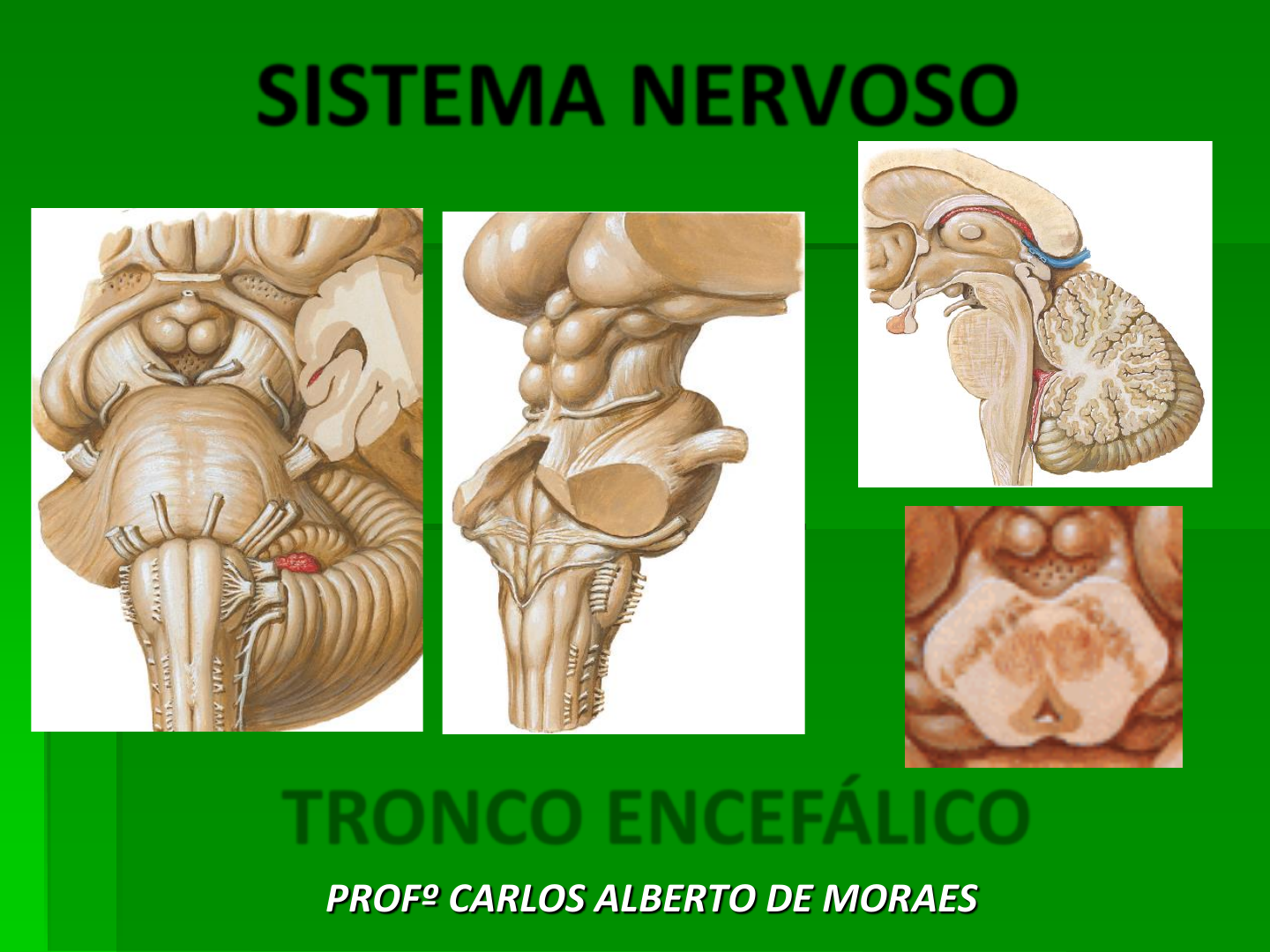 SISTEMA NERVOSO PROFº CARLOS ALBERTO DE MORAES TRONCO ENCEFÁLICO H E M I - E N C É F A L O Tronco Encefálico Tronco Encefálico Mesencéfalo Ponte Bulbo TRONCO ENCEFÁLICO ▪ Bulbo ou Medula Oblonga ▪ Forma de um cone ▪ Comunica-se: ▪ superiormente ponte ▪ inferiormente medula espinal ▪ Sulcos: ▪ Anteriormente fissura mediana anterior ▪ Superiormente sulco bulbopontino ▪ Estruturas bulbares: ▪ Pirâmides formada por um feixe compacta de fibras nervosas descendentes (áreas motoras do cérebro aos neurônios motores da medula espinal). ▪ Olivas grande massa de substância cinzenta (envolvidas na aprendizagem motora “velocidade e eficiência” ). **Decussação das pirâmides (ver sistema piramidal – trato corticospinal anterior e lateral) Vista anterior TRONCO ENCEFÁLICO ▪ Mesencéfalo: ▪ Interpõe-se entre a ponte e o cérebro ▪ Aqueduto do mesencéfalo (estreito canal): ▪ une III ao IV ventrículo ▪ Estruturas: ▪ Colículos superiores: visão (mov. dos olhos) ▪ Colículos inferiores. Audição (relé) ▪ Pedúnculos cerebral (ventral / anterior): ▪ Substância negra ▪ Neurotransmissor (dopamina) ▪ Síndrome de Parkinson ▪ James Parkinson, médico e paleontologista inglês (século XVIII) ▪Pedúnculos cerebral (ventral / anterior): ▪Substância negra ▪Neurotransmissor (dopamina) ▪Síndrome de Parkinson * tremores * rigidez dos músculos * dificuldade de caminhar * dificuldade de se equilibrar e de engolir * dificuldade de respirar ▪ James Parkinson, médico e paleontologista inglês (século XVIII) Vista anterior e posterior SISTEMA NERVOSO: CEREBELO Profº: CARLOS ALBERTO DE MORAES CEREBELO Órgão supra-segmentar Aspectos anatômicos: verme do cerebelo hemisférios cerebelares Funções: Manutenção do equilíbrio e da postura Controle do tônus muscular Controle dos movimentos voluntários Aprendizagem motora Cerebelo: Generalidades Cerebelo: Generalidades Cerebelo: Generalidades NÚCLEOS CEREBELARES Núcleo denteado * * Cerebelo: Organização dos hemisférios cerebelares REFERÊNCIAS GARDNER. E.; et al. Anatomia: estudo regional do corpo humano, 4.ed. Rio de Janeiro: Guanabara Koogan, 1988 KOPF-MAIER, Petra. Wolf - Heidegger: Atlas de Anatomia Humana. 5. ed. Rio de Janeiro: Guanabara Koogan, 2000. DRAKE, Richard L. et al. GRAYS: Anatomia Clínica para estudantes. Rio de Janeiro: Elsevier, 2005. DANGELO, José Geraldo; FATTINI, Carlo Américo. Anatomia Humana Sistêmica e Segmentar: para o estudante de medicina. 2. ed. São Paulo: Atheneu, 2005. NETTER, Frank H. Atlas de interativo de anatomia humana. : Novartis Medical Educacion, 1999. LENT, Roberto. Cem bilhões de neurônios? 2. ed. São Paulo: Atheneu, 2010. MACHADO, Angelo; HAERTEL, L. M. Neuroanatomia Funcional. 3. ed. São Paulo: Atheneu, 2013. SOBOTTA, J. Atlas de anatomia humana. 22. ed. Rio de Janeiro: Guanabara Koogan, 2008. THE END Slide 1: SISTEMA NERVOSO Slide 2 Slide 3: Tronco Encefálico Slide 4 Slide 5: TRONCO ENCEFÁLICO Slide 6 Slide 7: Vista anterior Slide 8 Slide 9 Slide 10 Slide 11 Slide 12: TRONCO ENCEFÁLICO Slide 13 Slide 14: Vista anterior e posterior Slide 15 Slide 16 Slide 17 Slide 18 Slide 19: Sistema nervoso: cerebelo Slide 20: CEREBELO Slide 21: Cerebelo: Generalidades Slide 22: Cerebelo: Generalidades Slide 23 Slide 24 Slide 25 Slide 26: NÚCLEOS CEREBELARES Slide 27 Slide 28 Slide 29 Slide 30: REFERÊNCIAS Slide 31