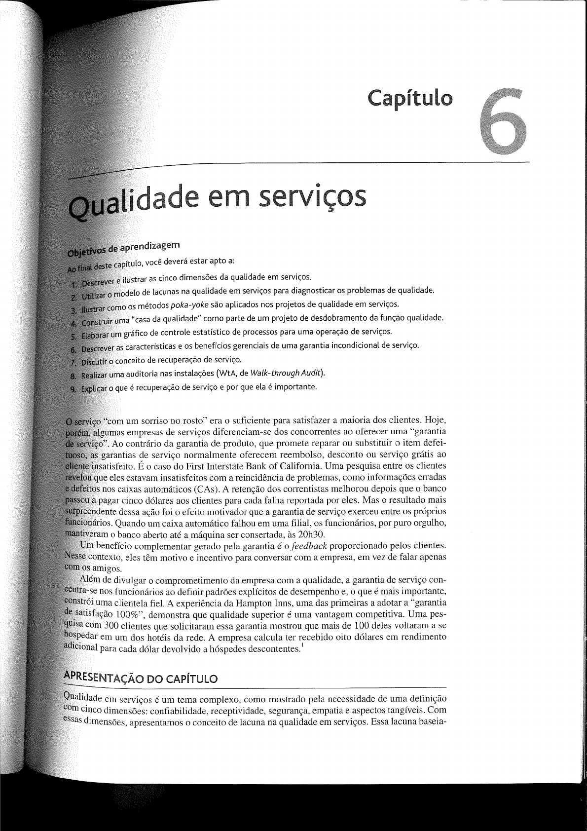 A qualidade começa com o projeto do sistema de prestação do serviço. Desse modo.