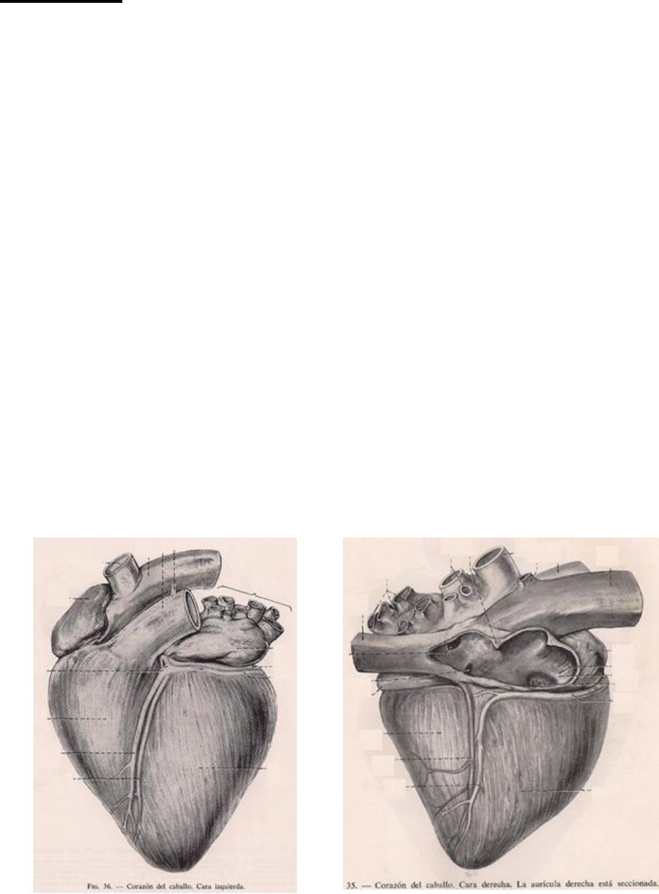 Roteiro de Atividades Práticas: Sistema Circulatório OBJETIVO: Identificar nos CORAÇÕES as estruturas listadas abaixo ÁTRIOS 1 Direito e 2 Esquerdo 3 Septo Interatrial 4 Aurícula Esquerda e 5 Aurícula direita 6 Músculos Pectiniformes 7 Veias Pulmonares 8 Veia Cava Cranial e 9 Veia cava caudal VENTRÍCULOS 10 Direito e 11 Esquerdo 12 Septo Interventricular 13 Valva Átrio Ventricular Direita (VAV direita) ou tricúspide 14 Valva Átrio Ventricular Esquerda (VAV esq) ou Bicúspide ou mitral 15 Aorta e 16 Valva Aórtica 17 Tronco Pulmonar e 18 Valva Pulmonar 19 Cordas Tendíneas 20 Músculos Papilares 21 Trabéculas cárneas SACO PERICÁRDICO 22 Pericárdio Fibroso 23 Pericárdio Seroso (epicárdio) ARTÉRIAS CORONÁRIAS 24 Ramo Circunflexo e 25 Ramo Descendente da Artéria Coronária Esq 26 Ramo Circunflexo e 27 Ramo Descendente da Artéria Coronária Dir Face Auricular (esquerda) Face Atrial (direita) Qual o nome da artéria indicada em 1 na figura abaixo? Resp:_____________________________________ A quais espécies pertencem os intestidos A, B, C e D representados na figura abaixo? Resp:_______________________________________ Identifique os ramos da AORTA ABDOMINAL na figura abaixo: 1- 2- 3- 4- 5- 6-