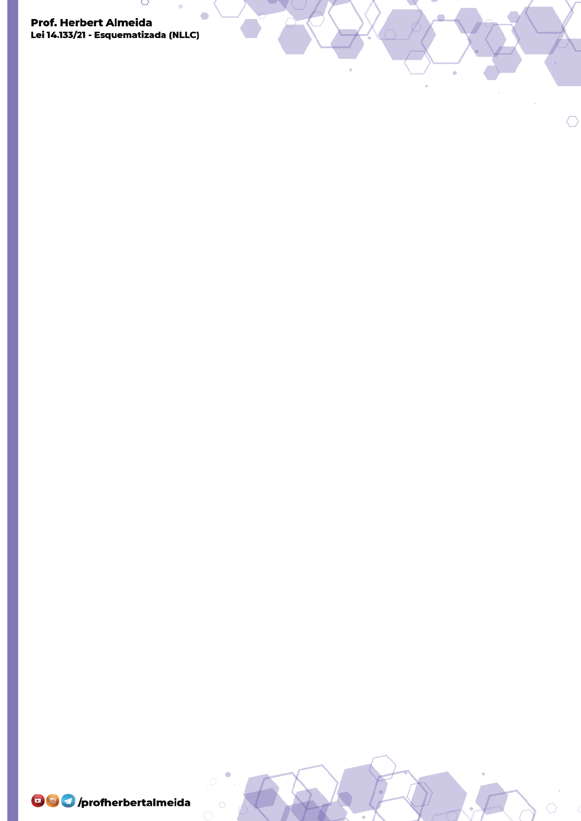 4 245 SUMÁRIO TÍTULO I DISPOSIÇÕES PRELIMINARES ............................................................................ 8 Capítulo I Do Âmbito de Aplicação desta Lei ............................................................................. 8 Capítulo II Dos Princípios ........................................................................................................ 15 Capítulo III Das Definições ...................................................................................................... 18 Capítulo IV Dos Agentes Públicos ............................................................................................ 31 TÍTULO II DAS LICITAÇÕES ............................................................................................ 37 Capítulo I Do Processo Licitatório ........................................................................................... 37 Capítulo II Da Fase Preparatória ............................................................................................. 48 Seção I Da Instrução do Processo Licitatório.............................................................................. 48 Seção II Das Modalidades de Licitação ....................................................................................... 64 Seção III Dos Critérios de Julgamento ........................................................................................ 79 Seção IV Disposições Setoriais ................................................................................................... 89 Capítulo III Da Divulgação do Edital de Licitação ..................................................................... 99 Capítulo IV Da Apresentação de Propostas e Lances............................................................. 101 Capítulo V Do Julgamento ..................................................................................................... 107 Capítulo VI Da Habilitação .................................................................................................... 111 Capítulo VII Do Encerramento da Licitação ........................................................................... 117 Capítulo VIII Da Contratação Direta ...................................................................................... 120 Seção I Do Processo de Contratação Direta ............................................................................. 121 Seção II Da Inexigibilidade de Licitação .................................................................................... 124 Seção III Da Dispensa de Licitação ............................................................................................ 132 Capítulo IX Das Alienações ................................................................................................... 150 Capítulo X Dos Instrumentos Auxiliares ................................................................................ 158 Seção I Dos Procedimentos Auxiliares ...................................................................................... 158 Seção II Do Credenciamento ..................................................................................................... 158 Seção III Da Pré-Qualificação .................................................................................................... 161 Seção IV Do Procedimento de Manifestação de Interesse ...................................................... 163 Seção V Do Sistema de Registro de Preços .............................................................................. 164 Seção VI Do Registro Cadastral ................................................................................................. 169 6 245 LEI DE LICITAÇÕES E CONTRATOS ADMINISTRATIVOS ▪ A competência para dispor sobre normas gerais de licitações e contratos é da União, nos termos do art. 22, XXVII, e do art. 37, XXI, da CF: art. 22 [...] XXVII – normas gerais de licitação e contratação, em todas as modalidades, para as administrações públicas diretas, autárquicas e fundacionais da União, Estados, Distrito Federal e Municípios, obedecido o disposto no art. 37, XXI, e para as empresas públicas e sociedades de economia mista, nos termos do art. 173, § 1°, III; art. 37 [...] XXI - ressalvados os casos especificados na legislação, as obras, serviços, compras e alienações serão contratados mediante processo de licitação pública que assegure igualdade de condições a todos os concorrentes, com cláusulas que estabeleçam obrigações de pagamento, mantidas as condições efetivas da proposta, nos termos da lei, o qual somente permitirá as exigências de qualificação técnica e econômica indispensáveis à garantia do cumprimento das obrigações. ▪ A competência trata apenas das “normas gerais”. Por isso, os estados, DF e municípios podem dispor sobre normas específicas, independentemente da delegação prevista no art. 22, parágrafo único da CF. Nesse caso, a única exigência é que os estados, o DF e os municípios observem o disposto nas normas gerais da União. ▪ A União também pode legislar sobre normas específicas de licitações, mas estas disposições apenas serão aplicáveis à própria União. ▪ Nos termos do art. 173, § 1º, III, da CF, compete à União elaborar o estatuto jurídico da empresa pública, da sociedade de economia mista e de suas subsidiárias que explorem atividade econômica de produção ou comercialização de bens ou de prestação de serviços. Tal estatuto consta na Lei 13.303/2016, que dispõe, entre outras coisas, sobre o regime de “licitação e contratação de obras, serviços, compras e alienações, observados os princípios da administração pública” específico para as empresas estatais. ▪ Durante o período de dois anos, a contar da publicação oficial da nova legislação, as disposições d