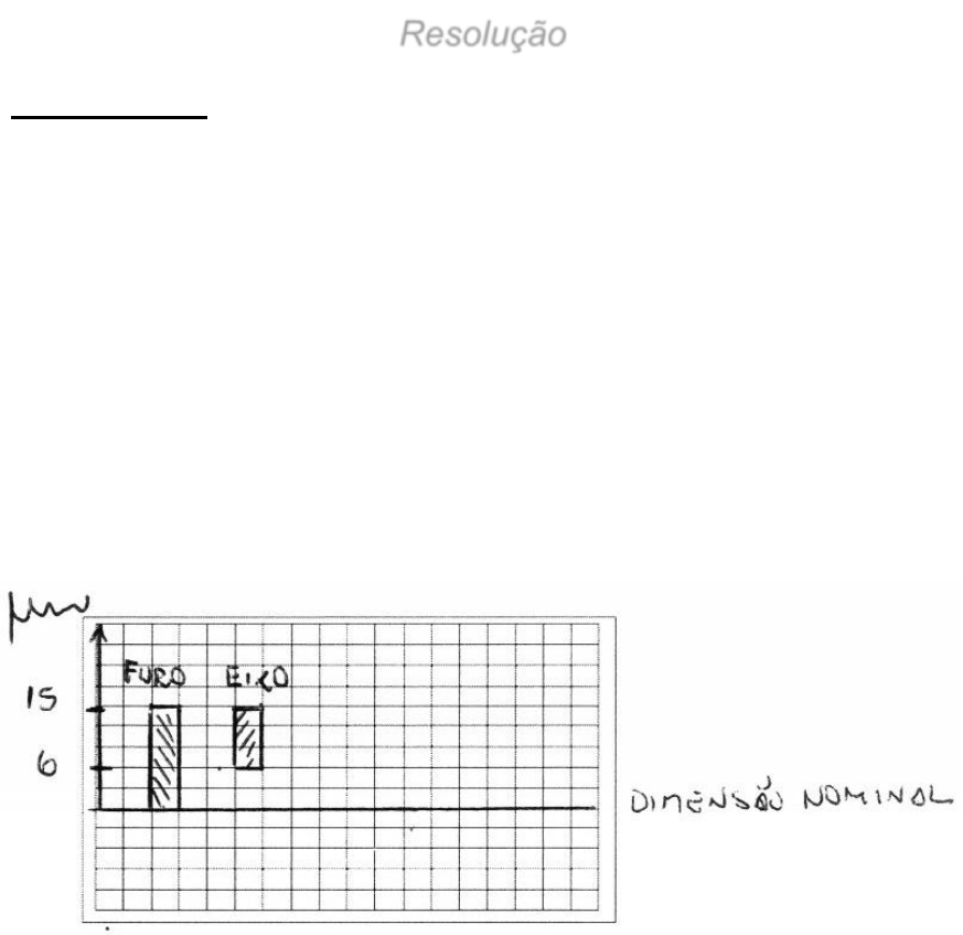 PMR 3103- Introdução ao Projeto de Máquinas Exercícios de Tolerância Dimensional e Ajustes Prof. Dr. Luiz Eduardo Lopes Prof. Dr. Gilberto Francisco Martha de Souza Resolução EXERCÍCIO 1 Φ8H7m6 Sistema Furo Base Φ8H7 Desvio fundamental H= 0 𝝻m Qualidade de trabalho IT7 → campo de tolerância 15𝝻m +0,015 +0,000 Φ8m6 Desvio fundamental: m= 6 𝝻m Qualidade de trabalho IT6 → campo de tolerância 9𝝻m +0,015 +0,006 Conforme a representação abaixo, tem-se: Tipo de ajuste: INCERTO Interferência Máxima = (maior eixo) – (menor furo) = 15 – 0 = 15𝝻m Folga máxima = (maior furo) – (menor eixo) = 15 – 6 = 9𝝻m 8 8 EXERCÍCIO 2 2.1) Φ15H7g6 Sistema Furo Base Furo Φ15H7 Desvio fundamental H= 0 𝝻m Qualidade de trabalho IT7 → campo de tolerância 18 𝝻m +0,018 +0,000 Eixo Φ15g6 Desvio fundamental: g= - 6 𝝻m Qualidade de trabalho IT6 → campo de tolerância 11𝝻m −0,006 −0,017 Conforme a representação abaixo, tem-se: Tipo de ajuste: FOLGADO Folga Máxima = (maior furo) – (menor eixo) = 18 - (-17) = 35 𝝻m Folga Mínima = (menor furo) – (maior eixo) = 0 - (-6) = 6 𝝻m 15 15 2.2) Φ15H7n6 Sistema Furo Base Furo Φ15H7 Desvio fundamental H= 0 𝝻m Qualidade de trabalho IT7 → campo de tolerância 18 𝝻m +0,018 +0,000 Eixo Φ15n6 Desvio fundamental: n= + 12 𝝻m Qualidade de trabalho IT6 → campo de tolerância 11𝝻m +0,023 +0,012 Conforme a representação abaixo, tem-se: Tipo de ajuste: INCERTO Interferência Máxima = (maior eixo) – (menor furo) = 23 – 0 = 23 𝝻m Folga máxima = (maior furo) – (menor eixo) = 18 – 12 = 6 𝝻m EXERCÍCIO 3 Φ12H7m6 Sistema Furo Base Furo Φ12H7 Desvio fundamental H= 0 𝝻m Qualidade de trabalho IT7 → campo de tolerância 18 𝝻m +0,018 +0,000 Eixo Φ12m6 Desvio fundamental: m= + 7 𝝻m Qualidade de trabalho IT6 → campo de tolerância 11𝝻m +0,018 +0,007 15 15 12 12 Conforme a representação abaixo, tem-se: Tipo de ajuste: INCERTO Interferência Máxima = (maior eixo) – (menor furo) = 18 – 0 = 18𝝻m Folga máxima = (maior furo) – (menor eixo) = 18 – 7 = 11𝝻m EXERCÍCIO 4 4.1) Φ10F7h6 Sistema Eixo Base Furo Φ10F7 Desvio fundamental F= 13𝝻m Qualidade de trabalho IT7 → campo de tolerância 15𝝻m +0,028 +0,013 Eixo Φ10h6 Desvio fundamental: h= 0 𝝻m Qualidade de trabalho IT6 → campo de tolerância 9𝝻m +0,000 −0,009 Conforme a representação abaixo, tem-se: 12 12 Tipo de ajuste: FOLGADO Folga Máxima = (maior furo) – (menor eixo) = 28 - (-9) = 37𝝻m Folga Mínima = (menor furo) – (maior eixo) = 13 - (0) = 13𝝻m 4.2) Φ10P7h6 Sistema Eixo Base Furo Φ10P7 Desvio fundamental P= - 15𝝻m para valores de qualidade de trabalho IT8 ou superior. Para valores de qualidade de trabalho inferiores, o desvio fundamental deve ser corrigido por um fator ∆ informado na norma NBR 6158. No caso de IT7 o valor de ∆ é 6𝝻m O desvio fundamental P é: -15 + 6 = -9𝝻m Qualidade de trabalho IT7 → campo de tolerância 15𝝻m −0,009 −0,024 Eixo Φ10h6 Desvio fundamental: h= 0 𝝻m Qualidade de trabalho IT6 → campo de tolerância 9𝝻m +0,000 −0,009 Conforme a representação abaixo, tem-se: Tipo de ajuste:INTERFERÊNCIA Interferência Máxima = (maior eixo) - (menor furo) = 0 - (-24) = 24𝝻m Interferência Mínima = (menor eixo) – (maior furo) = -9 - (-9) = 0𝝻m 10 10