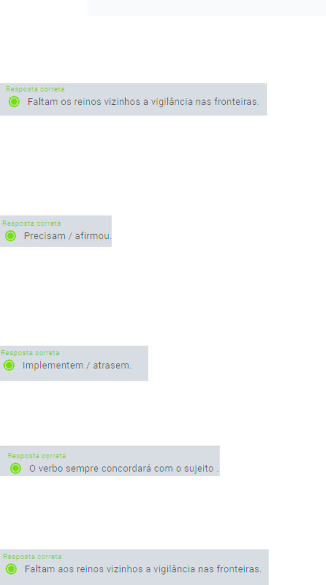 Gramática - Avaliação Final - Módulo II Indique qual alternativa apresenta erro na concordância verbal: Assinale a alternativa que preencha corretamente a seguinte oração: “Os Estados Unidos não ______ se preocupar com o estoque de vacina. Foi o presidente quem ______ isso.” Assinale a alternativa que preencha corretamente a seguinte oração: “A auditora garantiu que analisará o caso, mesmo que __________ novas medidas que _______ o processo.” Qual é a regra geral da concordância verbal? Indique qual alternativa apresenta erro na concordância verbal: