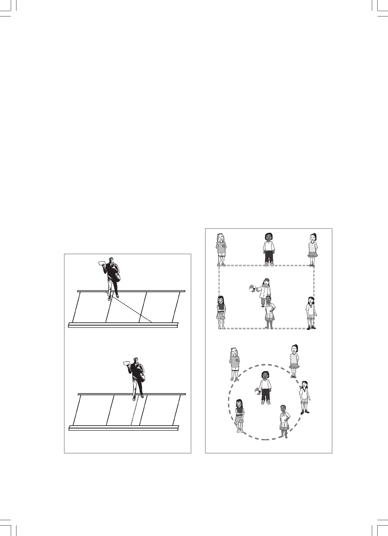 Matemática e suas Tecnologias Ensino Médio 88 Capítulo IV Nossa realidade e as formas que nos rodeiam A sabedoria popular Em nosso dia-a-dia, realizamos uma grande quantidade de ações que estão apoiadas em conhecimentos de vários tipos. Tudo é feito de um modo tão natural que nem identificamos o conhecimento que estamos usando. Vejamos algumas situações nas quais isso ocorre: Se você tiver que atravessar uma rua movimentada, qual o melhor trajeto: o (1), ou o (2)? Imagine-se, agora, organizando um jogo em que você é encarregado de receber uma bola e passá- la a cada um dos demais jogadores. Em qual das posições, (1) ou (2), representadas abaixo, você distribuiria as pessoas para participarem do jogo? Solução 1 Solução 2 Figura 1 Solução 1 Solução 2 Figura 2 Capítulo IV — Nossa realidade e as formas que nos rodeiam 89 Nossa experiência nos diz que, em cada caso, a solução (2) parece ser a mais conveniente, não é? Se alguém nos pedir para justificar essas escolhas, diremos que estamos usando a “sabedoria popular” e não pensaremos mais no caso. De fato, ao longo da história da Humanidade, foram surgindo, no dia-a-dia dos diversos povos, problemas que eles tiveram que solucionar. As soluções encontradas foram sendo passadas de pai para filho, formando essa “sabedoria” que todos nós possuímos. Alguns escritos que ficaram dos povos antigos, muitas vezes, descrevem alguma situação e a solução encontrada, justificando apenas que “fazendo assim, dá certo”. Com o tempo, esses conhecimentos da “sabedoria popular” foram sendo organizados pelos estudiosos, que procuraram explicações lógicas para cada uma das situações e de suas soluções. Desse modo, foi-se organizando um conjunto de conhecimentos, que até hoje continua sendo ampliado e aprofundado. Nas situações apresentadas, podemos dizer que os conceitos usados são de natureza geométrica. A Geometria é uma parte da Matemática que estuda as figuras ⎯ sua forma, elementos e propriedades. Vamos, então, analisar cada uma das situações apresentadas, pensando nos aspectos geométricos envolvidos. • Na primeira situação, a intenção do pedestre é fazer o menor caminho possível, para ficar menos exposto ao movimento dos veículos. Podemos pensar em um desenho simplificado — um modelo — que irá nos ajudar a pensar melhor na situação: As duas beiradas das calçadas representam retas paralelas e a menor distância entre elas é o segmento (pedaço) de reta perpendicular às duas. Figura 3 Matemática e suas Tecnologias Ensino Médio 90 Nessa explicação, falamos em “retas paralelas” e em “retas perpendiculares”. Vamos entender melhor o que isso significa: Duas retas que estão em um mesmo plano podem ser: Paralelas, se não se encontram; Perpendiculares, se elas se encontram em um ponto, separando o plano em quatro regiões iguais (ou seja, se elas formam quatro ângulos retos); Oblíquas, se elas se encontram em um ponto, separando o plano em regiões diferentes duas a duas (ou seja, formam dois ângulos maiores que o ângulo reto e dois, menores). Figura 4 Capítulo IV — Nossa realidade e as formas que nos rodeiam 91 Repare nas características das faixas de pedestres sinalizadas nas ruas muito movimentadas: encontram-se em posição perpendicular às guias das calçadas e as listas que as formam são paralelas entre si. Além do exemplo das ruas, faixas de pedestres e calçadas, você pode encontrar muitos outros objetos da nossa realidade que poderiam ser representados por retas paralelas. Pense em alguns exemplos. Do mesmo modo, você pode observar modelos de retas perpendiculares na rua, no seu trabalho, em sua casa, como, por exemplo, nos batentes das portas. Procure outros exemplos. Vejamos como fica a situação dos jogadores na 1ª solução do problema da página 88. Novamente, vamos usar um modelo da situação (uma figura simplificada), que nos permite analisar melhor o que está ocorrendo. A figura formada é um retângulo. Observe que os pontos assinalados se encontram a distâncias diferentes do centro. Os jogadores mais prejudicados são os que se encontram nos vértices P, Q, R, S do retângulo, pois estes são os pontos mais distantes do centro. • Na segunda situação, em que se organiza um jogo com bola, é mais justo que todas as pessoas estejam à mesma distância do jogador central, para terem facilidades iguais de pegar e jogar a bola. Por isso, a melhor escolha é que suas posições formem uma circunferência, como na 2ª solução do problema apresentado na página 88. 1 Desenvolvendo competências Repare que, no retângulo, podemos observar lados perpendiculares: o lado PQ e o lado QR, por exemplo, formam um par de segmentos de retas perpendiculares. Indique outros pares de lados perpendiculares no retângulo. No retângulo, também podemos observar pares de lados que são paralelos. Quais são eles? Figura 5 Figura 6 Matemática e suas Tecnologias Ensino Médio 92 Vamos pensar em uma outra situação de nossa realidade. Você já prestou atenção à forma de um poço ou de uma panela com tampa que fecha bem justinho? Tente descobrir um motivo para a escolha da forma desses objetos ser sempre a da opção 2 e não a da opção 1. - No caso de o poço (ou da panela) ter forma de um prisma de base quadrada, sua tampa terá a Um bom argumento para justificar essa escolha pode ser verificado por você. Pegue duas embalagens de produtos quaisquer, uma com a 1ª forma apresentada e outra com a 2ª forma, sem uma das tampas. Você deve construir uma tampa para cada embalagem, apoiando-a sobre um papel grosso, desenhando o contorno da parte a ser tampada e depois recortando-o. Agora, tente guardar cada tampa dentro da sua respectiva caixa, sem dobrá-la nem amassá-la. Você deve ter notado que apenas a tampa da 1ª embalagem pode ser guardada nas condições do problema, isto é, sem ser dobrada nem amassada. Isso quer dizer que s