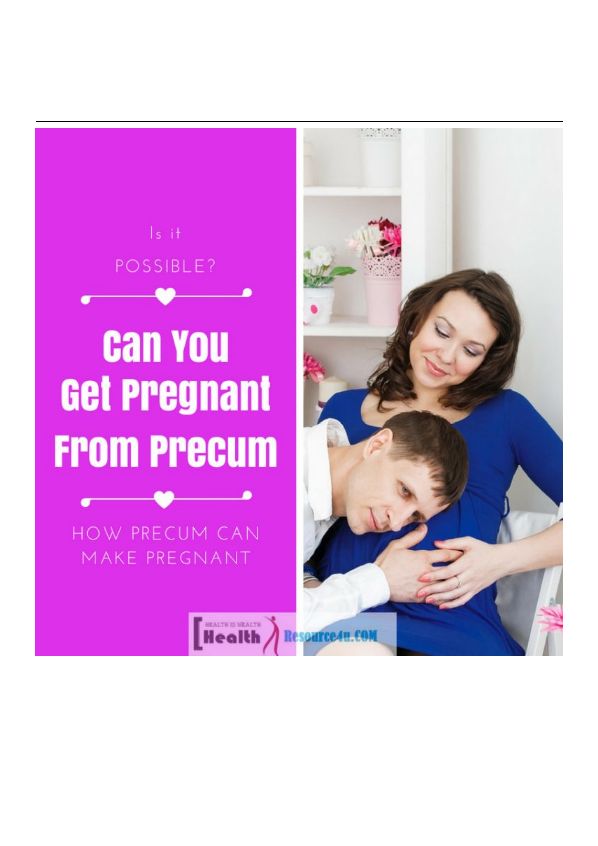 1/7 Como o Precum ou a pré-ejaculação podem engravidar O tema da gravidez de Precum é uma grande questão de debate e de vários estudos até o momento, prova-se que existem algumas chances de engravidar com o precum fluido. O Precum é o fluido pré- ejaculado que sai durante o período de intimidade e antes da ejaculação exata do centavo. Esta é uma grande questão de preocupação e conscientização entre a seção adolescente de pessoas que estão dispostas a ficar íntimas com seu parceiro sem qualquer risco de engravidar. Para eles, o pré- cum ou método de pré-ejaculação é útil, pois eles podem desfrutar de sua vida sexual em uma mente livre de risco. https://www.healthresource4u.com/fertility-drug-help-getting-pregnant.html 2/7 Neste processo, a penetração exata não acontece toda vez, apenas o apego externo acontece entre os parceiros e a ejaculação é feita sobre o estômago ou as coxas. Embora seja seguro, também podem existir chances de que o fluido ejaculado possa ser rolado para a superfície vaginal e pode entrar dentro dele. Nesta situação, se o fluido pré-ejaculado ou ejaculado contém espermatozóides e se apegar ao óvulo, a fertilização é possível. Precum é uma maneira segura para ter relações sexuais sem usar métodos contraceptivos. Por isso, é considerado como uma maneira de se livrar da gravidez indesejada. No entanto, para se beneficiar disso, o parceiro masculino precisava ser muito alerta e atento. Ele precisa realizar a retirada instantânea de centavos caso contrário, se os fluidos forem inseridos dentro do canal da vagina, então existem mudanças na gravidez. Precum ou pré-ejaculação é a condição em que um fluido sai do centavo durante o curso de sexo. Este fluido não é um fluido ejaculado que vem no final ou a conclusão do processo sexual que permanece cheio de esperma. O precum pode ser o fluido de ejaculação esquerda do último sexo que permanece deixado e sai no próximo apego sexual. O precum de alguns homens contém poucas quantidades de espermatozóides, mas nem todos os precums dos homens contêm o esperma. No entanto, se o fluido pré-ejaculação do seu parceiro está contendo espermatozóides e está ligado ao canal vaginal, então existe um alto risco de gravidez. Abaixo, discutimos algumas condições primárias ou situações em que um precum pode fazer você engravidar. Precum ou pré-ejaculação é feito por muitos parceiros sexuais sem entrar exatamente no centavo e este fluido é ejaculado para fora da área genital. Mas se você está fazendo o sexo nu, então você tem que Como o Precum pode engravidar Se não houver uma parede de algodão ou pano https://www.healthresource4u.com/effective-home-abortion-remedies.html https://www.webmd.com/men/what-is-premature-ejaculation#1 3/7 cuidar de algumas coisas, pois é totalmente um processo sexual inseguro e uma distração mental de momento única pode levá-lo grávida. Sob o método de sexo nude sem penetração se a pré-ejaculação for feita perto da área vaginal ou no estômago do parceiro sexual feminino, em muitos casos, é visto que ele rola para baixo mais rapidamente em direção à superfície vaginal e se este fluido contém um esperma, então ele pode fazer você engravidar se ficar preso ao óvulo. Para evitar todos esses problemas, você deve usar ou manter uma roupa de algodão acima da superfície genital para o lado mais seguro, para que, mesmo por erro, o fluido não entre dentro do canal vaginal e faça você engravidar. Se você ainda não está pronto para a gravidez, mas quer desfrutar do prazer sexual, especialmente se você é um adolescente, então para melhor proteção sempre use roupas íntimas, mesmo que a penetração não esteja acontecendo. Em alguns casos, verificou-se que ambos os parceiros usaram roupas íntimas, mas como a ejaculação foi feita na área vaginal (coberta com roupa de baixo), o líquido entra cruzando a superfície do algodão e muitas vezes atinge o canal vaginal. Portanto, certifique-se de que a ejaculação esteja acontecendo muito longe da superfície genital, de modo que, mesmo por engano, o fluido rico em esperma não pode entrar no canal vaginal. Existem muitos parceiros sexuais que aplicam o processo de abstinência ou retirada durante a penetração para evitar gravidez indesejada. A retirada ou penny de retirada é feita exatamente no momento em que a pré-ejaculação ou ejaculação está prestes a acontecer. Este processo é aplicado quando os parceiros não estão usando quaisquer outros métodos ou formas de prevenção da gravidez. Este processo é seguro se você é inteligente o suficiente para lidar com isso com prudência, mas mesmo um pequeno erro, como puxar tarde ou metade da ejaculação é feito dentro do canal vaginal, então ele pode fazer você engravidar se o esperma no fluido entra for fundido com o óvulo que é fertilizado depois. O sucesso do processo de abstinência para evitar a gravidez está na consciência ativa do parceiro masculino. Ele deve perceber exatamente no momento em que a pré-ejaculação ou a ejaculação estão prestes a acontecer. Há muitos homens que não percebem o momento exato da ejaculação ou às vezes se percebem sobre a ejaculação, mas como eles eram lentos no centavo para puxar o processo para que o esperma entrasse no canal vaginal. Embora o proteja de uma gravidez indesejada, seu relatório de sucesso é de apenas 20% em todo o mundo. Na maioria dos casos, os parceiros que foram tolerados no método de abstinência de sexo engravidam dentro de um ano apenas sem qualquer desejo de engravidar tão cedo. Portanto, esta não é uma maneira completamente segura de sexo, mesmo o precum é ejetado para fora da área genital. Como este processo envolve penetração, é mais provável que o parceiro não se conscientize quando a pré-ejaculação está acontecendo e se este precum consiste em espermatozóides, então você pode engravidar 