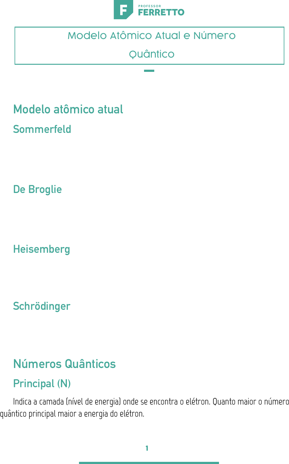 1 Modelo atômico atual Sommerfeld De Broglie Heisemberg Schrödinger Números Quânticos Principal (N) Indica a camada (nível de energia) onde se encontra o elétron. Quanto maior o número quântico principal maior a energia do elétron. Modelo Atômico Atual e Número Quântico 2 Secundário ou azimutal (l) Indica a subcamada (subnível de energia) onde se encontra o elétron. Um nível de energia N é formado por N subníveis. Entre os átomos conhecidos apenas os quatro primeiros subníveis podem conter elétrons. Subnível s 3 Subnível p Subnível d Magnético ( ml ) Indica o orbital onde se encontra o elétron. 4 Spin (S) Indica o sentido de rotação do elétron. Valores:-1/2 e +1/2