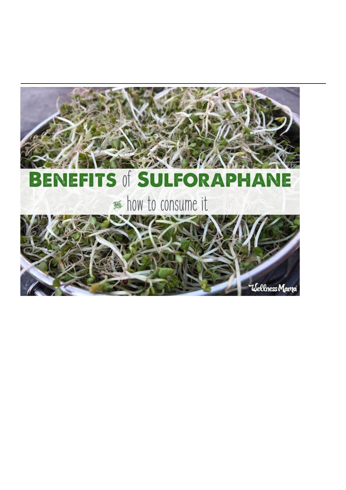 1/9 Benefícios do Sulforafano: como Lenta Envelhecimento, combate o câncer e mais Há uma substância chamada sulforafano (também chamada SFN) encontrada em vegetais crucíferos e especialmente em brotos de brócolis. É bem estudado para ser anticancerígeno, antimicrobiano, anti- inflamatório, neuroprotetor, e pode até proteger contra o envelhecimento e diabetes. - A melhor parte? Está disponível a partir de uma comida simples e barata que você pode cultivar em seu balcão... brotos! Quer pular a ciência e começar a cultivar brotos de brócolis? Confira este tutorial para cultivar brotos de brócolis em sua cozinha para centavos. Mas se você está interessado na ciência, estas são as muitas razões pelas quais o sulforafano é incrível... (Nota: Se comer brotos de brócolis não soa atraente para você, tenha coragem! Continue lendo para descobrir outra maneira de obter os benefícios.) O que é Sulforaphane? A resposta curta: https://wellnessmama.com/health/broccoli-sprouts/ 2/9 Sulforafano (SFN para abreviar) é um potente composto antibacteriano e combate ao câncer encontrado em vegetais crucíferos e brotos. A resposta longa: Sulforafano é criado quando a enzima mirosinase transforma o glucorafaninaglululato em sulforafano. Como a mirosinase e a glucorafanina são encontradas em diferentes partes da planta, essa mudança acontece quando a planta é danificada (por mastigação, mistura, corte, etc.), permitindo que os dois compostos se misturem e reagem. Os brotos jovens de brócolis e couve-flor são fontes particularmente boas de glucorafanina. Mais especificamente, o sulforafano faz parte de um grupo de fitoquímicos de combate a doenças à base de plantas chamados isotiocianatos. No corpo, o sulforafano estimula a produção de enzimas importantes que neutralizam os radicais livres. Como a inflamação e os radicais livres são culpados por muitos tipos de câncer, isso é um grande problema. Os isotiocianatos também parecem bloquear certas enzimas que ativam o câncer no corpo, criando uma dupla proteção. É por isso que o sulforafano é bem estudado por sua capacidade de: ajudar a proteger contra vários tipos de câncer (incluindo cólon, próstata, mama, pele, pulmão, estômago e muito mais) reduzir o risco de doença neurodegenerativa, doença ocular, problemas respiratórios, doenças cardíacas e outros problemas, também provavelmente devido aos efeitos de redução dos radicais livres Apoiar o cérebro e o sistema digestivo. Quais alimentos contêm sulforafano? Sulforafano é encontrado em vegetais crucíferos, incluindo brócolis, couve-flor, couve de Bruxelas, repolho, couve, couve, bok choy, couve, nabo, nabo, couve, rúcula, rabanete e mostarda. Os brotos de brócolis têm a maior concentração de sulforafano. Todos os vegetais verdes servem a um propósito importante e você terá dificuldade em encontrar qualquer médico ou especialista em saúde que diga que comer vegetais verdes não é uma boa ideia (a poucos problemas de saúde muito específicos). Na verdade, existem poucas coisas que todos os especialistas em dieta parecem concordar, a importância de comer vegetais é uma delas (juntamente com o sono e reduzir o estresse). Os vegetais crucíferos têm muitas propriedades promotoras da saúde, e o sulforafano é mais uma razão para isso! Dizer apenas que os brotos de brócolis contêm sulforafano é uma simplificação excessiva (embora eu vou ficar com isso para o resto do post por causa da simplicidade). Mais precisamente, os vegetais de Brassica contêm mirosinase, o que ajuda a quebrar os glucosinolatos como a glucorafanina em formas utilizáveis de isotiocianatos, incluindo sulforafano. Tanto a mirosinase quanto a glicosrafana estão presentes em vegetais crucíferos e especialmente em brotos de brócolis. Quando mastigamos, cortamos ou misturamos brotos crus, eles combinam e criam 3/9 sulforafano. Em outras palavras, os brotos de brócolis contêm os compostos necessários para criar sulforafano. Benefícios do Sulforafano Este potente fitoquímico é bem estudado para: 1. Promoção da desintoxicação 2. O reforço do cérebro 3. Ajudar o corpo a criar compostos de combate ao câncer 4. Apoiando a função cardíaca saudável 5. Aumentar a glutationa como um ativador de Nrf2 6. Promoção da perda de peso 7. retardar o envelhecimento ativando as proteínas de choque térmico 8. aumentar a função hepática 9. Reduzir a inflamação e a dor 10. Parar e reverter a perda de cabelo. Agora, vamos quebrar cada um desses benefícios para entender o porquê: 1. Desoxificante Sulforafano em brotos de brócolis aumenta os mecanismos naturais de desintoxicação do corpo de várias maneiras. Como um antioxidante indireto, aumenta a capacidade antioxidante das células, em vez de apenas fornecer antioxidantes (como astaxantina e antioxidantes semelhantes). Sulforafano ativa as vias Nrf2 e ARE (mais sobre estes abaixo). Isso leva ao aumento da glutationa celular no corpo. Como a glutationa é o antioxidante mestre, isso tem benefícios de longo alcance para o corpo. 2. Aumento do cérebro Sulforafano também é muito, muito bom para o cérebro. É considerado um nootrópico (substância de aumento do cérebro) porque tem a capacidade de atravessar a barreira hematoencefálica. Estudos estão em andamento em humanos depois que estudos com camundongos mostraram que esse composto reduziu os sintomas depressivos e a ansiedade. Outros estudos descobriram que aumenta o crescimento de neurita. Isso significa que pode ajudar os neurônios danificados a reparar após a lesão ou o envelhecimento. Além disso, estudos randomizados, duplo-cegos, controlados por placebo em humanos, mostraram que o sulforafano pode ter a capacidade de melhorar os escores de verificação de comportamento autista em 34%! Os estudos também mostraram melhora na interação social e na comunicação verbal em pacientes com transtorno do espectro do autismo. 3. Protegendo