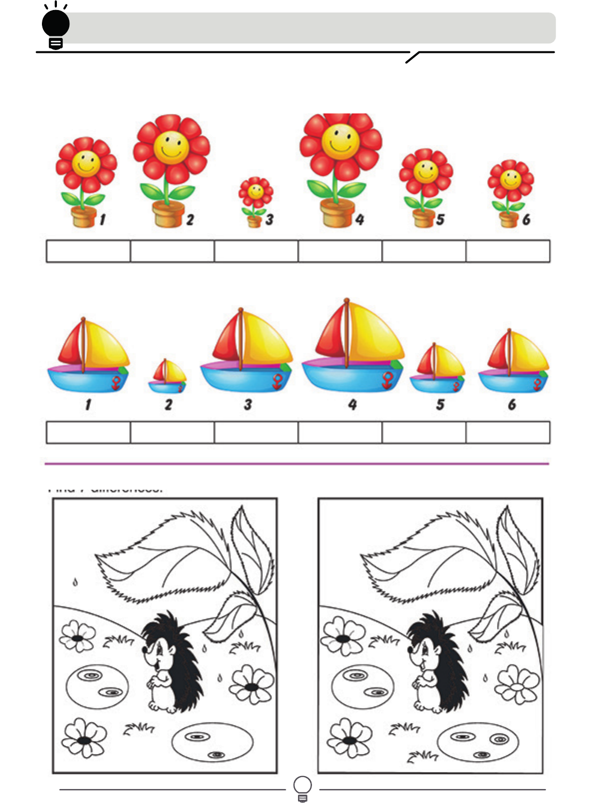 Encontre 5 diferenças!Ordene as fotos de acordo com seu tamanho. Comece com a menor imagem. Percepção visual Encontre 5 diferenças!Jogo dos 7 erros
