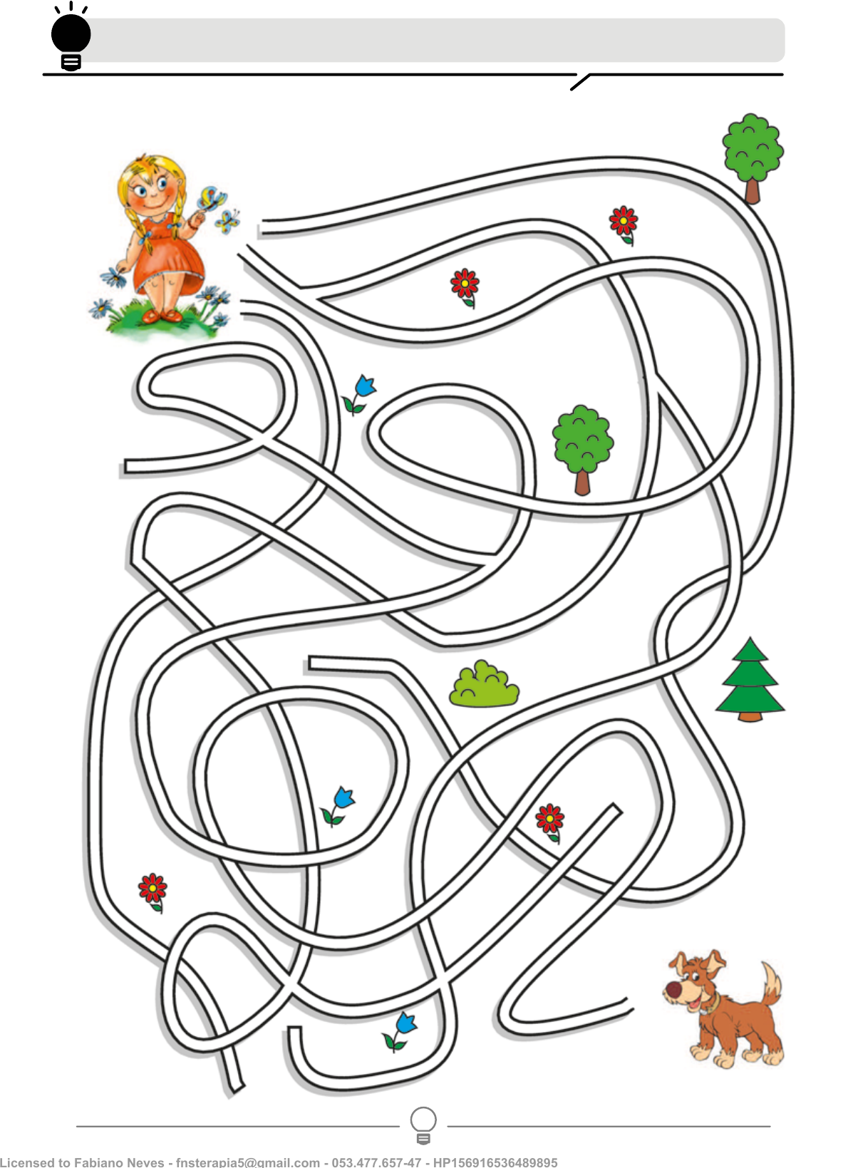 Lógica, concentração, reconhecimento Ajude a menina encontrar o cachorro. Licensed to Fabiano Neves - fnsterapia5@gmail.com - 053.477.657-47 - HP156916536489895
