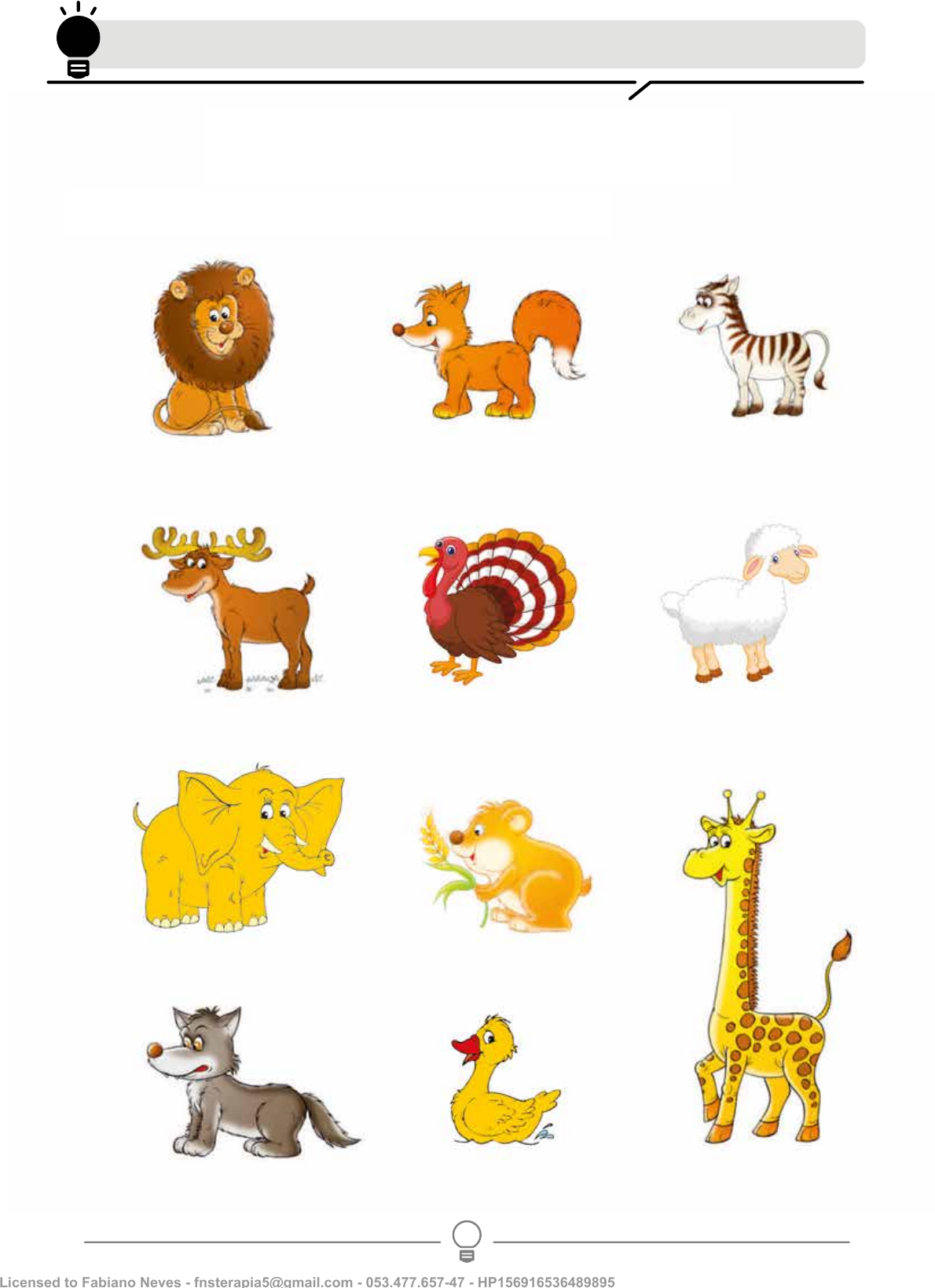 Encontre e circule todos os animais selvagens. Animais selvagens Lógica, concentração, reconhecimento Licensed to Fabiano Neves - fnsterapia5@gmail.com - 053.477.657-47 - HP156916536489895