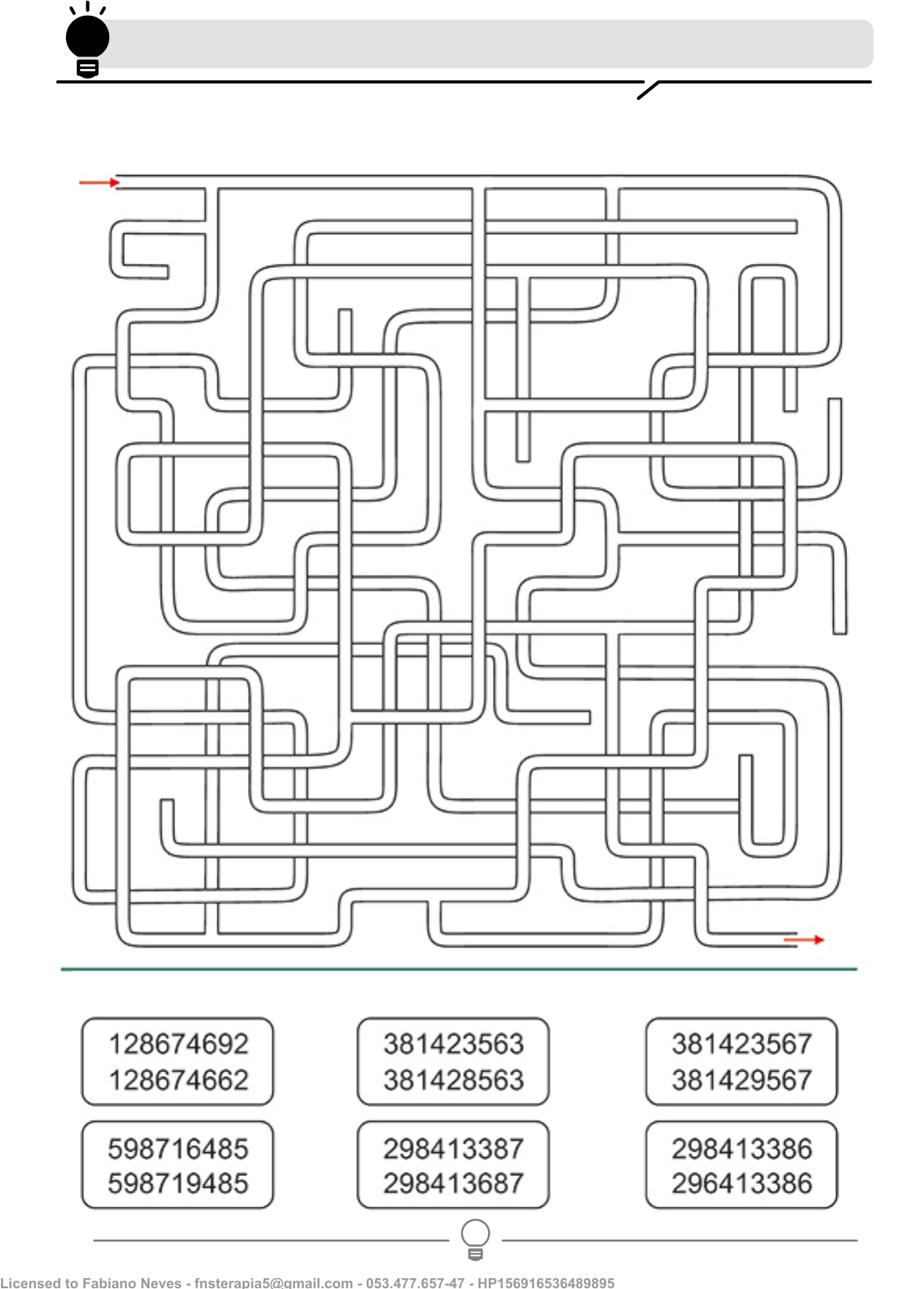 Encontre 5 diferenças!Encontre o caminho através do labirinto! Encontre 5 diferenças!Encontre a diferença entre duas séries de números em cada caixa. Labirinto Licensed to Fabiano Neves - fnsterapia5@gmail.com - 053.477.657-47 - HP156916536489895