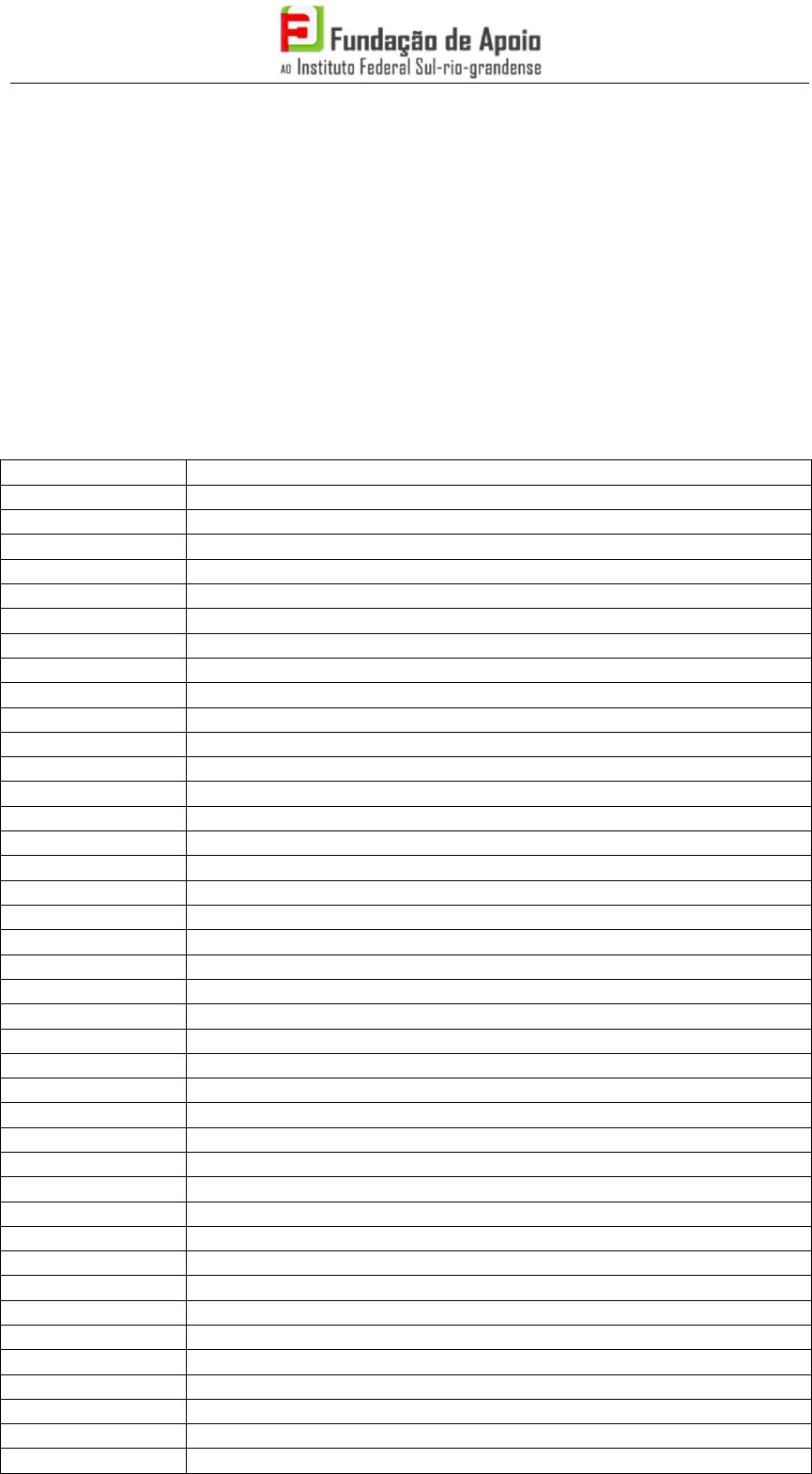 EDITAL FAIFSul Nº 62/2022 SELEÇÃO DE ALUNOS PARA O CURSO DE QUALIFICAÇÃO PROFISSIONAL DE ELETRICISTA DE SISTEMAS DE ENERGIAS RENOVÁVEIS HOMOLOGAÇÃO INSCRIÇÃO TURMA MANHÃ: Número Inscrição Nome 1 Bárbara Quevedo Barbosa 3 Patrick darlan vasconcelos alves 8 Renan marta 9 Lenit Maria da Rosa pedroso 12 Rian Pimentel da Cruz 13 Richard Pail Barbosa 16 Charles Diovane Duarte Canez 17 Gabriel Kohler Vellar 18 Maria Cristina Pereira dos Santos 22 Santiago sacharuk de Freitas 23 Lucas menezes jorge 24 Yuri lemos Rita 25 Edna Maria Medina 26 Gustavo Pires Silva 28 Diego Fernandes Oliveira 31 Raniele da Silva Silva 32 Lucas Voigt Borges 34 Raniele da silva silva 37 Carlos Alberto Huber de Almeida 38 Juan Silva Cardoso 39 Patrick Darlan Vasconcelos Alves 40 Jeferson Braga Damero 43 Carla Feminino Ferreira 44 Carla Ferreira 48 Gabriela Donini Acosta 52 Murilo Nunes Vitória 55 Gabriel Dutra Specht 56 Victor da Silva Barbosa 60 Diogo Dias da Cunha 61 Denilson Pereira Dias 62 Marcelo francisco bonow 63 Patrick Franco da Costa 64 Gabriel Amaral dos Santos 65 Luciano Boeira Costa 66 João Amaro Lucas Batista 67 Dariel Batista da Silva 69 Fabrício Godinho Gadret 70 Guimell da Silva Scheunemann 71 Jesirrel Alencar Pereira 75 Gabriel Oliveira De Ávila 77 Antônio Marcos Silva da Silva 78 Patrick Amaral Fonseca 83 Eder elias de freitas ribeiro 84 Andrei Gomez Caetano 88 Vitória Martins dos Santos 89 Guilherme Bittencort Duarte 91 Hudson Lima Dias 93 Nathaniele Pereira Silveira 94 Pedro Alves Coelho 96 Félix Alves Rodrigues 97 Willian Pereira Pollnow 99 Eric Lopes Xavier 100 Silvio Cesar Furtado Spiering 102 Cristian Cesar Cardoso Cunha 103 Gabriel Mallüé Maciel 104 Carlos Henrique Saraiva Roldão 106 Kely Machado Oliveira 107 Richard Soares Machado 110 Ana Paula Oliveira Schumacher 111 Michel de Moura Fonseca 113 Valentine Nobre Soares 114 Valentine Nobre Soares 118 Matheus Garcia Martins 120 Wilmar Hamon Veiga Neto 121 Marco Antônio Machado Azambuja 122 Leandro gorim Alves 125 gabriel lopes de freitas sousa 129 Karoline da silva rodrigues 130 Gabriel Pereira de Mattos 132 Izabel Maciel 133 Jeferson S. da Silva 134 Matheus Alves 135 Bruno Henrique Borges Luz 136 Miguel celestino lucardo 138 Marcelo Ricardo Nunes Lemes 139 Igor de Medeiros da Silva 140 Fabio Dias Batistone 141 Igor de Medeiros da Silva 142 Claudio da silva junior 144 Caiane Oliveira Leite 146 Amanda Rodrigues Souza 148 Tiago Barcelos Cardoso 149 luã nobre da rosa 150 Moises Domingues da silva 151 Luã nobre da rosa 152 Jesum Wrague dos Santos 153 gerson silva 154 Pierre Cardoso Valadao 155 Claison Brasil Dias 159 Carlos Alexandre Belloni da Cruz 160 Andrey Alves Souza 163 Ivan Almeida Gomes 164 rafael fernandes pacheco 165 Ritchelli Teixeira Duarte 167 Larissa elert blanke 168 Sandi da Silva montes 169 Gabriel ferreira medeiros 173 Jane Moura de Souza 174 Wendell couto Ávila 176 Zamira Letícia Rossales Soares Fiss 177 Guilherme Alves 181 Wellington de Sousa dos santos 182 Leonardo Berneira da Rosa 184 Cláudio Lenon Lúcio Davila 187 Vagner Roberto Gomez da Silva 188 Willian Pereira Pollnow 189 Lee haney balhego vieira 190 Cristiane Lima dos Santos 191 Elizandra dos santos pagani 192 Lucas Pereira Lima 193 Yan Rodrigues Amaro Galarce 197 Renan Behling Bohlke 198 Tiago dos Santos Rezende 200 Meriane Nornberg dos Santos 201 Lucas Pereira Lima 202 Rodrigo Marques Xavier 205 Lucas Marques Xavier 206 Bruna ferreira souza 207 Vinicius Etges Silveira 211 Tainá cavalheiro 213 Bruno Cortez Bierhals 214 Dionat 215 Marcio Lisandro Rodrigues Alves 217 Germano Luís Aguirre dos Santos 218 Otávio Furtado das Neves 219 Douglas Alonso Bermudez 220 Matheus Vieira Villar de Oliveira 224 Filipe Dias Roll 226 Jean Pierre Valim freitas 227 Josué Corrêa da Silva TURNA TARDE: Numero Inscrição Nome 2 Luis Filipe Pinheiro volz 4 Leonardo Oliveira de Oliveira 5 Juan blank gottinari 6 Guilherme Gauterio Graboski 7 Adi Garcia da Silva 10 Beatriz de moura cortes 11 Michel de Moura Fonseca 14 luis eduardo saraiva martins 15 Eduardo Bederode dos Santos 19 Igor Baad Coelho 20 Michael Gabriel Alves de LIMA 21 Olavo Antônio de Almeida Pereira 27 Maria Alice Farias da Silva Amaral 29 Filipe Rodrigues Borchardt 30 Taissa Ávila 33 Andressa Lucas Gouveia 35 Marcos Corrêa Perez 36 Taissa Ávila Lourenço 41 Danilo da Cruz Espirito Santo 42 Lucas Rafael Pedroso de Oliveira 45 Carolina Clasen Souza 46 Karine Oliveira 47 Ademar Martins Leal Júnior 49 Camila de barros cecere 50 Eduarda Peixoto de Oliveira 51 Ingrid Katherrine Correa Maia Abrahan 53 Elias heres lemoes 54 Sandro da luz Pereira 57 Jaqueson Borba 58 Inácio Da Rosa Machado 59 rafael costa barreto 72 Eduardo Madeira dos Santos 73 Bruno Bastos Duarte 74 Richard Felipe Moura Rico 76 Edson andre petit rodrigues 79 Catia Elena Maciel Cascaes 80 Pamela da Rosa Goulart 81 Tiago Moura Tarouco 82 eduardo da silva 85 Gustavo José Barcella MEtzen 86 Sérgio Moacir Rocha Pires 87 Luciano Lauffer Nunes 90 Maicon luerce vargas 92 Saimon Ferreira Antunes 95 Érico Alves Duarte 98 Ubirajara Rossales Goncalves 101 Ygor Mendieta Teixeira 105 Marcelo de Castro Gonçalves 108 Valdeci Quintana Cardozo 109 Daniel Maurell Marques 112 Ricardo Fernandes Mathias 115 Denis Leandro da Rosa Moraes 116 João Vitor Nornberg dos Santos 117 Rafael Junqueira Moro 119 Wesley Bugs 123 Gabriel Oliveira da Silva 124 Adriano Garcia Batista 126 Rafael Camacho Costa 127 Samantha silveira de souza 128 Igor Damé Morales 131 Bruna de Liz Neitzke Mackedanz 137 Jesum Wrague dos Santos 143 Filipe Garcia Camacho 145 Wesley Corrêa Gonçalves 147 Paulo Henrique Peixoto da Cunha 156 Maica Araújo Colares 157 Carolina Schiavon Pich 158 jair francisco machado goulart 161 Wellington luis coelho ribeiro 162 Wendel juliano latorre silveira 166 Jeferson cunha Gonçalves 170 João Paulo dos Santos Simão 171 Rodrigo Borges Dos Santos 172 Guilherme Fonseca Aguiar 175 jose carlos oliveira machado 178 Micael Lopes dos Santos 179 Alisson Duarte