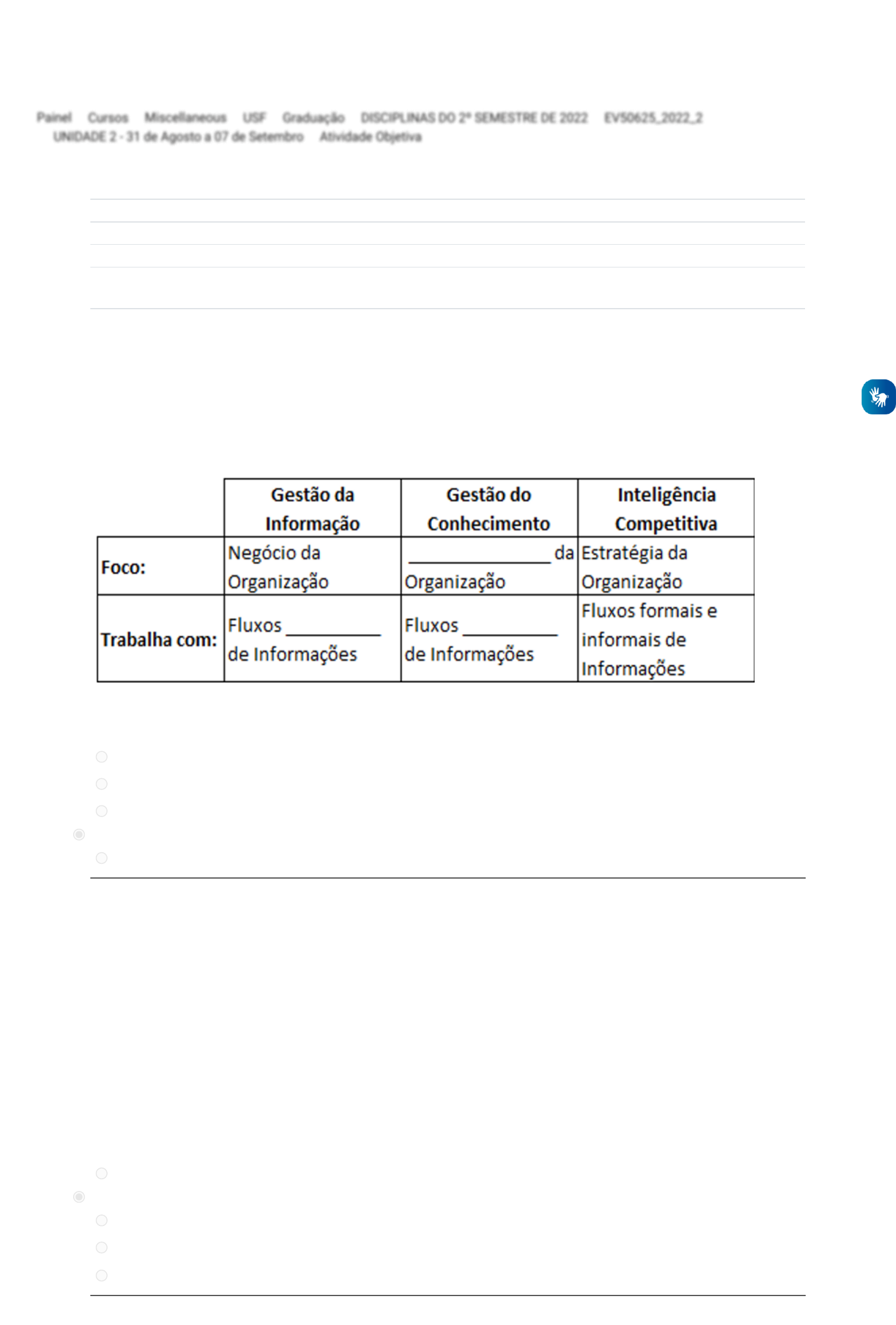 PainelPainel / CursosCursos / MiscellaneousMiscellaneous / USFUSF / GraduaçãoGraduação / DISCIPLINAS DO 2º SEMESTRE DE 2022DISCIPLINAS DO 2º SEMESTRE DE 2022 / EV50625_2022_2EV50625_2022_2 / UNIDADE 2 - 31 de Agosto a 07 de SetembroUNIDADE 2 - 31 de Agosto a 07 de Setembro / Atividade ObjetivaAtividade Objetiva Iniciado em Quarta-feira, 7 Set 2022, 21:19 Estado Finalizada Concluída em Quarta-feira, 7 Set 2022, 22:04 Tempo empregado 45 minutos 15 segundos Avaliar 1,50 de um máximo de 1,50(100%) Questão 1 Questão 2 "Um sistema de informações pode ser caracterizado como uma tecnologia intelectual porque afeta a organização das funções cognitivas do homem: a coleta, o armazenamento e a análise de informações assim como atividades de previsão, concepção, escolha, decisão" (Petrini, 1998, p.14). Isso pode ser aplicado à gestão da informação, na gestão do conhecimento e à inteligência competitiva. O quadro abaixo estabelece relações entre os conceitos de informações, conhecimento e inteligência competitiva integrando os conceitos. Assinale a alternativa que preenche corretamente as lacunas. Escolha uma opção: Conhecimento; linear e informais. Inteligência competitiva; formais e informais. Capital intelectual; linear e sistêmico. Capital intelectual; formais e informais. Inteligência competitiva; linear e sistêmicos. Quando falamos de previsões baseadas em séries temporais queremos entender como a demanda se comporta ao longo do tempo. Sobre séries temporais, a�rma-se: I. Tendência: é o movimento gradual a curto prazo II. Sazonalidade: são variações cíclicas da demanda III. Variações irregulares: resultantes de fatores recorrentes IV. Variações randômicas: tratadas pela média É correto a�rmar que: Escolha uma opção: I e III estão corretas II e IV estão corretas I e IV estão corretas Apenas I está correta Apensas II está correta https://salaonline.usf.edu.br/my https://salaonline.usf.edu.br/course/index.php https://salaonline.usf.edu.br/course/index.php?categoryid=1 https://salaonline.usf.edu.br/course/index.php?categoryid=2 https://salaonline.usf.edu.br/course/index.php?categoryid=11 https://salaonline.usf.edu.br/course/index.php?categoryid=18 https://salaonline.usf.edu.br/course/view.php?id=8129 https://salaonline.usf.edu.br/course/view.php?id=8129#section-3 https://salaonline.usf.edu.br/mod/quiz/view.php?id=355658 Questão 3 Questão 4 Os Métodos Qualitativos são utilizados quando não há dados históricos disponíveis e sua percepção é baseada no conhecimento empírico de quem fará a previsão, ou seja, de sua experiência vivida, intuição e na observação de fatos, considerando os altos executivos do mercado e especialistas no assunto desejado. Os dados são subjetivos e geralmente são mais trabalhosos do que os métodos quantitativos. Para tanto, possui alguns métodos. A metodologia que de acordo com Martins e Laugeni (2005), é um grupo de pessoas, que se mantém no anonimato, responde um questionário elaborado sobre algum problema, possibilitando que, com as respostas dos especialistas, seja gerada uma previsão de demanda, assim é entregue o relatório ao coordenador do levantamento, que, por sua vez, tabula as respostas e as retorna para os participantes, refere-se ao seguinte método: Escolha uma opção: Método Analogia Histórica. Método Delfhi. Média Móvel Ponderada. Método Pesquisa. Método Opinião de Executivos. A organização se propõe a praticar ações estratégicas de crescimento e de desenvolvimento, buscando a diversi�cação de negócios, aquisição de outras empresas, fusões, parcerias, e com isso o ambiente organizacional interno cresce na motivação. (...) avalie as asserções a seguir e a relação proposta entre elas. I. A adoção dessas ações estratégicas se torna necessária em organizações com diversidade de atividades e como uma forma de competir mais diretamente com seus concorrentes, buscando assim de�nir ações estratégicas especi�cas para seus objetivos de negócio. PORQUE II. A adoção dessas ações estratégicas não trará impacto diretamente na Gestão de Pessoas gerando aumento do quadro de pessoal, seleção de pro�ssionais com maiores níveis de quali�cação, programas de treinamento e desenvolvimento, programas de recompensas e reconhecimentos, alterações salariais, promoções, mudanças na própria cultura organizacional. A respeito dessas asserções, assinale a opção correta: Escolha uma opção: A asserção I é uma proposição falsa, e a II é uma proposição verdadeira. As asserções I e II são proposições falsas. As asserções I e II são proposições verdadeiras, mas a II não é uma justificativa correta da I. A asserção I é uma proposição verdadeira, e a II é uma proposição falsa. As asserções I e II são proposições verdadeiras, e a II é uma justificativa correta da I. Questão 5 Questão 6 A diferença entre a produção puxada e a empurrada, além do grau de incerteza, está na capacidade de produção e no estoque. Na programação empurrada, a produção normalmente é feita conforme a capacidade total, procurando maximizar mão de obra e máquinas. Por outro lado, o risco de sobrar ou faltar estoque na cadeia é maior, uma vez que todo planejamento é feito baseado em projeções futuras. Com base no texto acima, avalie as asserções a seguir e a relação proposta entre elas. I. No modelo puxado, a produção é feita com base nos pedidos dos clientes, o que leva ao desa�o de efetuar o agrupamento e sequenciamento da produção conforme os pedidos. PORQUE II. A con�abilidade na cadeia de suprimento deve ser maior, pois não pode haver interrupção de produção por qualquer motivo para não deixar de atender ao pedido do cliente. A respeito dessas asserções, assinale a opção correta: Escolha uma opção: A asserção I é uma proposição falsa, e a II é uma proposição verdadeira. As 