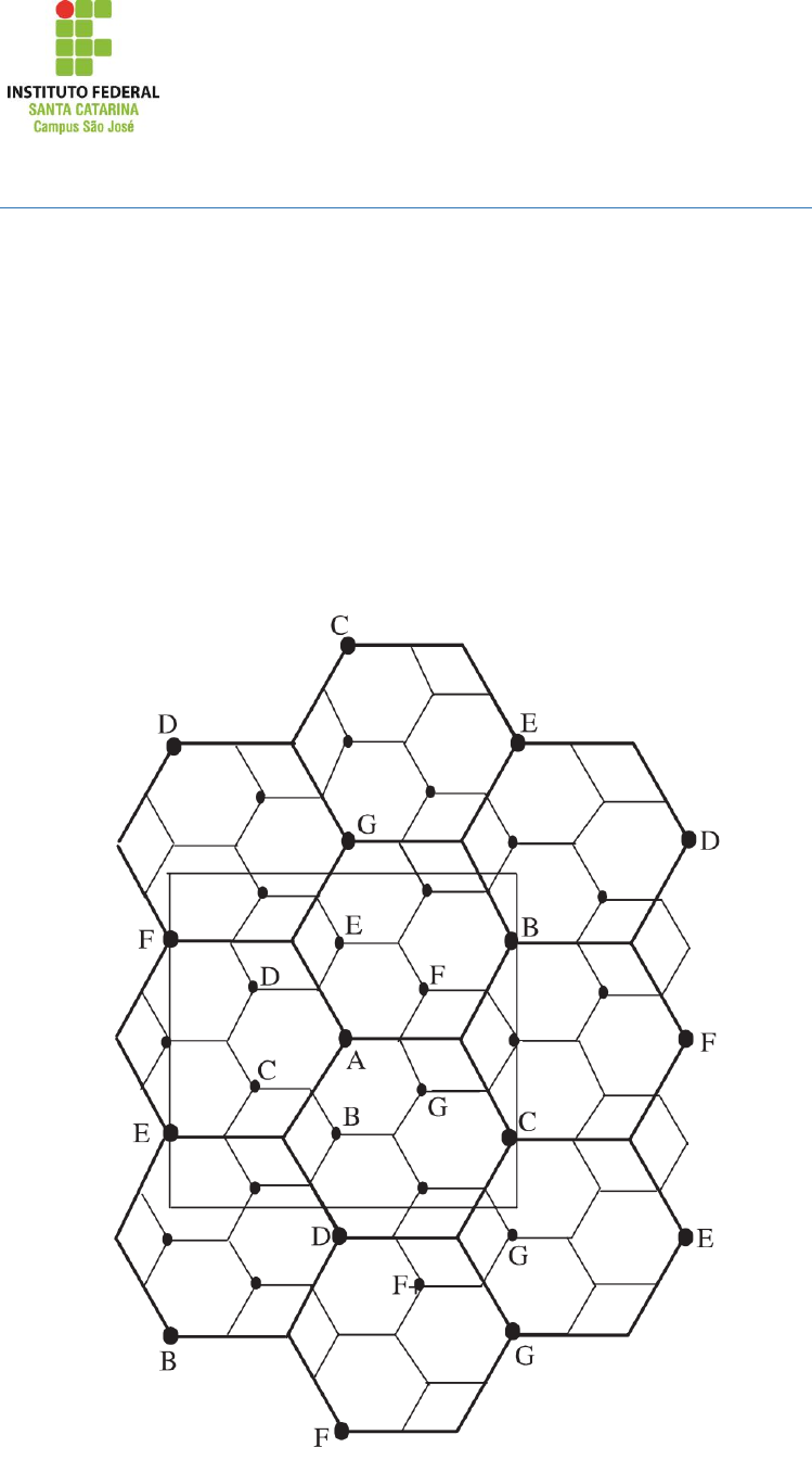 Curso Técnico Integrado em Telecomunicações CMS60808 – Princípios de Telecomunicações Professor: Bruno Fontana da Silva 2015-1 Exemplos – Divisão Celular e Setorização (Telefonia Celular) (RAPPAPORT, 2002 - Exemplo 3.8) Considere a Figura ao lado. Assuma que cada ERB utiliza 60 canais, independente do tamanho da célula. Se cada célula original possui um raio de 1 km e cada microcélula possui um raio de 0.5 km, encontre o número de canais contidos em uma área quadrada de 3 km × 3 km em volta do ponto A sob as seguintes condições: (a) sem o uso de microcélulas; (b) quando as microcélulas rotuladas na Figura são utilizadas; (c) se todas as ERBs originais são substituídas por microcélulas. Assuma que na as células na borda do quadrado estão contidas no seu interior. Figura 1 - Ilustração de divisão celular no interior de um quadrado de 3 km × 3 km ao redor da ERB A. Curso Técnico Integrado em Telecomunicações CMS60808 – Princípios de Telecomunicações Professor: Bruno Fontana da Silva 2015-1 Solução: (a) sem o uso de microcélulas Um raio de célula de 𝑅𝑐 = 1 km implica que os lados dos hexágonos maiores também tem 1 km de comprimento. Para cobrir um quadro de 3 𝑘𝑚 × 3 𝑘𝑚 centralizado na ERB A, é necessário cobrir 1,5 km (1.5 vezes o raio do hexágono) em todas as direções a partir da ERB A, como se vê na Figura 1. Nessa Figura, vemos que essa área contém 5 ERBs. Já que cada ERB possui 60 canais, o número total de canais sem divisão celular é 5 × 60 = 300 canais. (b) Com o uso de microcélulas conforme mostrado na Figura 1, Na Figura, a ERB A está rodeada por 6 microcélulas. Portanto, o número total de ERBs na área do quadro considerado é de 5 + 6 = 11 ERBs. Já que cada ERB possui 60 canais, o número total de canais será igual a 11 × 60 = 660 canais. Isso é um aumento de capacidade de 2.2 vezes em relação ao caso (a). (c) Se todas as estações rádio-base forem substitupidas por microcélulas, Da Figura 1, vemos um total de 5 + 12 = 17 ERBs dentro da região do quadro considerado. Já que cada ERB possui 60 canais, o número total de canais será de 17 × 60 = 1020 canais. Isso é um aumento de capacidade de 3.4 vezes em relação ao caso (a). Teoricamente, se todas as células possuem metade do raio da célula original, o aumento de capacidade se aproximaria de 4 vezes. (RAPPAPORT, 2002 – Exemplo 3.9) Considere um sistema celular no qual as ligações duram em média 2 minutos e a probabilidade de bloqueio não deve ser maior que 1%. Assuma que todo assinante realiza 1 ligação por hora, em média. Se há um total de 395 canais de tráfego para um sistema com reuso de N = 7 células por cluster, haverá por volta de 57 canais de tráfego por célula. Assuma o sistema de chamadas bloqueadas liberadas, para que o bloqueio seja descrito pela distribuição Erlang B. Da Carta Erlang B, pode-se encontrar que um sistema não setorizado (antenas omnidirecionais) pode suportar 44.2 Erlang ou 1326 ligações por hora. Empregando uma setorização de 120∘, haverá apenas 19 canais por setor de antena (57/3 canais 𝑝𝑜𝑟 antenas). Para mesma probabilidade de bloqueio e média de ligações, pode- se encontrar pela distribuição Erlang B que cada setor consegue atender um tráfego de 11.2 Erlang ou 336 ligações por hora. Como cada célula consiste de 3 setores, isso atende uma capacidade por célula de 3 × 336 = 1008 ligações por hora, o que representa 24% de decréscimo quando comparado ao caso não setorizado. Portanto, a setorização reduz a eficiência do sistema trocalizado ao melhorar a relação 𝑆𝐼𝑅 para cada usuário do sistema. Pode-se provar que utilizando setores de 60∘ melhora a relação 𝑆𝐼𝑅 ainda mais. Neste caso, o número de interferências do primeiro anel é reduzido de 𝑖0 = 6 para 𝑖0 = 1. Isso resulta numa 𝑆𝐼𝑅 = 29 dB para um sistema de reuso 𝑁 = 7 e permite a mudança para o reuso de 𝑁 = 4. É claro, utilizando seis setores por célula reduz a eficiência da troncalização e aumenta o número de handoffs necessários ainda mais. Se o sistema não setorizado é comparado com o caso de seis setores, a degradação da eficiência de troncalização é de 44% (mostre como um exercício).