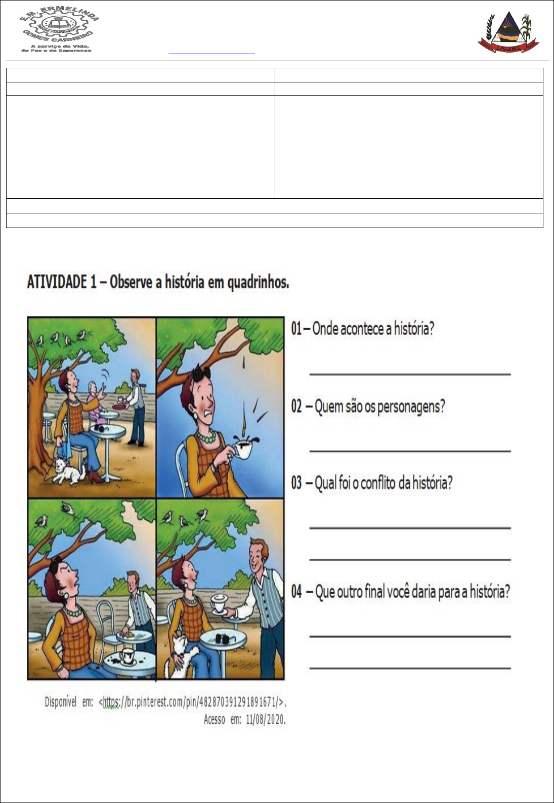 “ A serviço da vida, da paz e da esperança.” ESCOLA MUNICIPAL ERMELINDA GOMES CARNEIRO Situação Legal: Autorização de Funcionamento - Portaria SEE nº 53/79, de 09/02/1979. Extensão de 5ª a 8ª série - Portaria SEE nº 882/2004, de 14/10/2004. Endereço: Fazenda Morada Nova, s/n, Zona Rural E-mail: esc.ermelinda@gmail.com Telefone: (38) 3759 – 1096 Cidade: Lassance/MG Componente Curricular: Língua Portuguesa Atividade 04 do PET 05 – MG Data: 10/11/2020 Turma: 6º ano Objetivo do conhecimento: Reconstrução do contexto de produção, circulação e recepção de textos. Caracterização do campo jornalístico e relação entre os gêneros em circulação, mídias e práticas da cultura digital; Efeitos de sentido. (EF06LP02X) Estabelecer relação entre os diferentes gêneros da esfera jornalística (editorial, crônica, repor- tagem, charge, carta de leitor, etc.), compreendendo e reconhecendo o fato que foi noticiado. (EF67LP07) Identificar o uso de recursos persuasivos em textos argumentativos diversos (como a elaboração do título, escolhas lexicais, construções metafóricas, a explicitação ou a ocultação de fontes de informação) e perceber seus efeitos de sentido. (EF67LP27) Analisar, entre os textos literários e entre estes e outras manifestações artísticas (como cinema, teatro, música, artes visuais e midiáticas), referências explícitas ou implícitas a outros textos, quanto aos temas, personagens e recursos literários e semióticos. Professora: Jordana Teixeira Aluno (a): mailto:esc.ermelinda@gmail.com “ A serviço da vida, da paz e da esperança.” “ A serviço da vida, da paz e da esperança.” ESCOLA MUNICIPAL ERMELINDA GOMES CARNEIRO Situação Legal: Autorização de Funcionamento - Portaria SEE nº 53/79, de 09/02/1979. Extensão de 5ª a 8ª série - Portaria SEE nº 882/2004, de 14/10/2004. Endereço: Fazenda Morada Nova, s/n, Zona Rural E-mail: esc.ermelinda@gmail.com Telefone: (38) 3759 – 1096 Cidade: Lassance/MG This is the Freedom Tower in New York. The tallest building in the western hemisphere is now open to visitors. The history of the city flashes by on the 100-floor journey to the top. The skyscraper replaces the World Trade Center, and many visitors will inevitably think of September 11th, 2001. New York still feels the trauma of those events. But the opening of this landmark is part of the city’s ongoing recovery. Vocabulary Hemisphere: (here) half of the Earth flashes by: appears for a short time and then disappears inevitably: unavoidably trauma: (here) shock caused by a deeply disturbing experience landmark: a building or site which helps to identify a place Disponível em: https://www.bbc.co.uk/learningenglish/english/features/witn/ep-150527. Acesso em: 24 Julho 2020. Componente Curricular: Língua Inglesa Atividade 04 do PET 05 – MG Data: 10/11/2020 Turma: 6º ano OBJETO DE CONHECIMENTO: Compreensão geral e específica: leitura rápida (skimming, scanning). Hipóteses sobre a finalidade de um texto. Construção de sentidos por meio de inferências e reconhecimento de implícitos. Construção de repertório lexical. Informações em ambientes virtuais. HABILIDADES: (EF06LI07) Formular hipóteses sobre a finalidade de um texto em língua inglesa, com base em sua estrutura, organização textual e pistas gráficas. (EF06LI08) Identificar o assunto de um texto, reconhecendo sua organização textual e palavras cognatas. (EF06LI09) Localizar informações específicas em texto. Professora: Jordana Teixeira mailto:esc.ermelinda@gmail.com http://www.bbc.co.uk/learningenglish/english/features/witn/ep-150527 “ A serviço da vida, da paz e da esperança.” Vocabulary