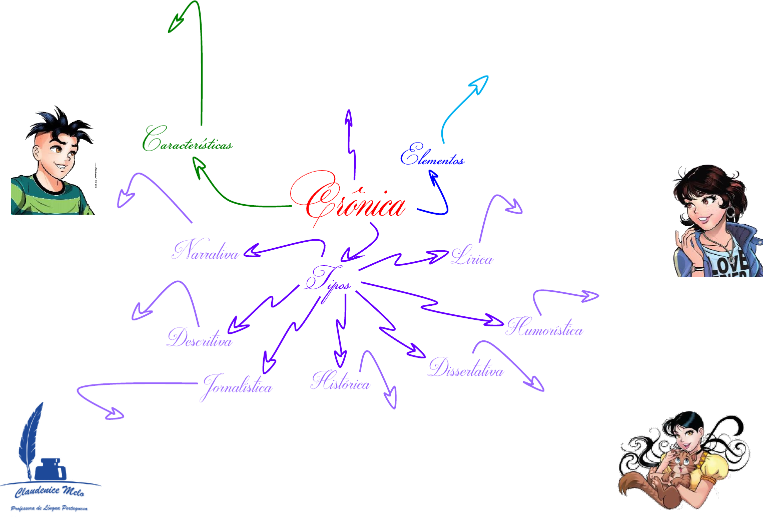 Narrativa curta Linguagem simples e coloquial Poucos personagens, se houver Espaço reduzido Acontecimentos cotidianos Tipo de texto narrativo curto, geralmente produzido para meios de comunicação, por exemplo, jornais, revistas, etc. as crônicas tratam de acontecimentos corriqueiros do cotidiano. Produzidas para os meios de comunicação, onde utilizam temas da atualidade para fazerem reflexões. Marcada por relatar fatos ou acontecimentos históricos, com personagens, tempo e espaço definidos. Relata as ações de personagens num tempo atual e um espaço determinado. Muitas vezes, utilizam do humor para entreter os leitores. O autor expõe claramente sua opinião, utilizando- -se de argumentos mais sentimentais do que racionais. Alterna narração e descrição, estimulando a imaginação do leitor para o acontecimento em questão. Apela para o humor como forma de entreter o público, ao mesmo tempo que utiliza da ironia e do humor como ferramenta essencial para criticar alguns aspectos seja da sociedade, política, cultura, economia, etc. Apresenta uma linguagem metafórica e poética, com predomínio de emoções como a saudade, paixão e nostalgia. Enredo: história da trama, onde temos o tema ou o assunto que será narrado. Personagens: pessoas presentes na história e que podem ser principais ou secundários. Tempo: indica o tempo no qual a história está inserida. Espaço: determina o local (ou locais) onde se desenvolve a história. Foco narrativo: é o tipo de narrador que pode ser um personagem da trama, um observador ou ainda onisciente. https://www.todamateria.com.br/enredo/