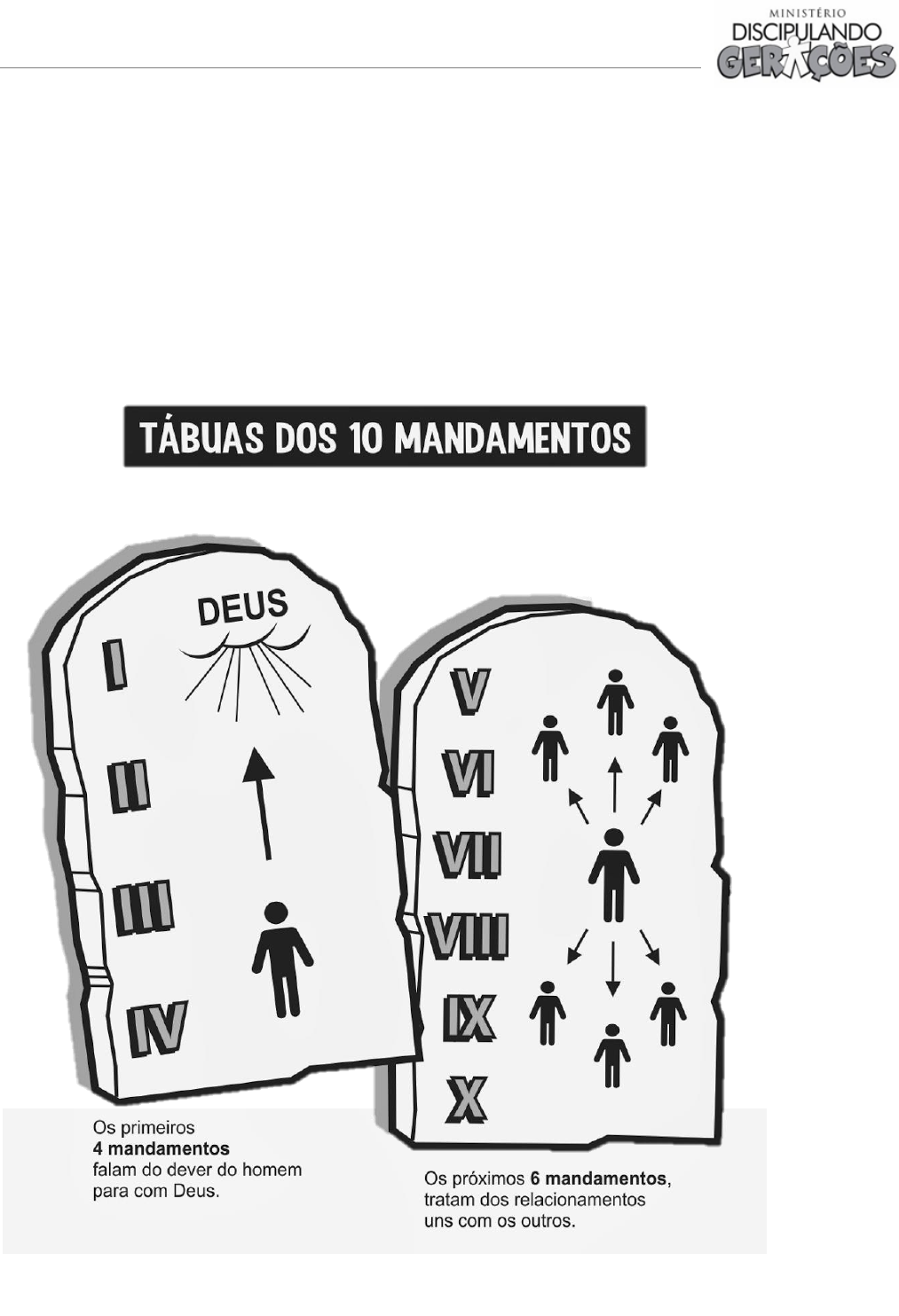 MDG – OS 10 MANDAMENTOS Página 21 5° Lição - "5° Mandamento: Respeitar pai e mãe" Instrução para o líder de crianças: Antes de colocar o quinto mandamento, explicar para as crianças que os primeiros quatro mandamentos falam do dever do homem para com Deus. Os próximos seis, tratam dos relacionamentos uns com os outros. Utilizar a ilustração das tábuas da lei abaixo. http://3.bp.blogspot.com/-7aoBQjy8zXw/UxtgW7uBv8I/AAAAAAAAATY/0vUn_WM6FU8/s1600/Tabua+dos+mandamentos.jpg http://3.bp.blogspot.com/-7aoBQjy8zXw/UxtgW7uBv8I/AAAAAAAAATY/0vUn_WM6FU8/s1600/Tabua+dos+mandamentos.jpg