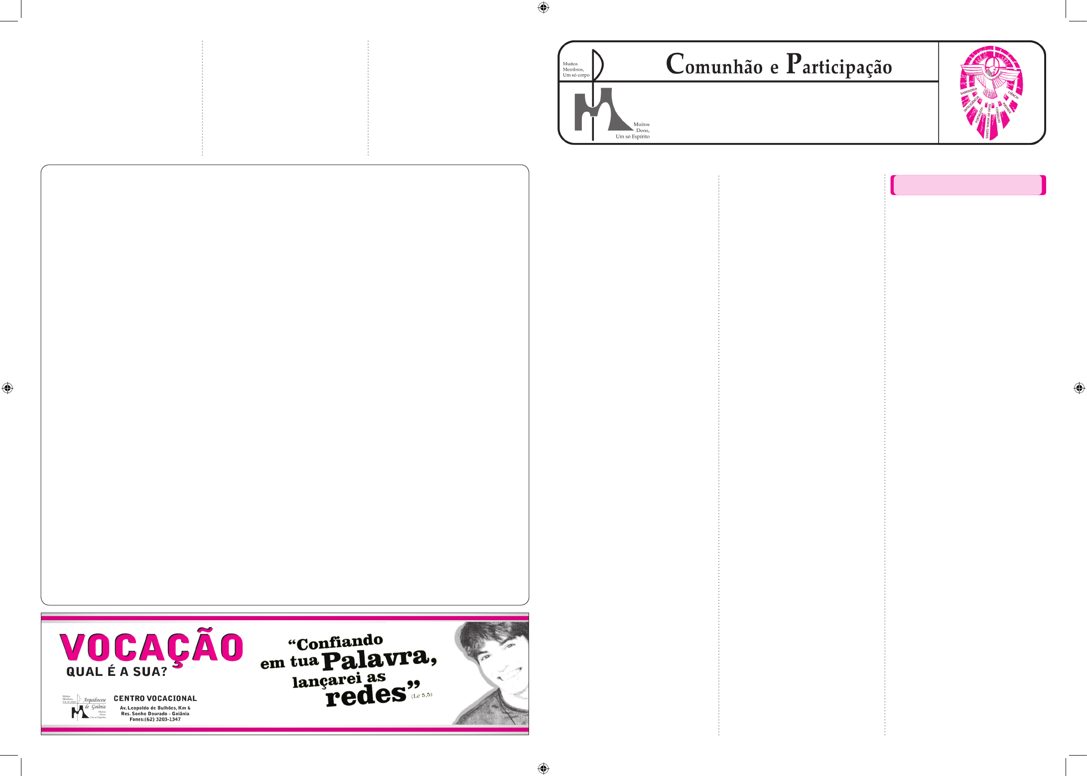 1. MOTIVAÇÃO A - Hoje é um dia de festa para a nossa comunidade e para toda a Igreja. Alguns de nossos irmãos e irmãs serão confir- mados. O Sacramento da Confirmação ou Crisma, com a efusão do Espírito Santo, consolida a pertença a Cristo e à Igreja, comunica em abundância os dons do Espírito Santo e conduz o cris- mando à maturidade cristã. Renovemos a fé na presença do Espírito do Senhor em nosso meio. Todos nós, crismandos e assembleia, vamos dispor o nosso cora- ção a receber uma nova efusão de seus dons. 2. CANTO DE ABERTURA (5º Curso: 04.94) Estaremos aqui reunidos, / como es- tavam em Jerusalém? / Pois só quan- do vivemos unidos, / é que o Espírito Santo nos vem! 1. Ninguém para esse vento passando; / ninguém vê e ele sopra onde quer. / Força igual tem o Espírito quando / faz a Igreja de Cristo crescer. 2. Feita de homens, a Igreja é divina, / pois o Espírito Santo a conduz / Como um fogo que aquece e ilumina, / que é pureza, que é vida, que é luz. 3. Sua imagem são línguas ardentes / pois amor é comunicação. / E é preciso que todas as gentes / saibam o quanto fe- lizes serão! 3. ACOLHIDA P - Em nome do Pai... T - Amém. P - O amor de Deus Pai, a graça salva- dora de Jesus Cristo, o fogo ardente do Espírito Santo estejam convosco. T - Bendito seja Deus que nos reuniu no amor de Cristo. 4. ATO PENITENCIAL P - Comecemos nossa celebração com um momento de silêncio. Diante de Deus reconheçamos nossa fraqueza e a grande necessidade que temos de sua força e seu perdão. (Pausa) P - Senhor, que nos dais vosso Espírito, vento impetuoso que renova a face da ter- ra, tende piedade de nós. T - Senhor, tende piedade de nós. P - Cristo, que nos dais vosso Espírito, fogo ardente que transforma os corações, tende piedade de nós. T - Cristo, tende piedade de nós. P - Senhor, que nos dais vosso Espírito, pai dos pobres, fonte de infinito amor, tende piedade de nós. T - Senhor, tende piedade de nós. P - Deus todo-poderoso tenha compaixão de nós, perdoe os nossos pecados e nos conduza à vida eterna. T - Amém 5. HINO DE LOUVOR (15º Curso: 03.98) 1. Glória a Deus nos altos céus! / Paz na terra a seus amados! / A vós louvam, Rei celeste, / os que foram libertados! Glória a Deus lá nos céus, / e paz aos seus! Amém! 2. Deus e Pai, nós vos louvamos, / adora- mos, bendizemos; / damos glória ao vos- so nome, / vossos dons agradecemos! 3. Senhor nosso, Jesus Cristo, / Unigêni- to do Pai, / vós, de Deus Cordeiro Santo, / nossas culpas perdoai! 4. Vós, que estais junto do Pai, / como nosso intercessor, / acolhei nossos pedi- dos, / atendei nosso clamor! 5. Vós somente sois o Santo, / o Altíssi- mo, o Senhor, / com o Espírito Divino, / de Deus Pai no esplendor. 6. ORAÇÃO P - Oremos. (Pausa para oração) Deus de bondade, realizai em nós vossa promessa, para que a vinda do Espírito Santo nos torne perante o mundo testemu- nhas do Evangelho de nosso Senhor Jesus Cristo. Que conosco vive e reina, na uni- dade do Espírito Santo. T - Amém. O ESPÍRITO DO SENHOR ESTÁ SOBRE MIM A - Todo cristão recebe a unção do Se- nhor. Que missão essa unção nos confere? Escutemos. 7. PRIMEIRA LEITURA Leitura dos Atos dos Apóstolos (2,1-11) - 1Quando chegou o dia de Pentecostes, os discípulos estavam todos reunidos no mesmo lugar. 2De repente, veio do céu um barulho como se fosse uma forte ventania, que encheu a casa onde eles se en- contravam. 3Então apareceram línguas como de fogo que se repartiram e pousa- ram sobre cada um deles. 4Todos fi- caram cheios do Espírito Santo e co- meçaram a falar em outras línguas, conforme o Espírito os inspirava. 5Moravam em Jerusalém judeus devotos, de todas as nações do mundo. 6Quando ouviram o barulho, juntou- se a multidão, e todos ficaram confu- sos, pois cada um ouvia os discípulos falar em sua própria língua. 7Cheios de espanto e admiração, diziam: “Esses homens que estão fa- lando não são todos galileus? 8Como é que nós os escutamos na nossa pró- pria língua? 9Nós que somos partos, medos e elamitas, habitantes da Me- sopotâmia, da Judéia e da Capadó- cia, do Ponto e da Ásia, 10da Frígia e da Panfília, do Egito e da parte da Líbia próxima de Cirene, também romanos que aqui residem; 11judeus e prosélitos, cretenses e árabes, to- dos nós os escutamos anunciarem as maravilhas de Deus na nossa pró- pria língua! - Palavra do Senhor. T - Graças a Deus. (Tempo de silêncio) 8. SALMO RESPONSORIAL (31º Curso: 04.06) Enviai o vosso Espírito, Senhor, en- viai o vosso Espírito, Senhor, e da terra toda a face renovai, e da terra toda a face renovai. Orientações 1. Celebra-se esta missa com paramentos vermelhos ou brancos. É permitida todos os dias, exceto nos domingos do Advento, da Quaresma e da Páscoa, nas solenidades, na Quarta-feira de Cin- zas e nos dias de semana da Semana Santa. Quando a celebração for no sábado à tarde ou no domingo, utiliza-se a liturgia do do- mingo. O que é próprio da Confirmação está no livro do ritual que o bispo trará. 2. A pessoa a ser confirmada precisa ser batizada, ter feito a 1ª Eucaristia, ter recebido o sacramento da reconciliação e, se for casado(a), ter recebido o sacramento do matrimônio. 3. Roupa: comum ou túnicas da Igreja ou camiseta. Nada de exa- geros ou algo que lembre formatura ou rito social, mas celebração de compromisso de fé. 4. Fotos e filmagens: para que todos celebrem verdadeiramente a fé, só haverá um fotógrafo e um cinegrafista. A equipe de liturgia deve encaminhar antecipadamente os nomes das pessoas que vão fazer esse trabalho e determinar o lugar onde deverão ficar durante a celebração, para que não fiquem circulando. As fotos só poderão ser feitas na entrada e no momento da unção. 5. Crachá: providenciar para identificação dos nomes, bem visível e só o primeiro nome. 6. Horário: chegar 40 minutos antes para vestir as túnicas (se for o caso) e organizar a prociss